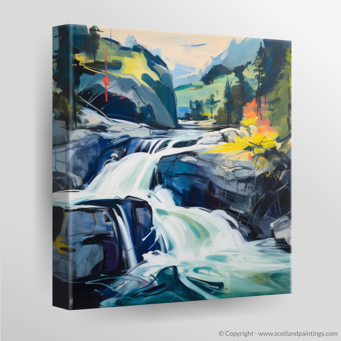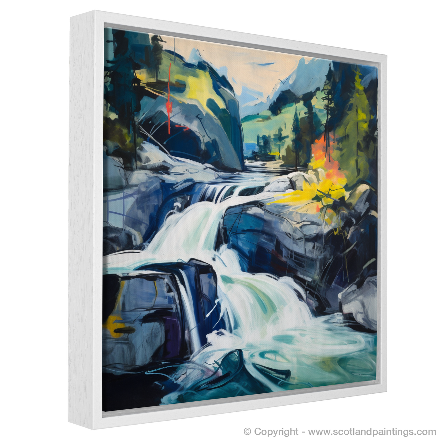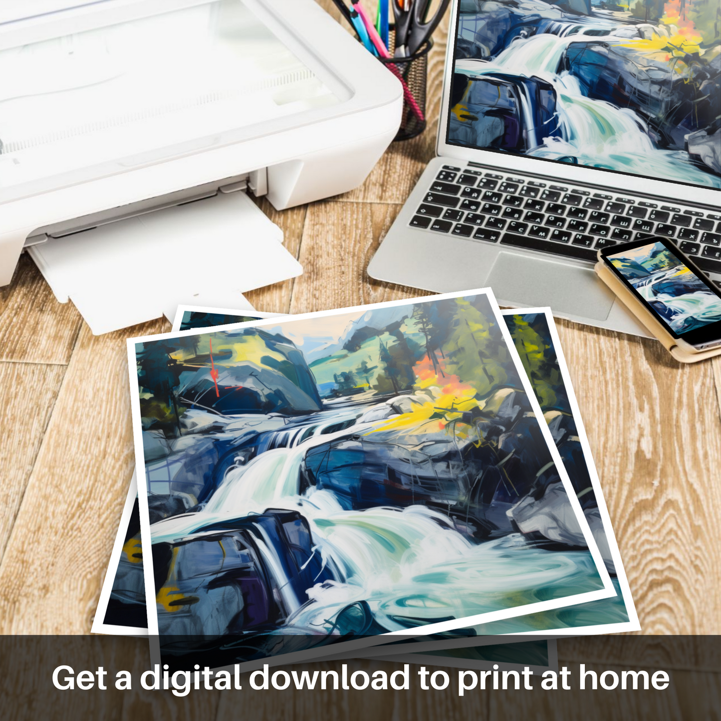 Immerse yourself in the tumultuous beauty of Scotland through this evocative depiction of the Falls of Dochart. This striking piece harnesses the essence of Abstract Expressionism, demonstrating a masterful interplay of form, colour, and motion. The print invites viewers to experience the wild splendour of Scottish Waterfalls, as it captures the vigor and vivacity of tumbling waters crashing over rugged rocks.