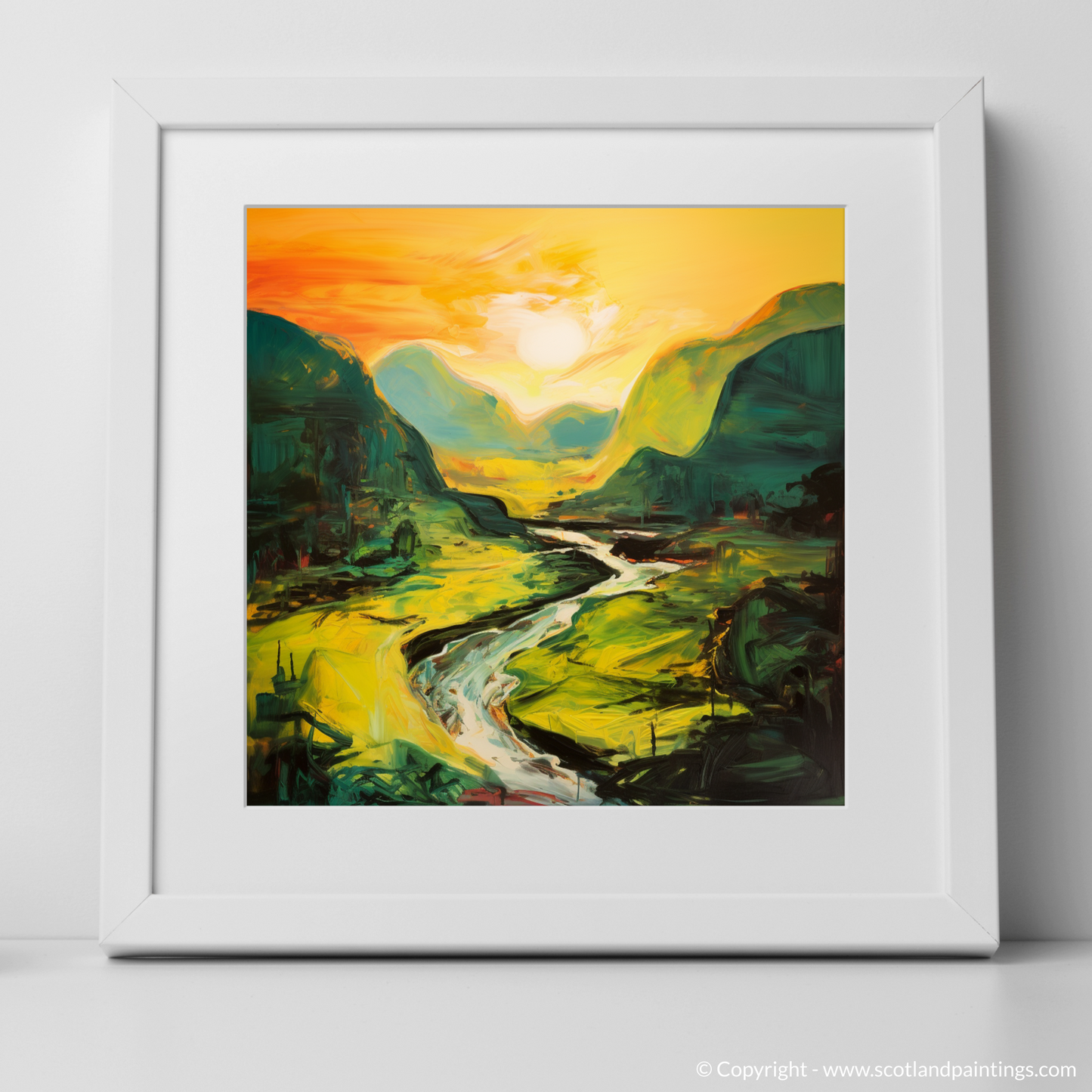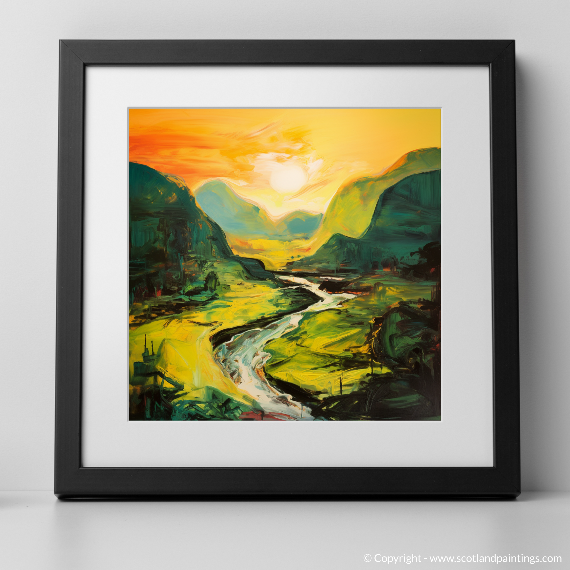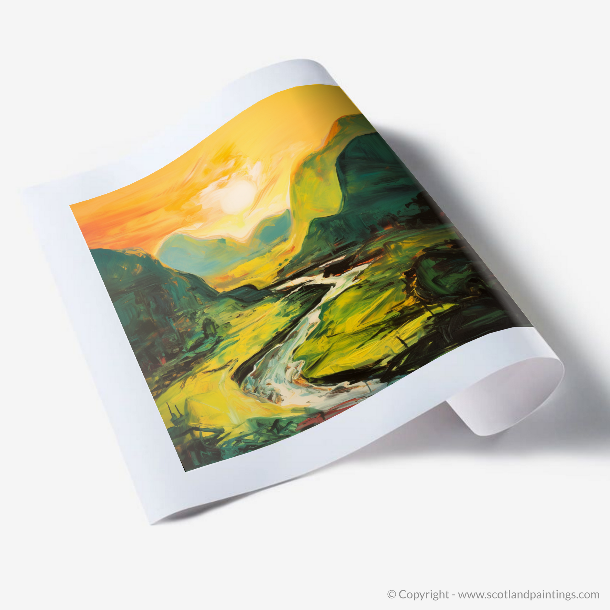 Each element of this piece coalesces to form an evocative impression of the natural world's transient beauty, a fleeting moment of serenity and splendour captured in the idyllic expanse of the Glen. The intensity and immediacy of the application resonate with a vibrancy that mirrors the untamed spirit of the Highlands. This print is a bold statement for any space, ready to evoke conversation and contemplation, a true testament to the power and majesty of Glencoe's landscape.