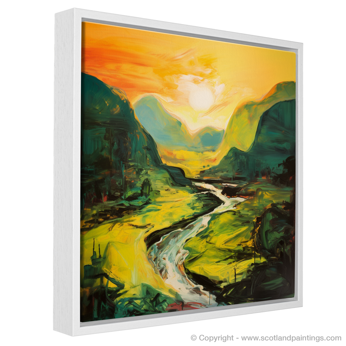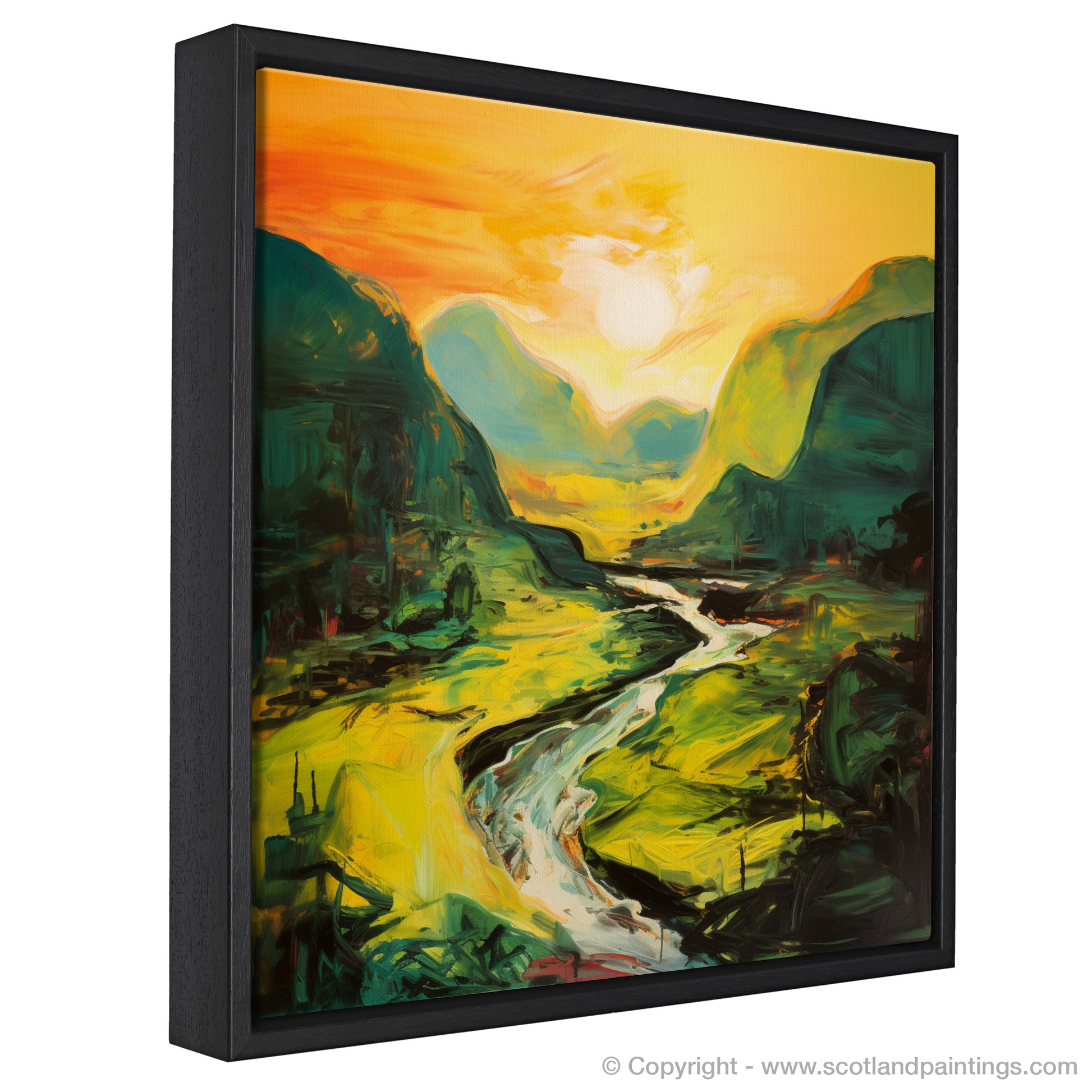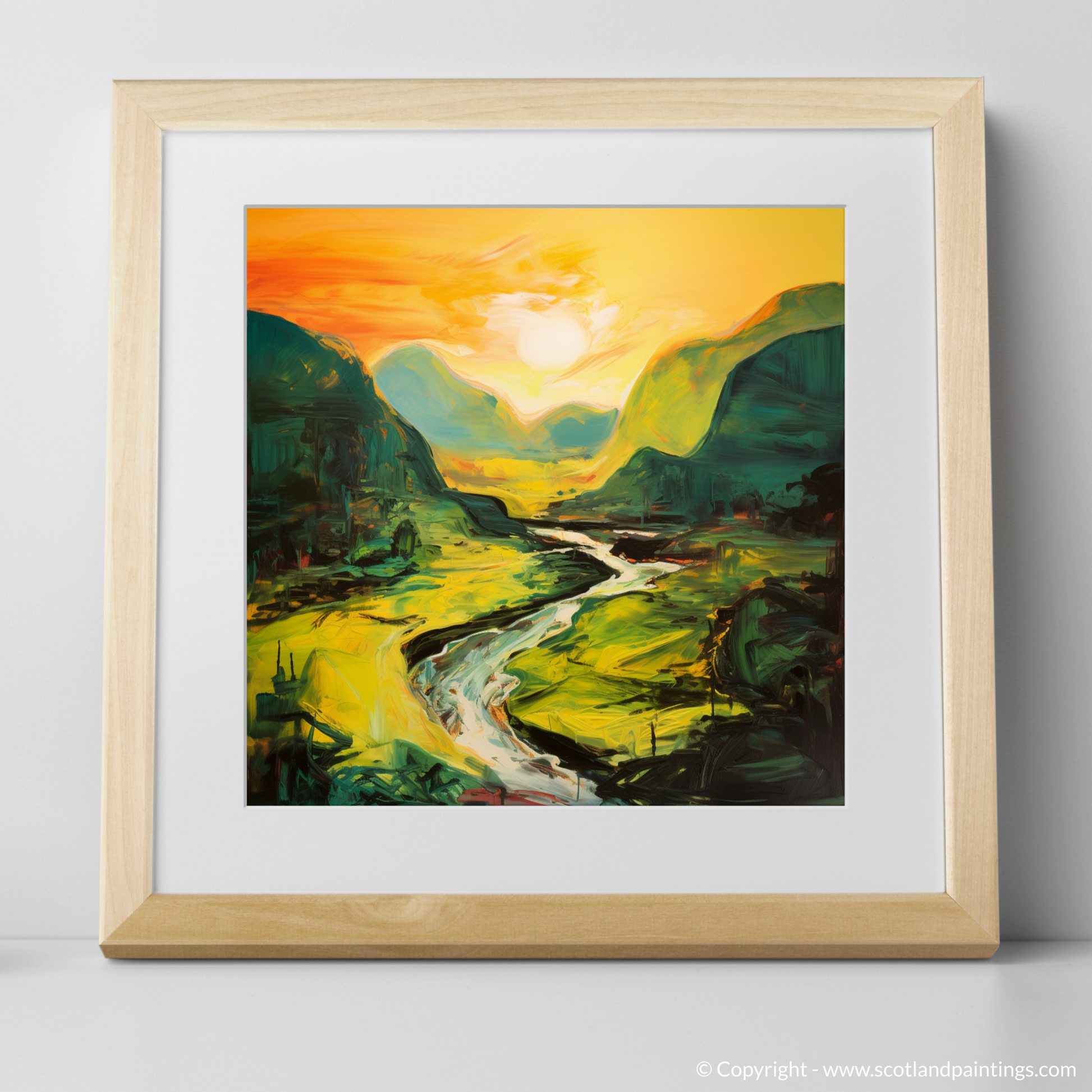 Each element of this piece coalesces to form an evocative impression of the natural world's transient beauty, a fleeting moment of serenity and splendour captured in the idyllic expanse of the Glen. The intensity and immediacy of the application resonate with a vibrancy that mirrors the untamed spirit of the Highlands. This print is a bold statement for any space, ready to evoke conversation and contemplation, a true testament to the power and majesty of Glencoe's landscape.