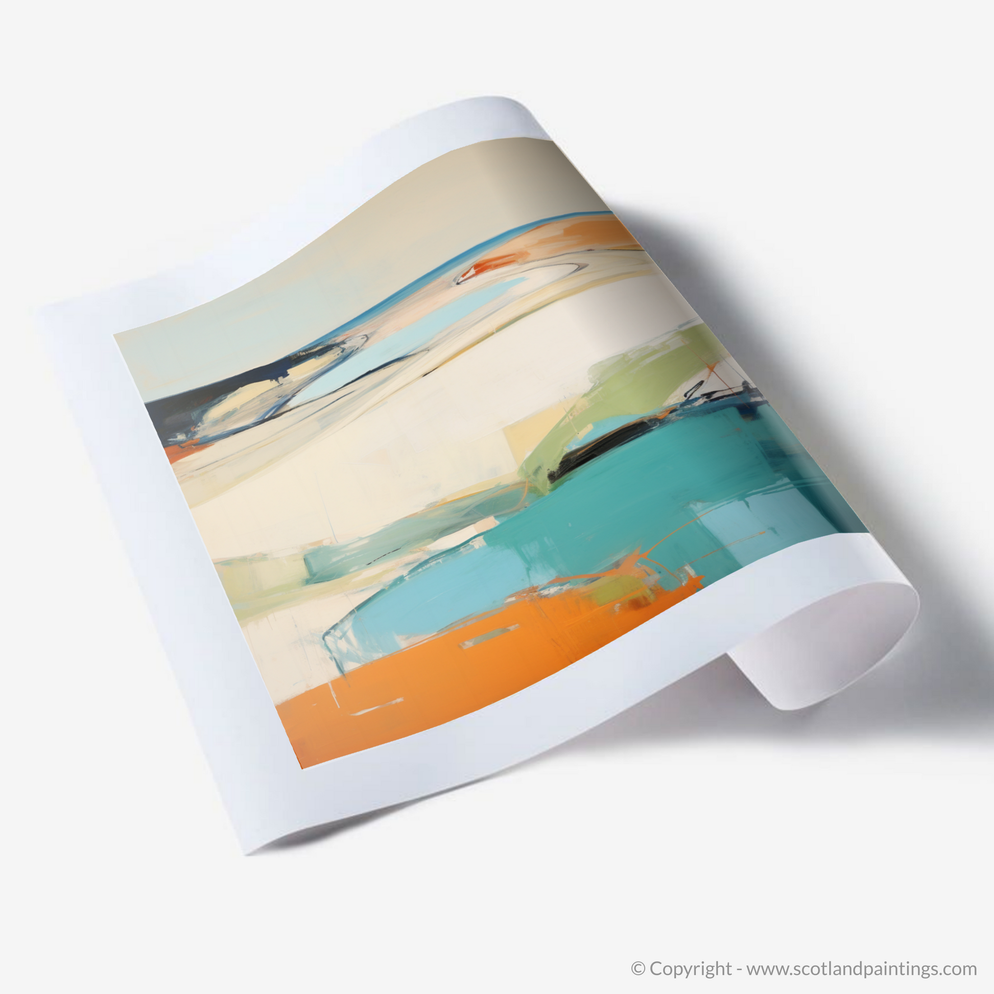 Capturing the essence of the Scottish coastline, this mesmerising print invites the viewer to explore the windswept beauty of a beach in Scotland through the lens of Abstract Impressionism. Bold brushstrokes dance across the canvas in a symphony of azure blues and sandy hues, evoking the invigorating freshness of the northern seaside.
