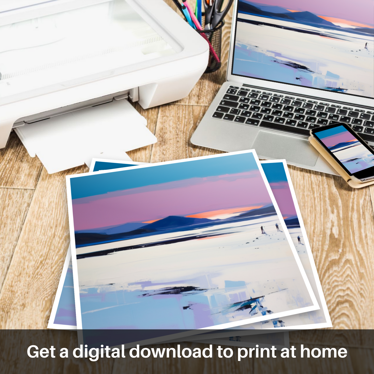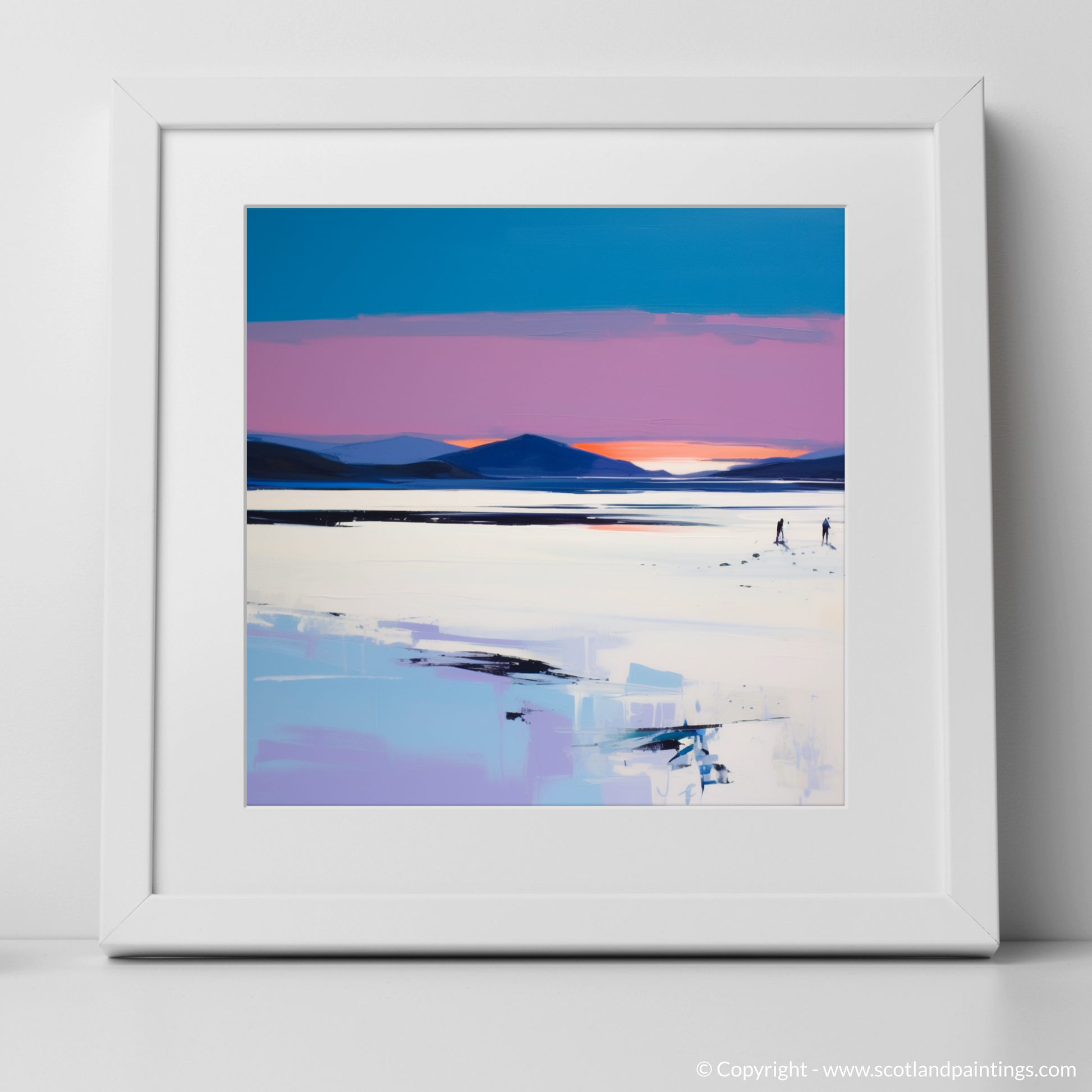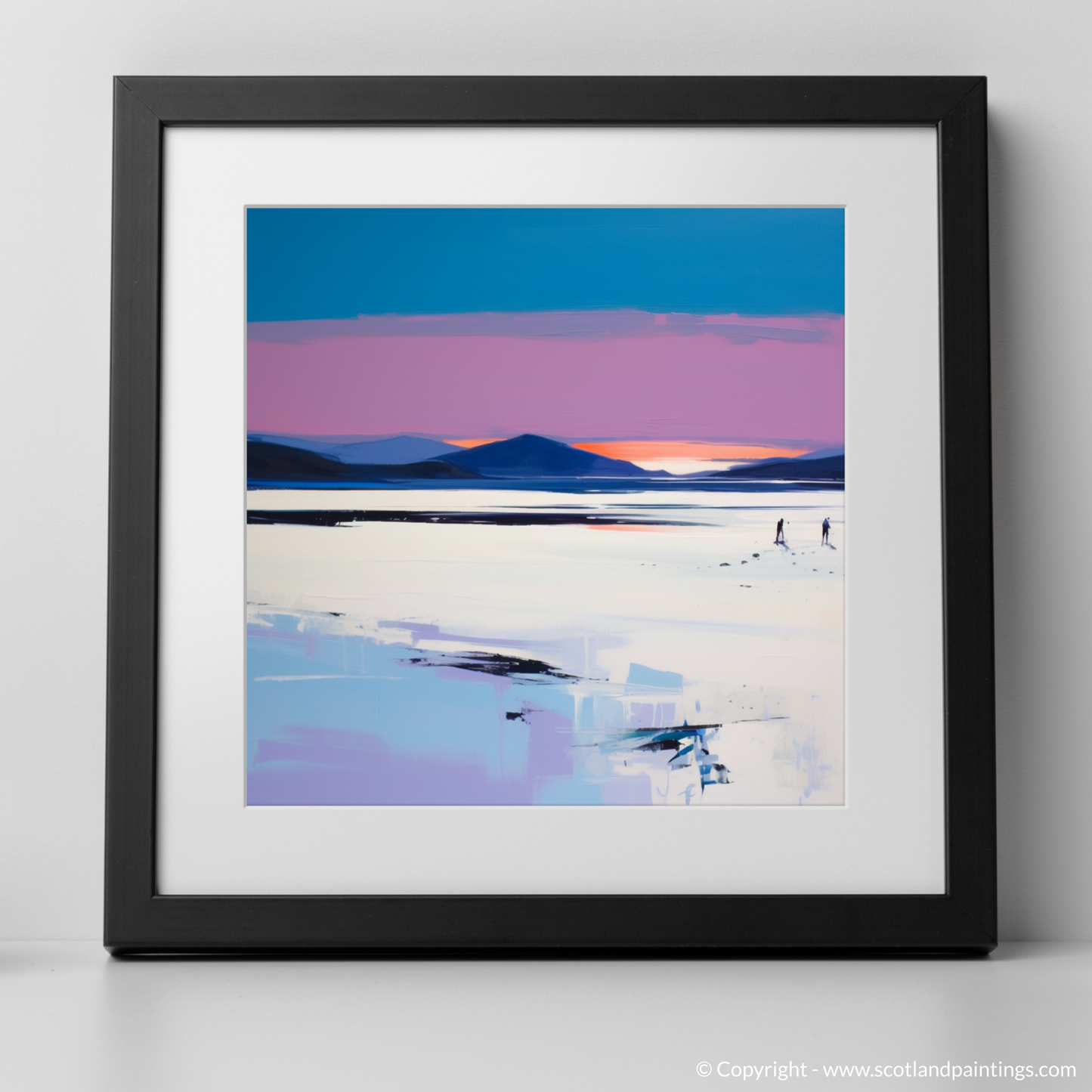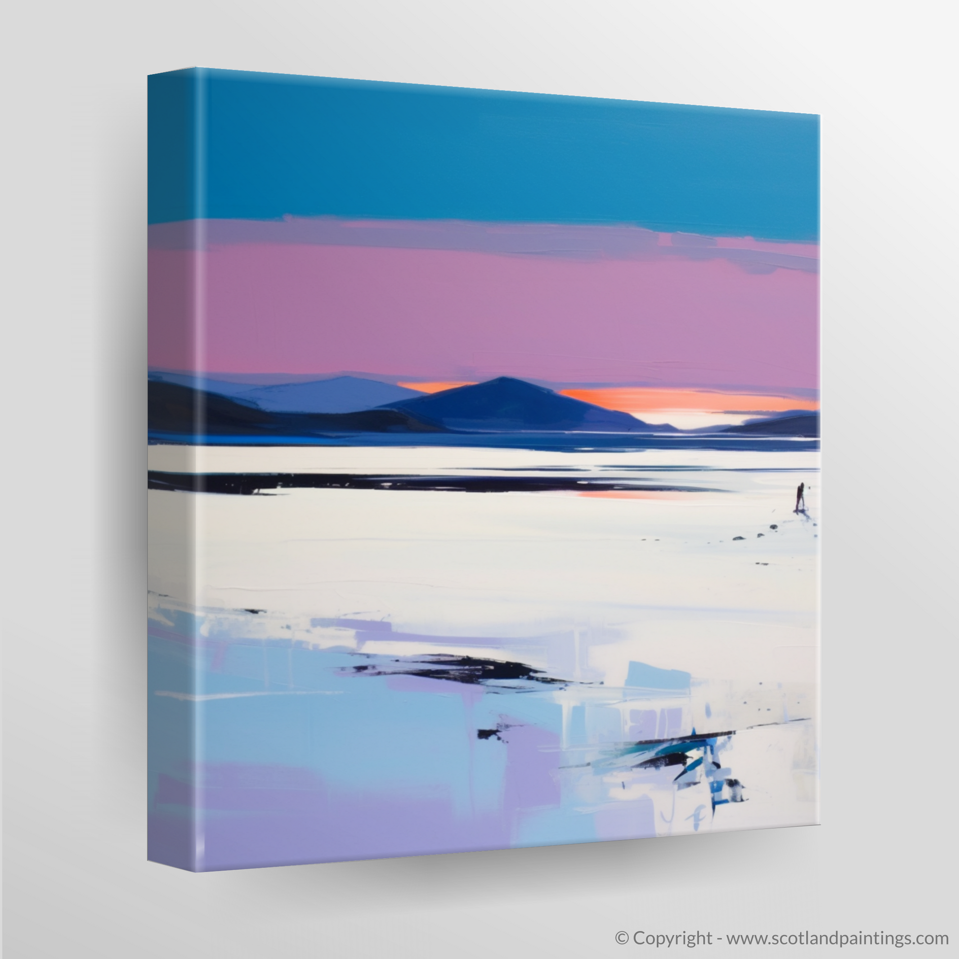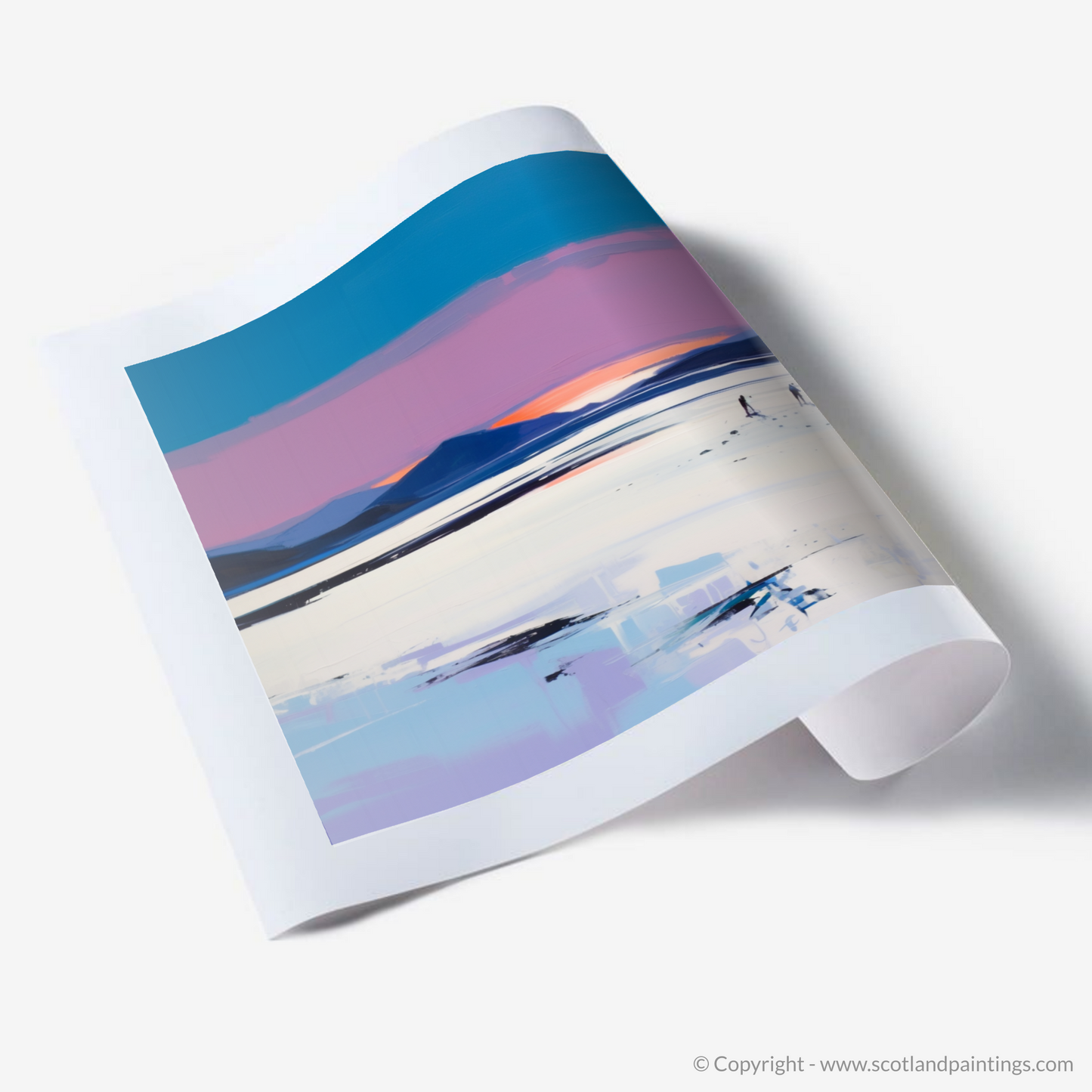 Escape into the serene beauty captured in this evocative contemporary print, where the last whispers of light grace Luskentyre Beach with a symphony of colour. Enveloping viewers in the tranquil arms of dusk, the scene unfolds across the canvas with a striking simplicity that belies its emotive power.