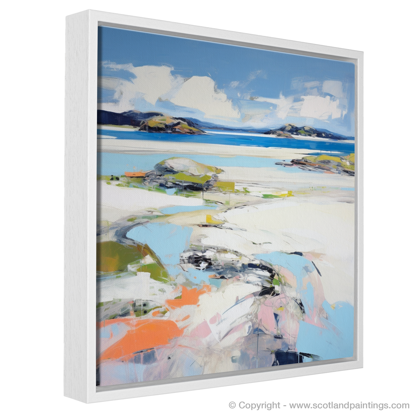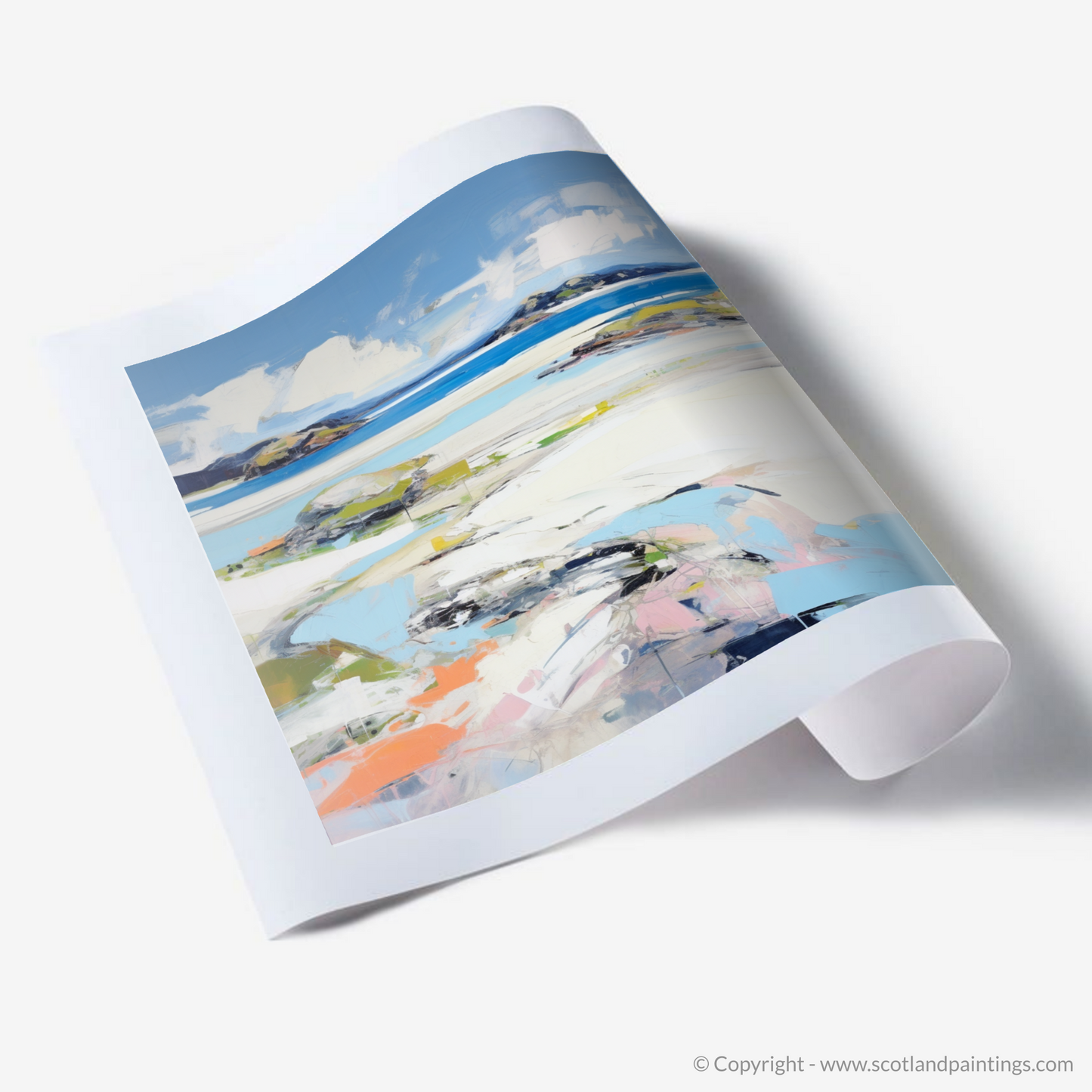 Immerse yourself in the vibrant hues and emotional resonance of Scotland's coastline with our mesmerising print, which brings the allure of Silver Sands of Morar to your living space. This piece's masterful blend of abstract and impressionist influences captures the wild spirit of the Highland landscape while interpreting it with a modern artistic language.