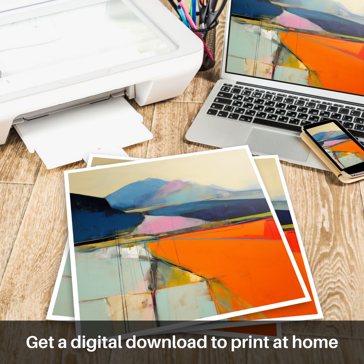 Allow yourself to be swept up in the dynamic energy and raw emotion of Scotland's majestic landscape with this striking abstract impressionist print inspired by the towering grace of Ben Nevis. Earthy and ethereal tones coalesce to create a harmonious tribute to the highest of the Scottish Munros, encapsulating both the solidity of its ancient rocks and the ephemeral play of light across its rugged vistas.