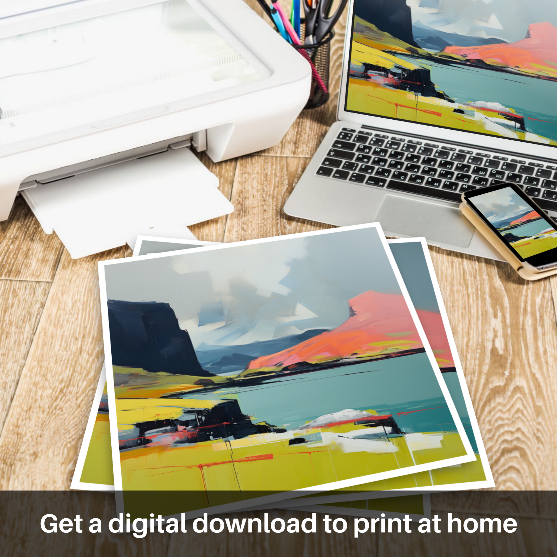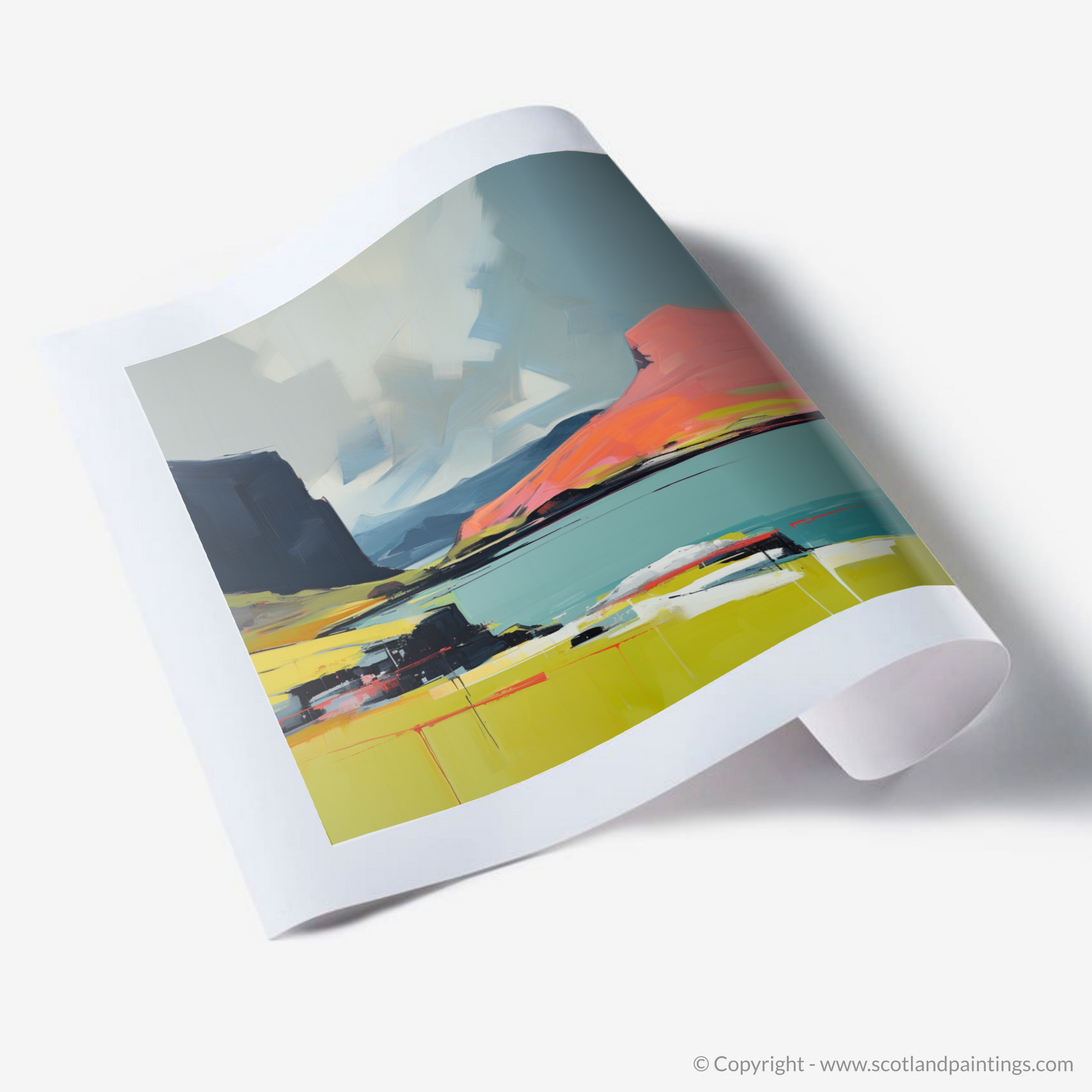 Steeped in vibrancy and raw energy, this compelling piece captures the essence of the Isle of Skye with a bold, contemporary perspective. Evocative of the dramatic landscapes that the Scottish island is famed for, the print showcases a kaleidoscope of colours that artistically blur the lines between land, sea, and sky.