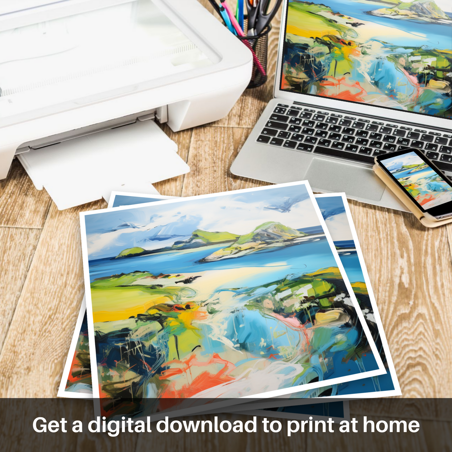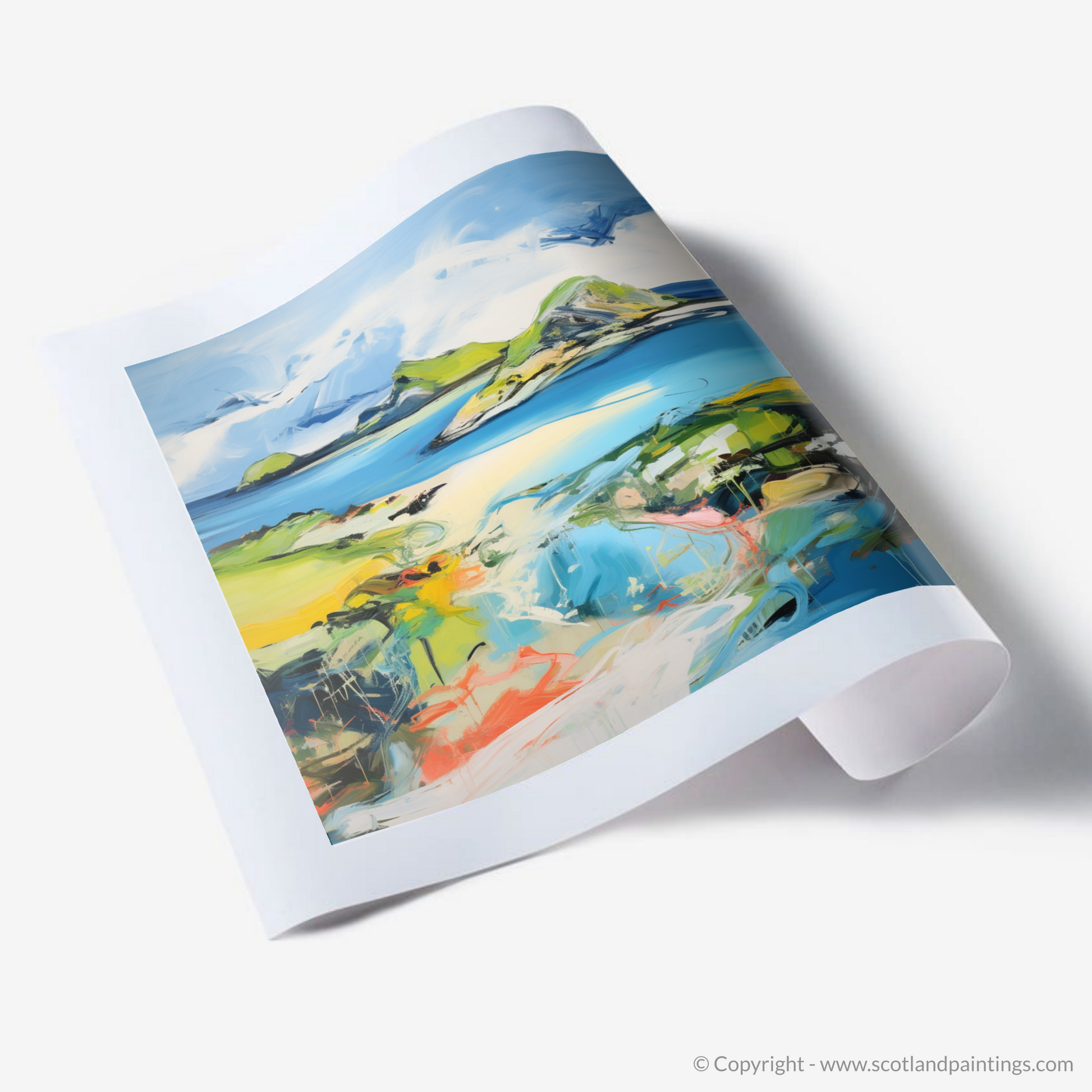 This print from our 'Scotland Favourites' collection offers more than visual delight; it offers an emotive connection to Kiloran Bay's untamed essence, interpreted through the lens of abstract expressionism. Whether it captures a fleeting moment of sunlight or the timeless enchantment of Scottish isles, it is sure to evoke contemplation and a profound appreciation for the abstract beauty that nature can inspire.