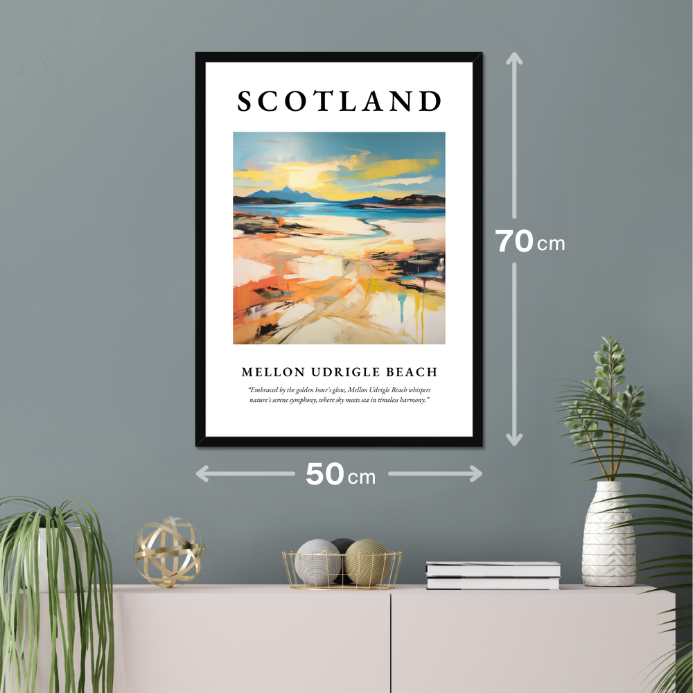 Embrace the enchanting allure of Scotland with our stunning framed poster capturing the vibrant essence of Mellon Udrigle Beach. This impressive 50cm x 70cm piece is perfect for filling large spaces with the beauty and emotion inherent in Abstract Expressionism, offering an affordable yet impactful addition to any room. Available in a choice of black, white, or natural wood-effect frames, this poster is a versatile masterpiece that complements any decor.