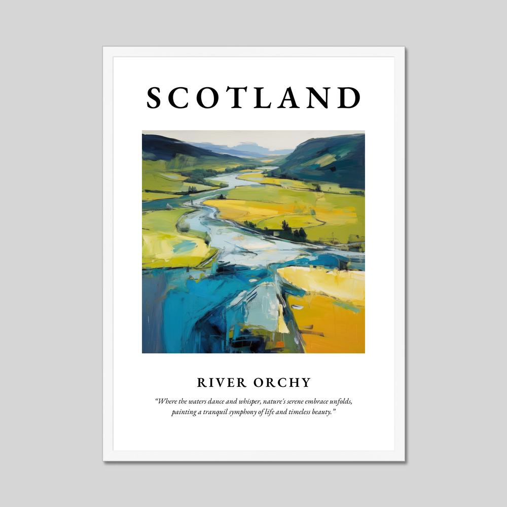 The poster boldly features the word "SCOTLAND" above a stunning Abstract Impressionist portrayal of the River Orchy. Below this exquisite painting, the evocative words, “Where the waters dance and whisper, nature's serene embrace unfolds, painting a tranquil symphony of life and timeless beauty,” invite the viewer into a world of serene elegance.