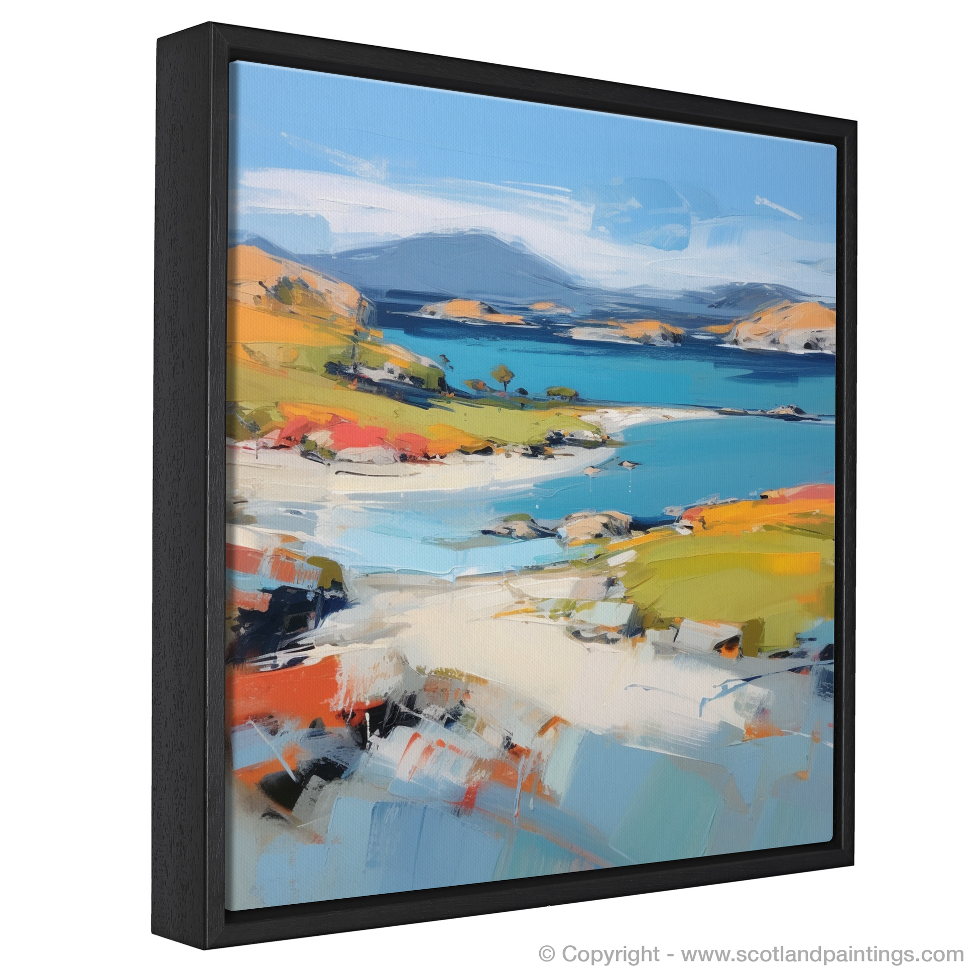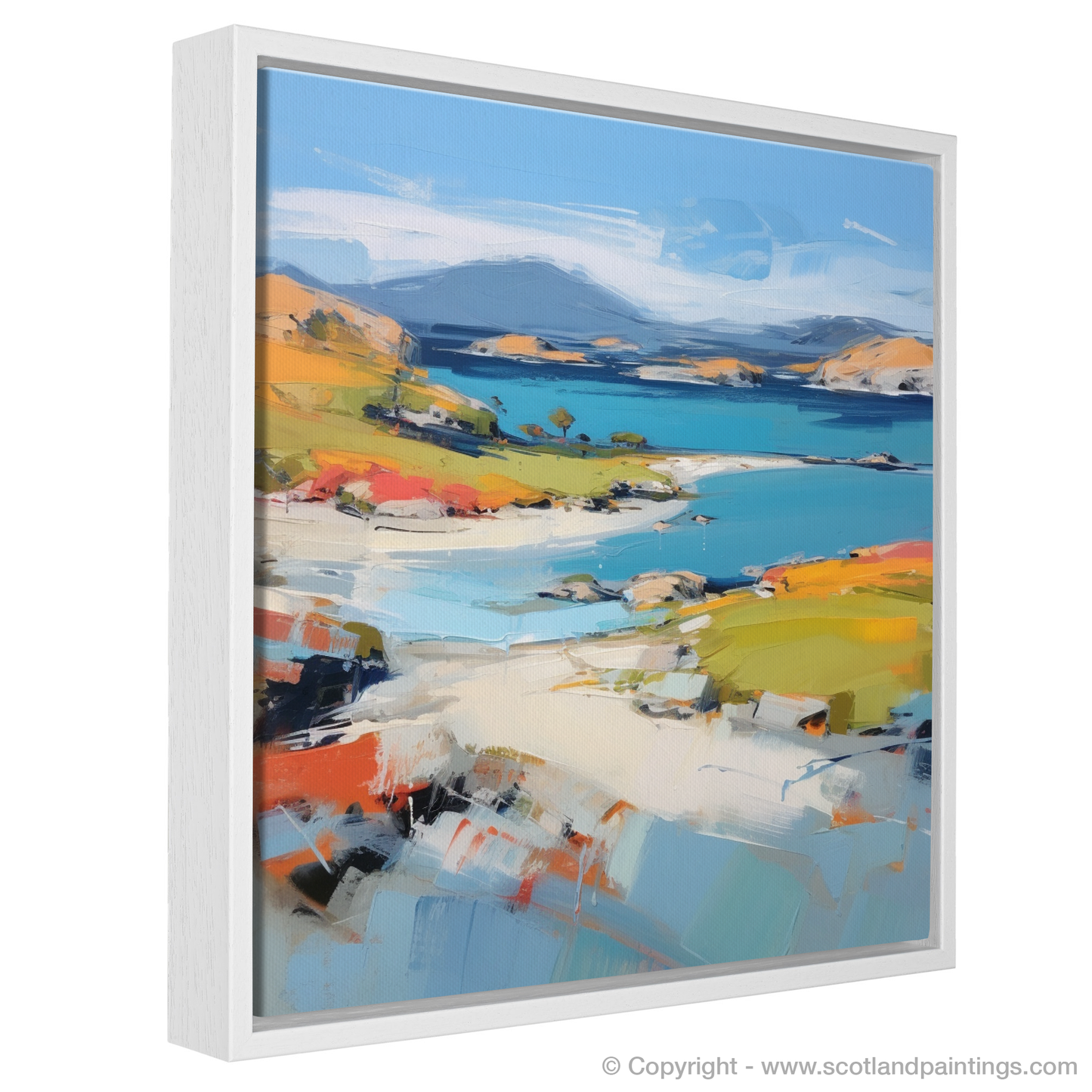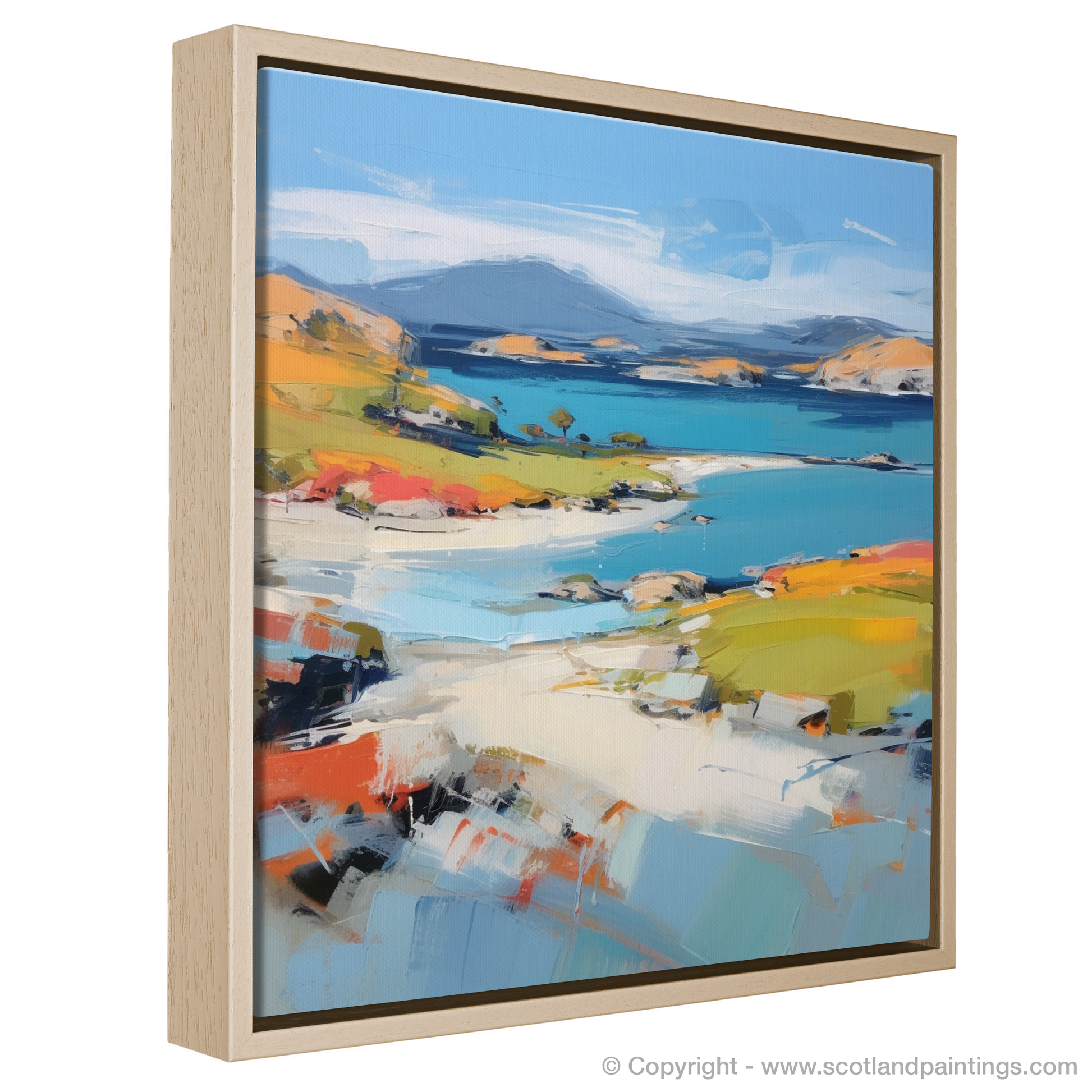 Immerse yourself in the dynamic beauty of a quintessential Scottish landscape with this enchanting print that captures the vibrant and untamed spirit of Scourie Bay in Sutherland. The crisp azure waters playfully ebb onto the shores, harmonising with a mosaic of natural hues that define this captivating seascape.