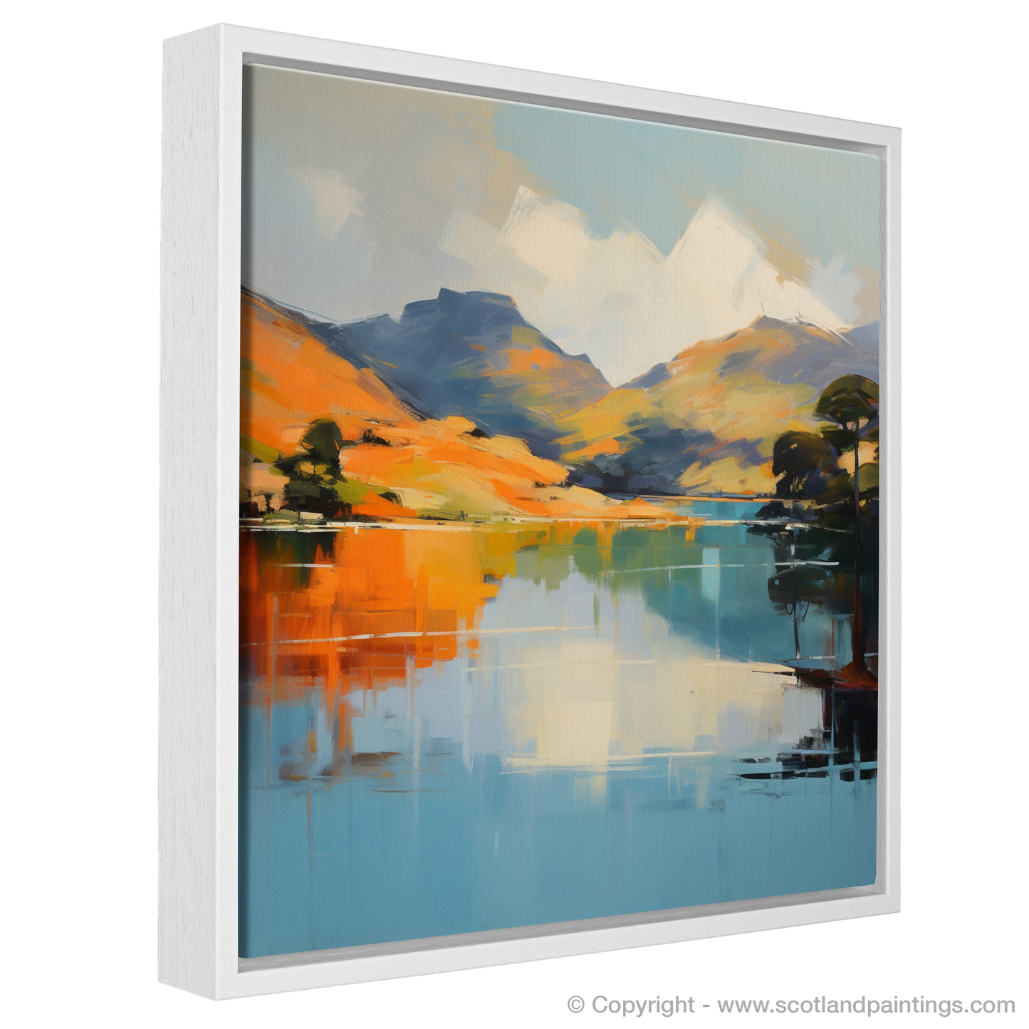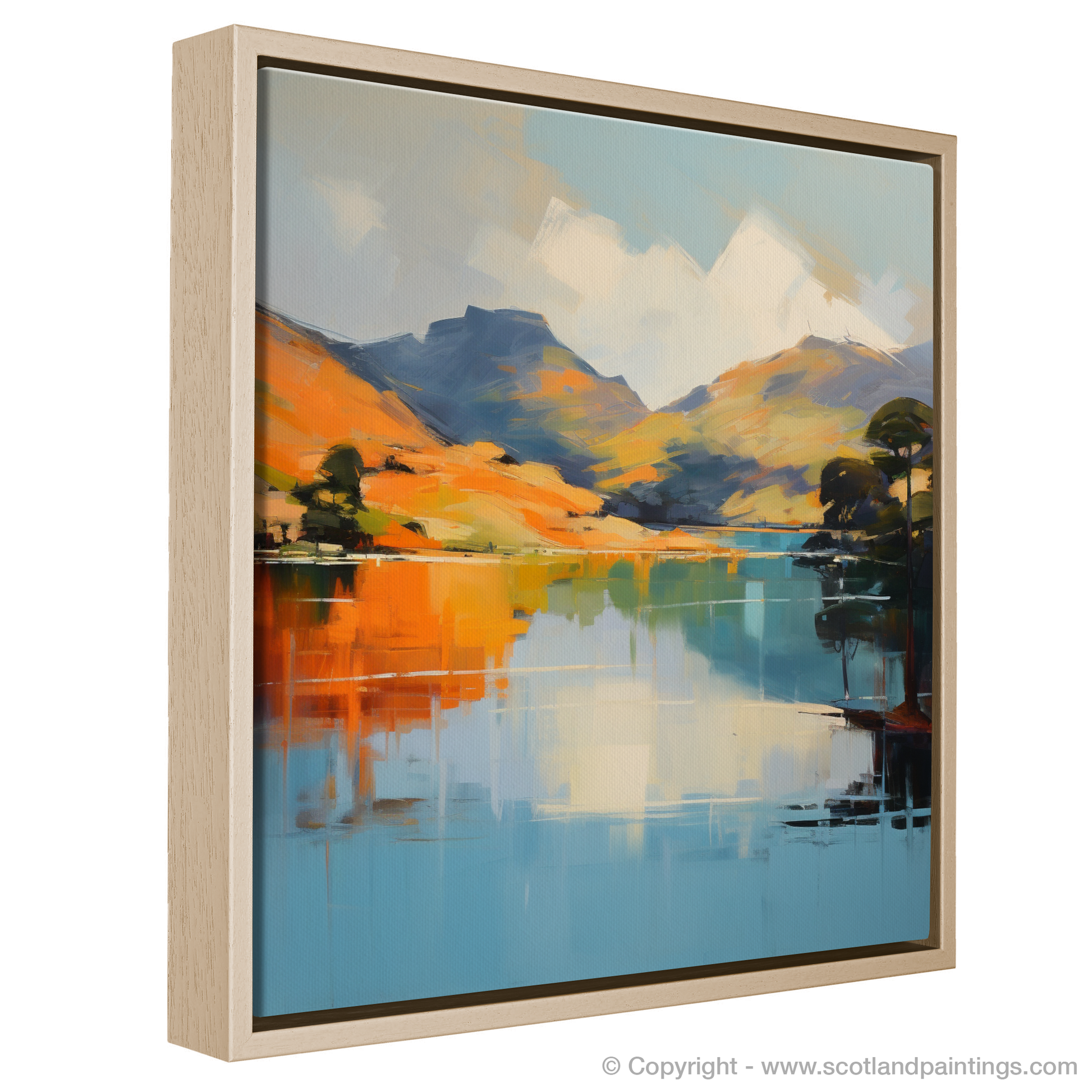 Immerse yourself in the serene beauty of Scotland with this captivating print, which draws its inspiration from the tranquil waters and picturesque landscapes of Loch Katrine in Stirling. The vibrant hues of orange and blue merge harmoniously, depicting the loch’s shimmering surface as it reflects the warm glow of the setting sun on the surrounding hills. This contemporary take on one of Scotland's cherished lochs is a symphony of bold brushstrokes and soothing colour gradients, bringing a modern twist to the timeless majesty of the Highlands.