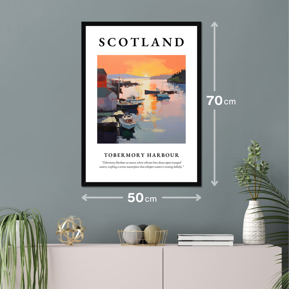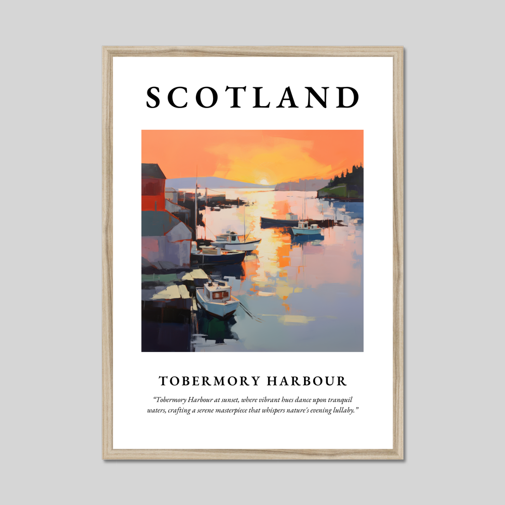 Celebrate the enchanting allure of Scotland with our captivating framed poster print of Tobermory Harbour. Measuring a generous 50cm x 70cm, this piece is an affordable way to transform any wall into a canvas of Scottish beauty. Available in black, white, or natural wood-effect frames, it complements any décor while adding a touch of elegance and charm to your space.
