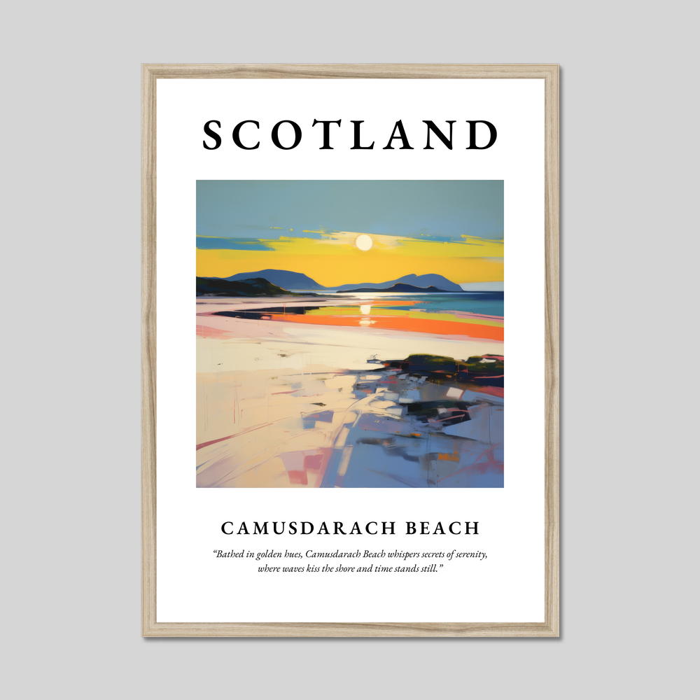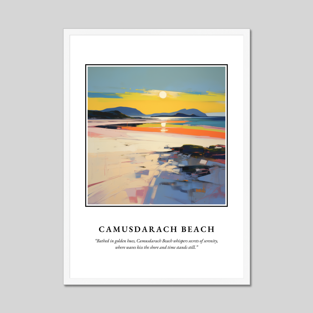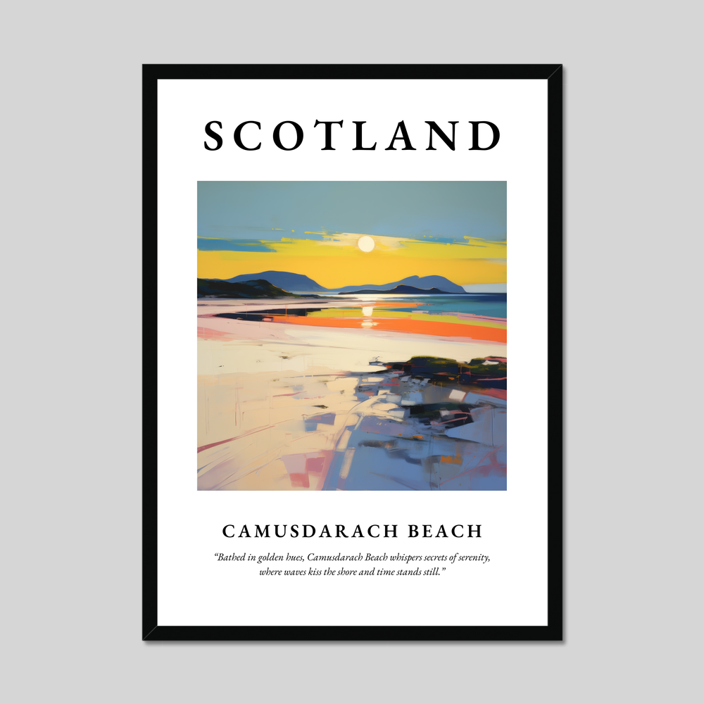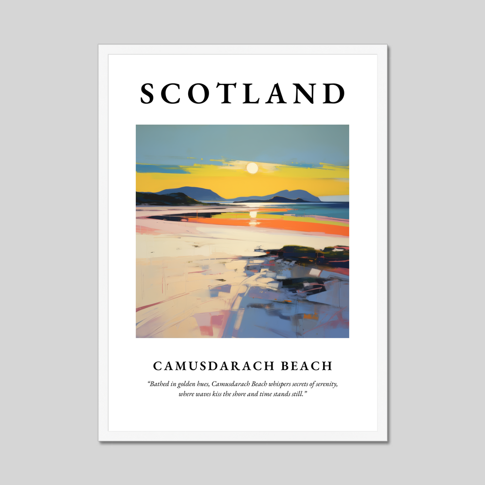 This tranquil haven has served as inspiration for many, and it's no surprise that it has become a beloved spot for both locals and travellers seeking solace in nature’s embrace. Our poster invites you to bring a piece of this serene paradise into your home, allowing you to bask in the calm and beauty of Camusdarach Beach every day.