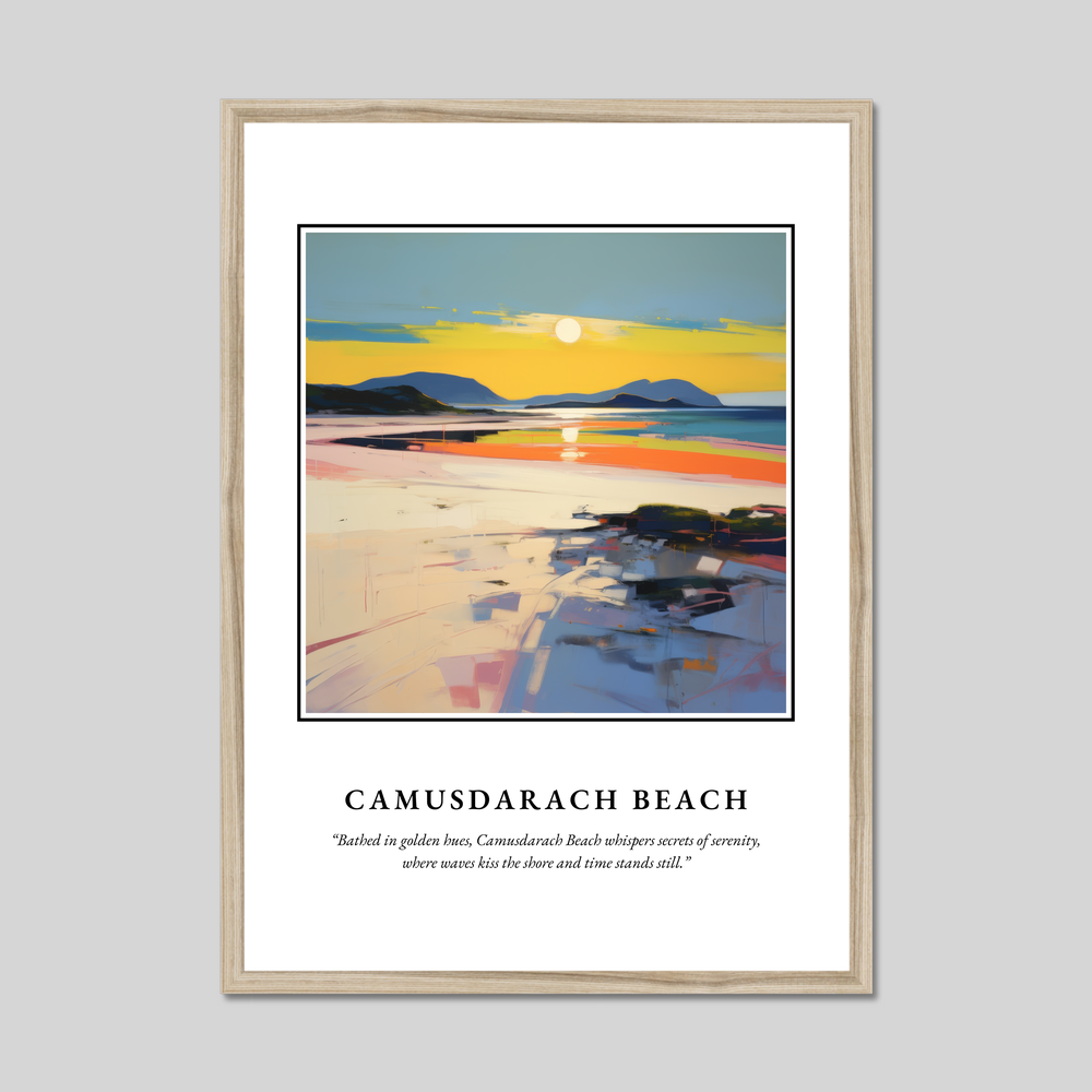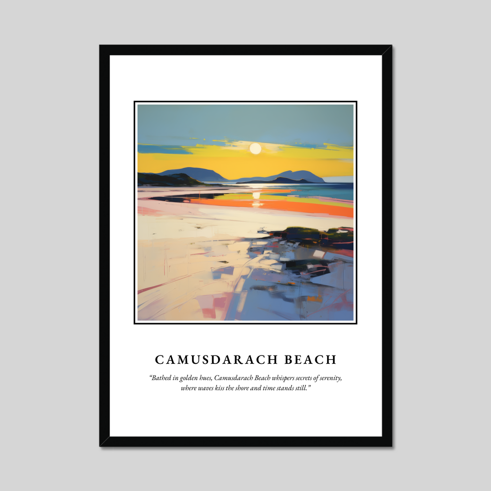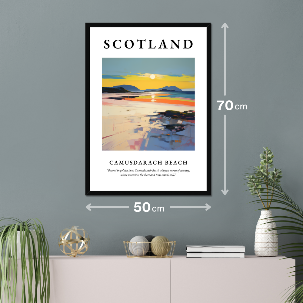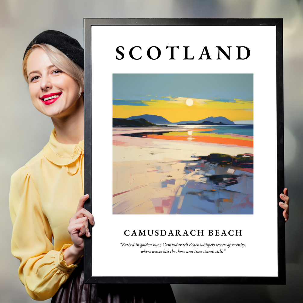 This tranquil haven has served as inspiration for many, and it's no surprise that it has become a beloved spot for both locals and travellers seeking solace in nature’s embrace. Our poster invites you to bring a piece of this serene paradise into your home, allowing you to bask in the calm and beauty of Camusdarach Beach every day.
