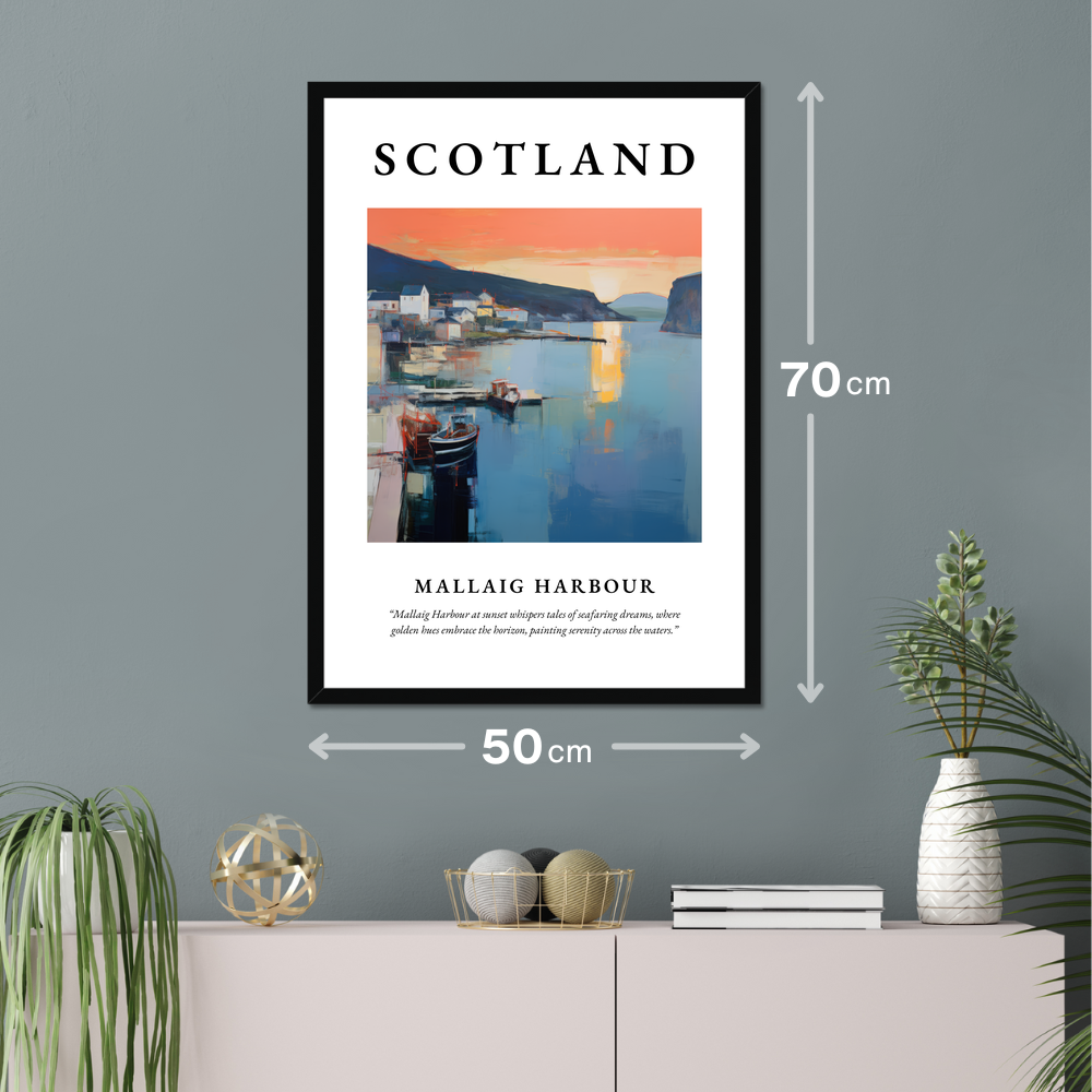 Bring the mesmerising beauty of Scotland into your home with our captivating framed poster print of Mallaig Harbour. At 50cm x 70cm, this large piece serves as a stunning focal point in any room, effortlessly covering a substantial wall area without breaking the bank. Choose from three sophisticated frame finishes: classic black, pure white, or natural wood-effect to perfectly complement your décor.