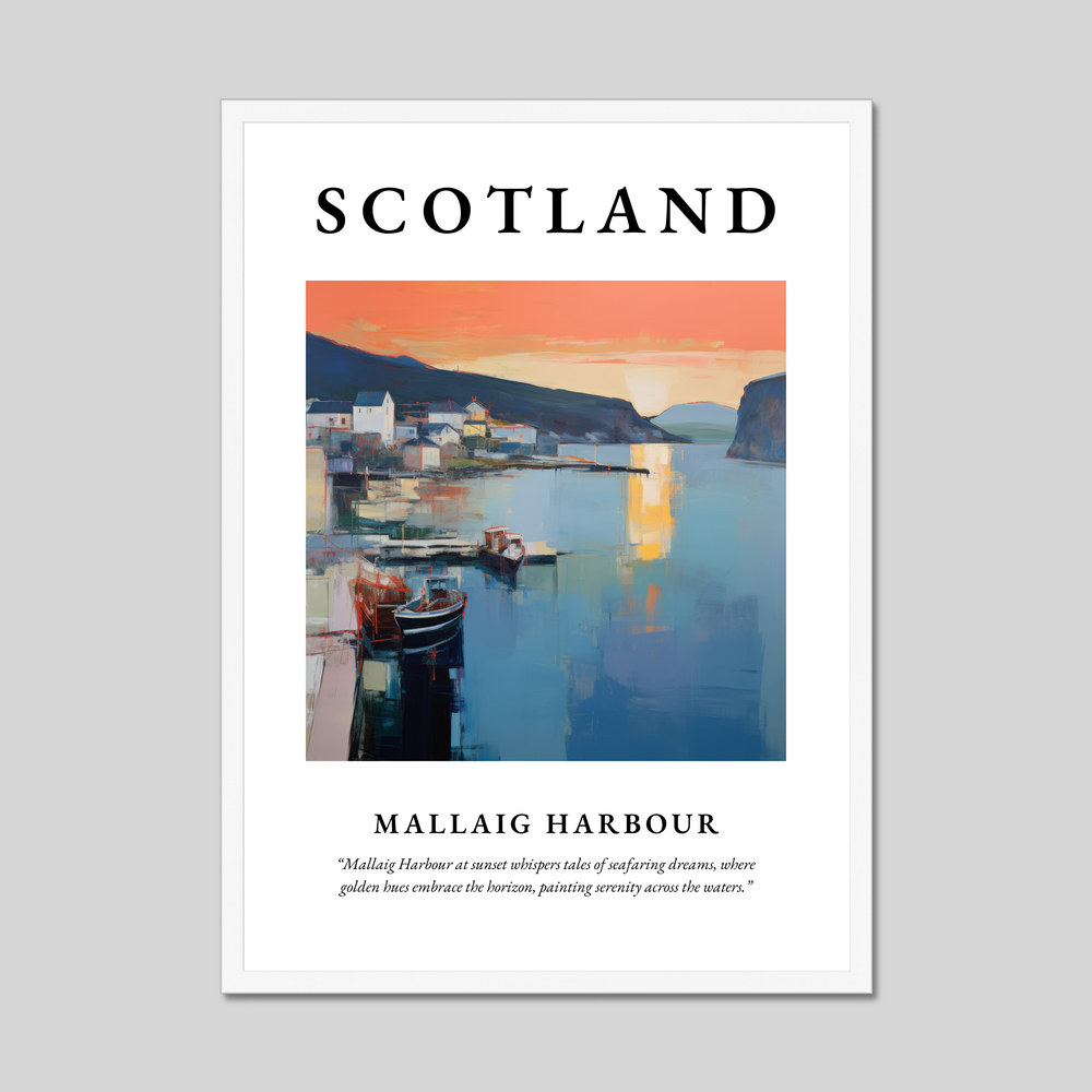 Stepping into Mallaig is like walking through a living canvas; the vibrant reflections seen in the artwork mirror the natural beauty that defines this Scottish locale. Whether you're reminded of peaceful sunset walks or the exciting anticipation of ferry journeys, this poster serves as a captivating reminder of Mallaig's timeless allure.