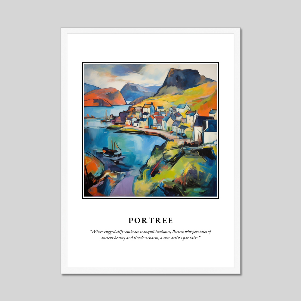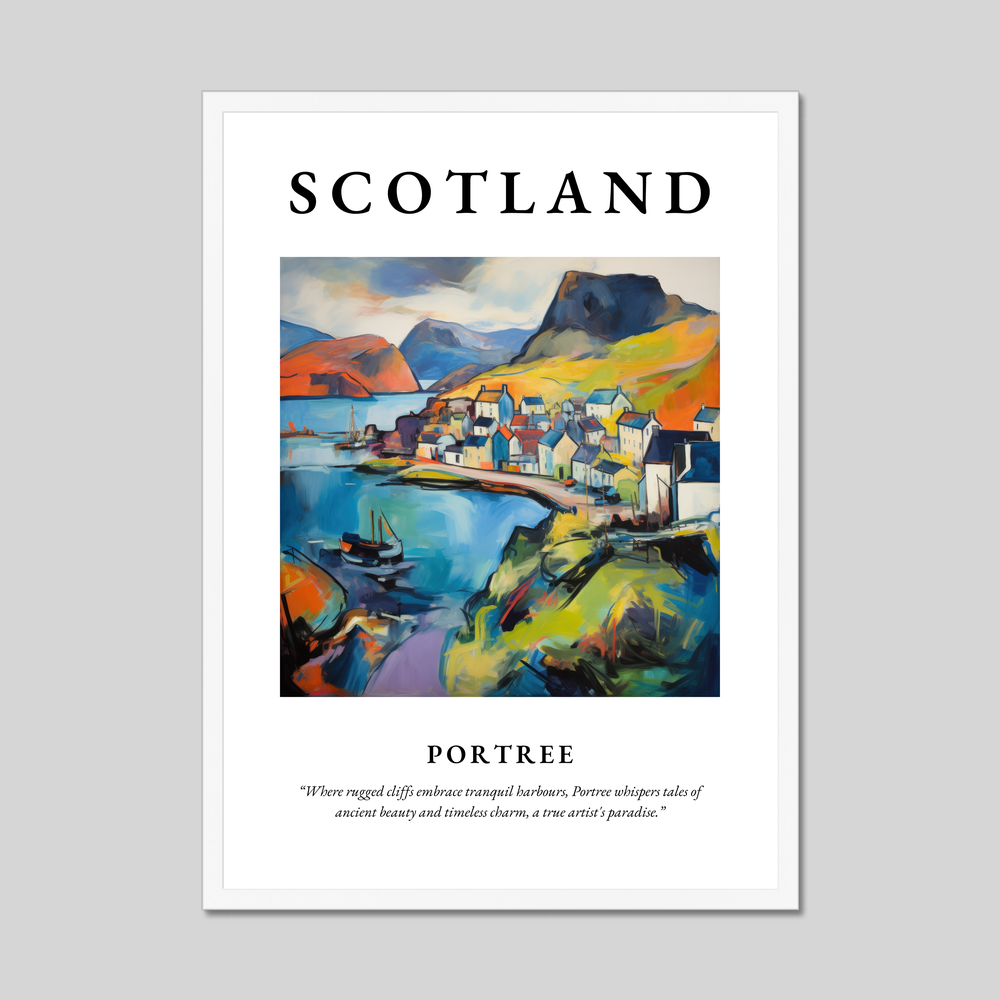 Whether you have walked along Portree's quaint streets or dream of the day you will, this striking poster is a window into its soul. With its legacy of ancient folklore, breathtaking landscapes, and warmhearted community, Portree invites you to explore its history and secrets, much like the Abstract Expressionism style reveals the depth of emotion with every viewing.
