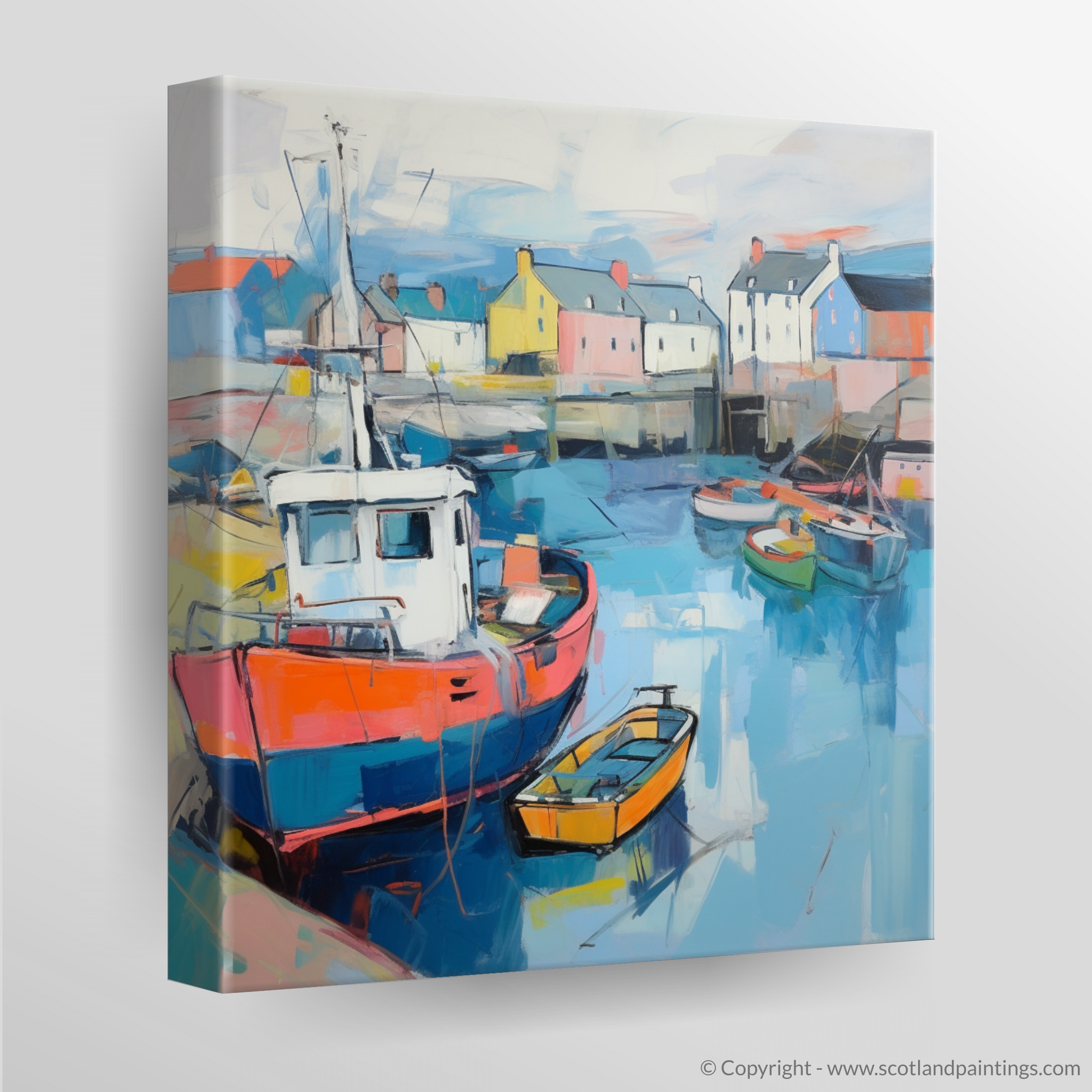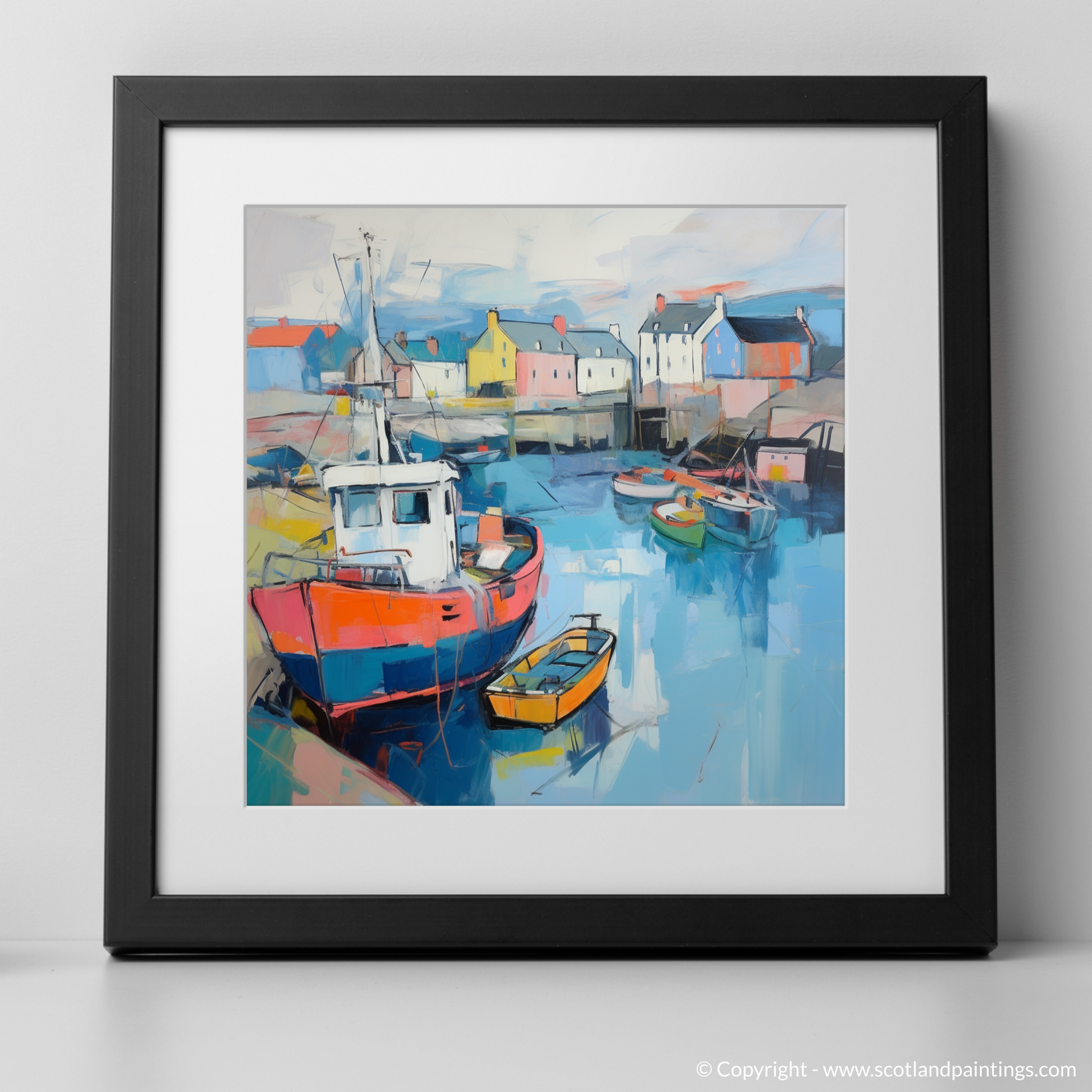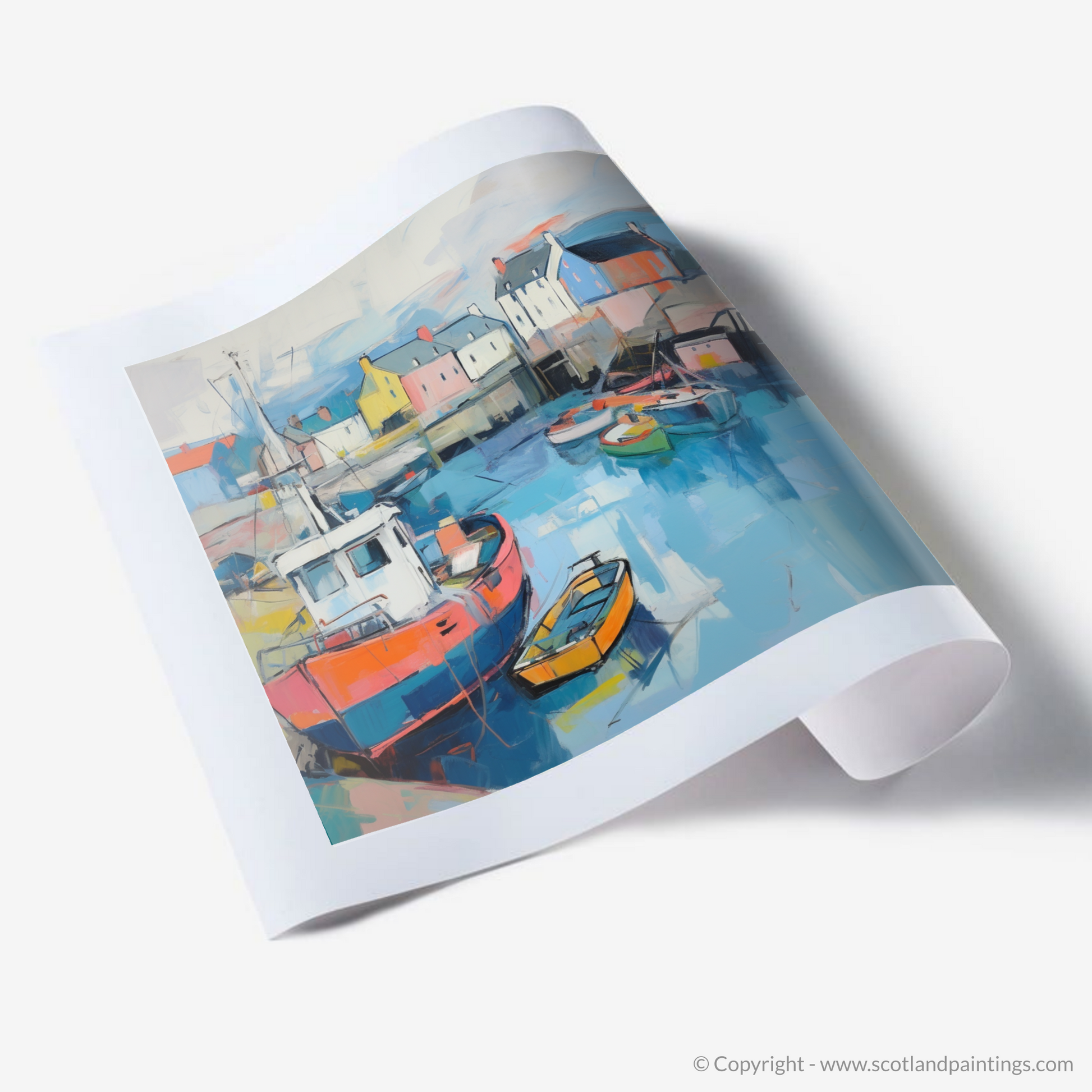 Embrace the vibrant energy of the sea with this stirring abstract expressionist print, captivating the essence of Millport Harbour, located on the picturesque Isle of Cumbrae. This piece invites a harmonious disorder of bold strokes and a vivid colour palette that masterfully captures the dynamic spirit of the Scottish harbours.