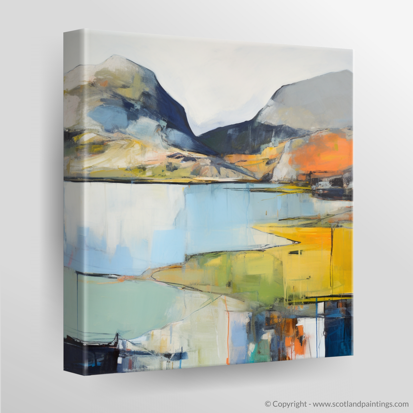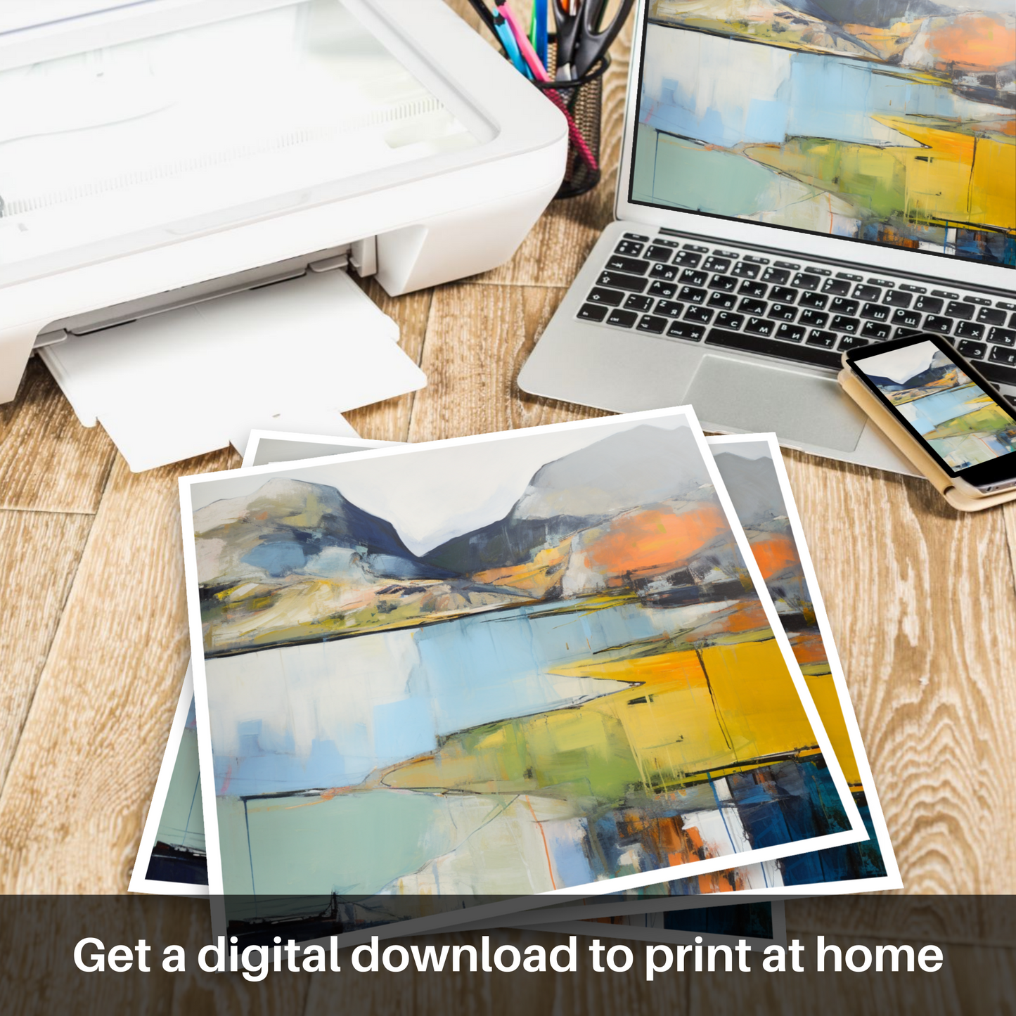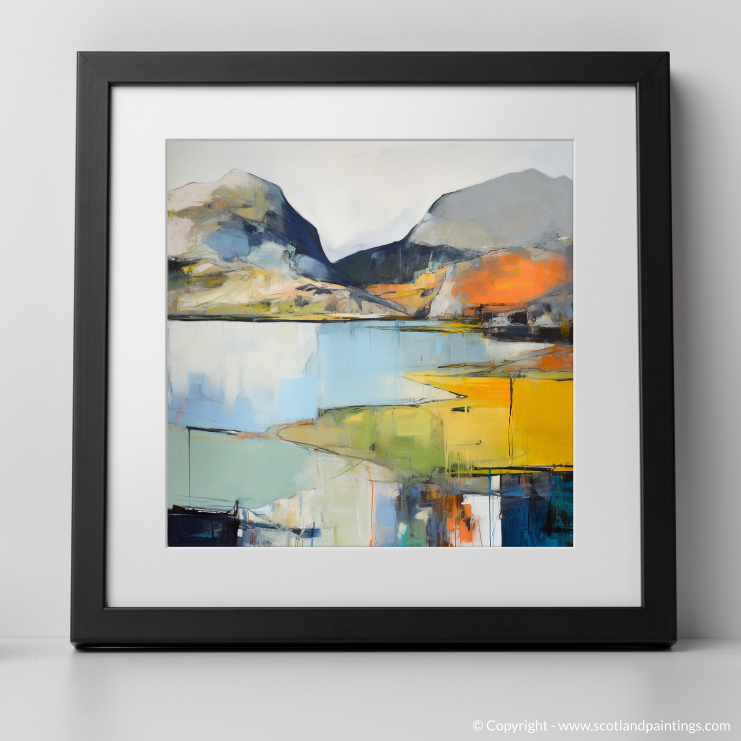 Immerse yourself in the wild beauty of the Scottish Highlands with this captivating print, inspired by the serene Loch Coruisk. The essence of this majestic landscape has been masterfully interpreted through a vibrant lens of Abstract Impressionism, inviting the observer into a realm where bold colours and fluid forms converge to evoke the rugged charm of Scotland's natural splendour.
