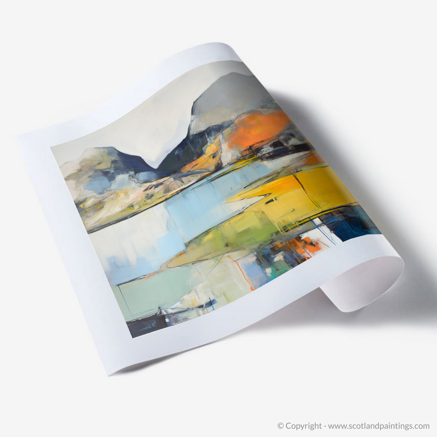 This print serves not only as a piece of art but as an invitation to ponder and reflect, to lose oneself in the abstraction of nature's grandeur. The playful interplay between the reflective surface of the loch and the imposing presence of the mountains creates a meditative harmony, a mirage of shapes and colours that transcends the boundaries of traditional landscape representation.