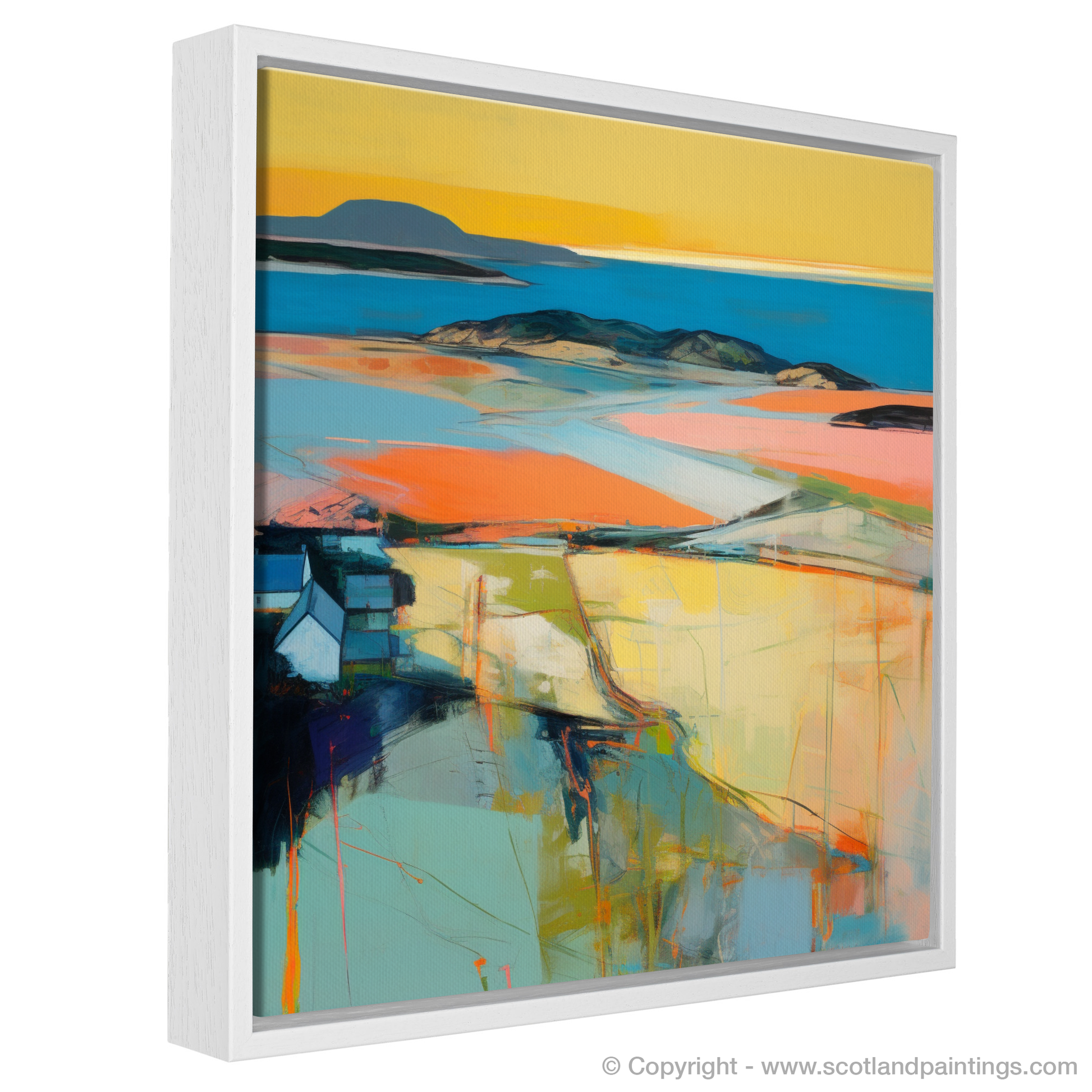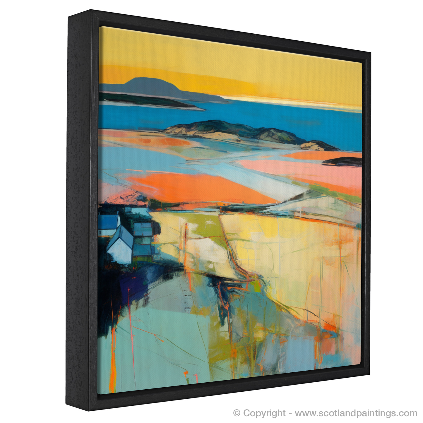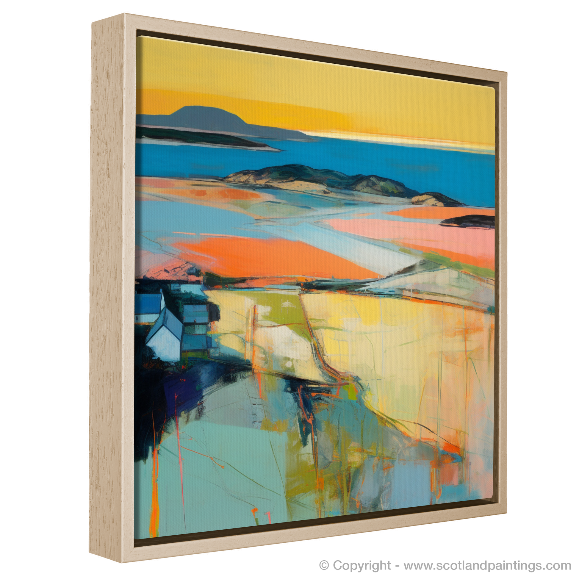 As the sun dips below the horizon, the Sound of Iona is enveloped in a symphony of colours, captured exquisitely in this captivating print from our 'Scottish Coves' collection. Vivid hues of tangerine, cerulean, and apricot meld together, abstractedly portraying the unique moment when day succumbs to night, transforming the tranquil waters into a mirror reflecting the fiery sky.