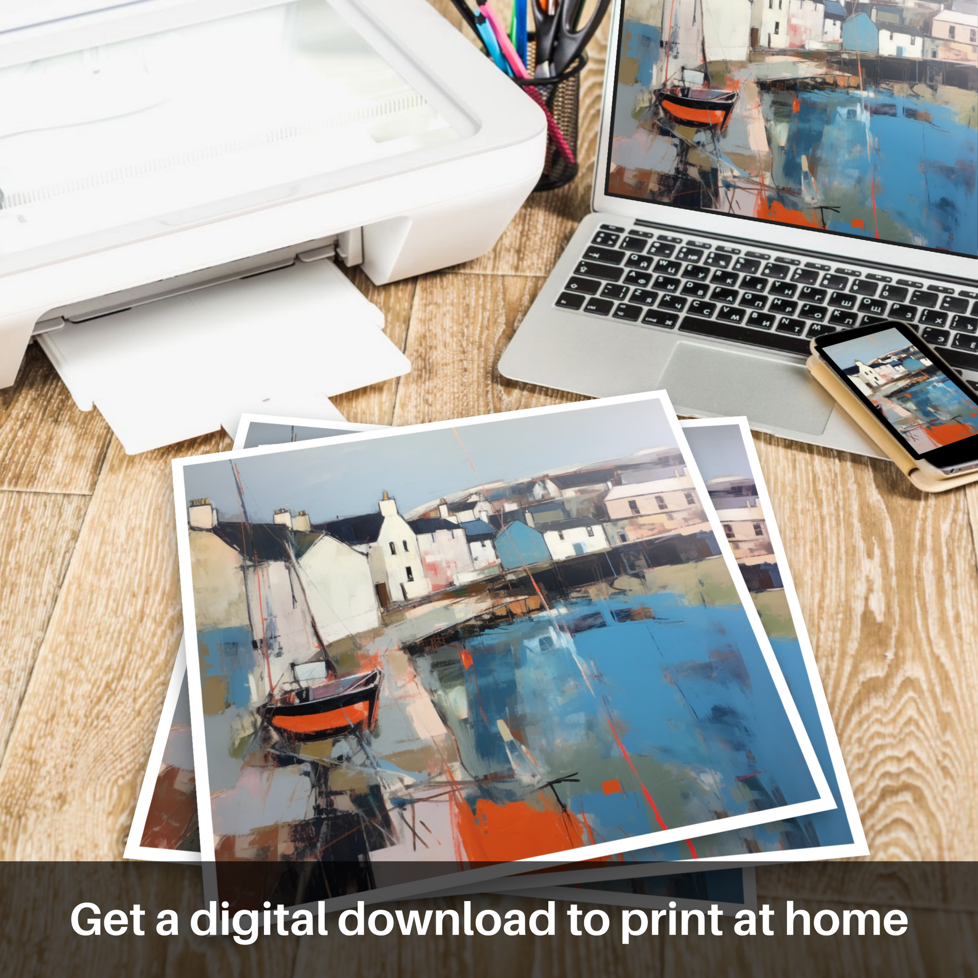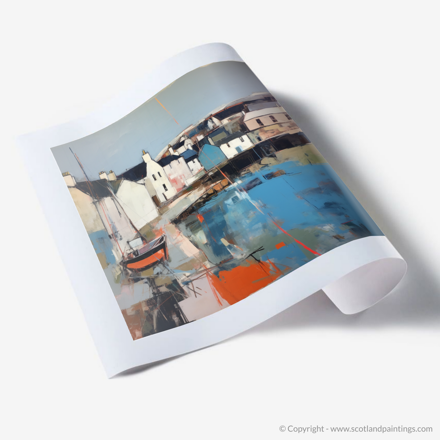 Immerse yourself in the essence of Anstruther, captured through bold strokes and vibrant abstraction in this evocative print. The artwork invites the viewer to experience the quaint charm of this Fife fishing village through the lens of Abstract Impressionism. Each brushstroke and hue intertwines to articulate the tranquil harbour, reflective waters, and the timeless architecture of the village houses, whilst offering a dreamlike quality that teases the senses.