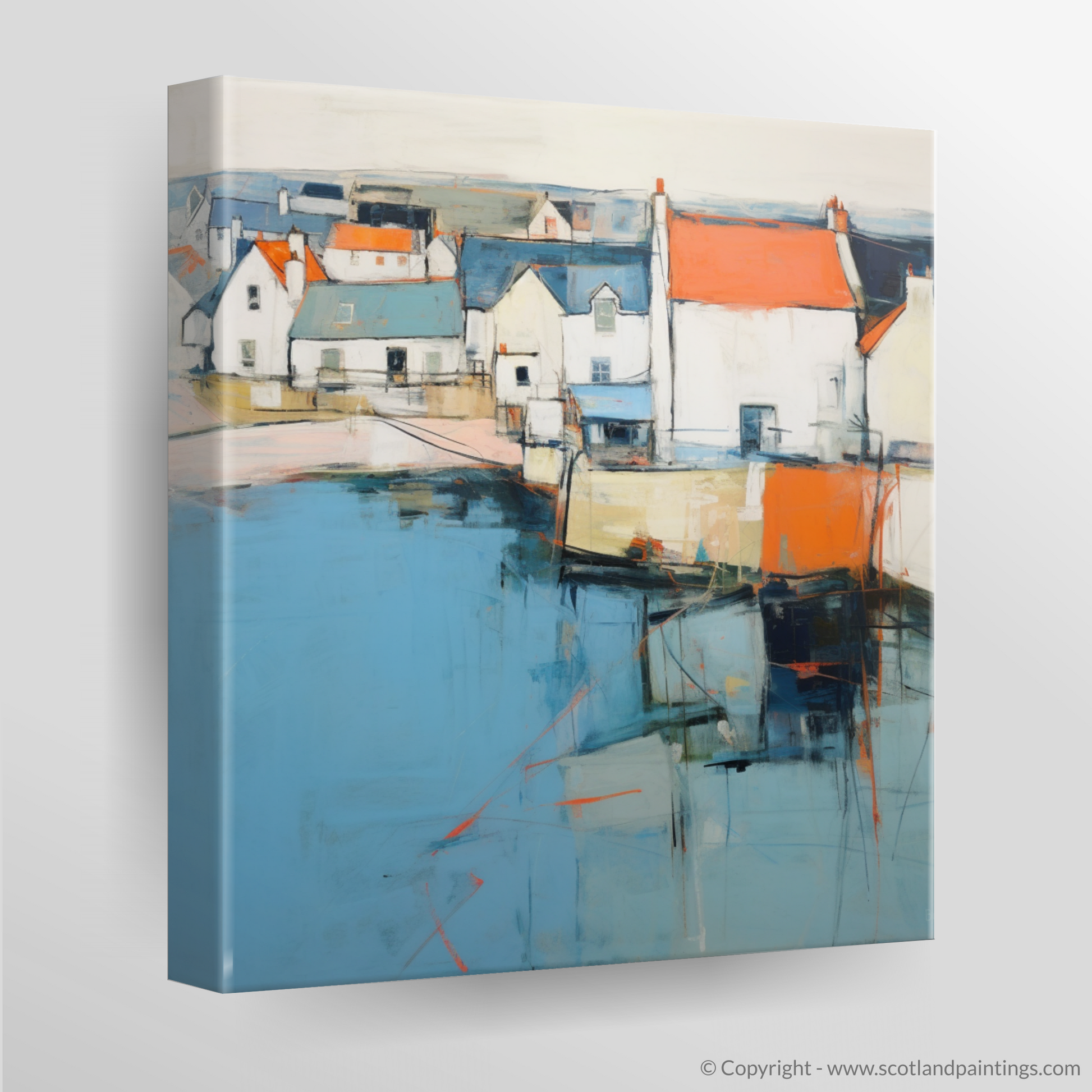 Embarking on a journey through brushstrokes and vivid hues, this art piece transports viewers to the quaint and charming village of Anstruther, Fife. Captured in the distinctive style of Abstract Impressionism, the print presents a harmonious blend of abstraction and figuration that invites one's gaze to meander through the coastal scenery.