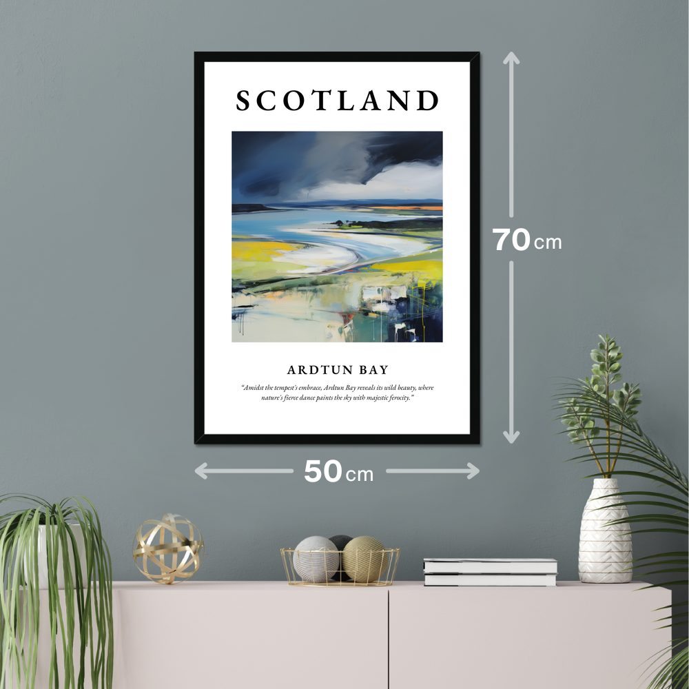 Perfect for art enthusiasts or those who hold a deep affinity for Scotland, this large-format poster offers a commanding presence without the hefty price tag. It's ideal for showcasing your love for the dramatic Scottish coast or as a keepsake of cherished memories by Ardtun Bay.