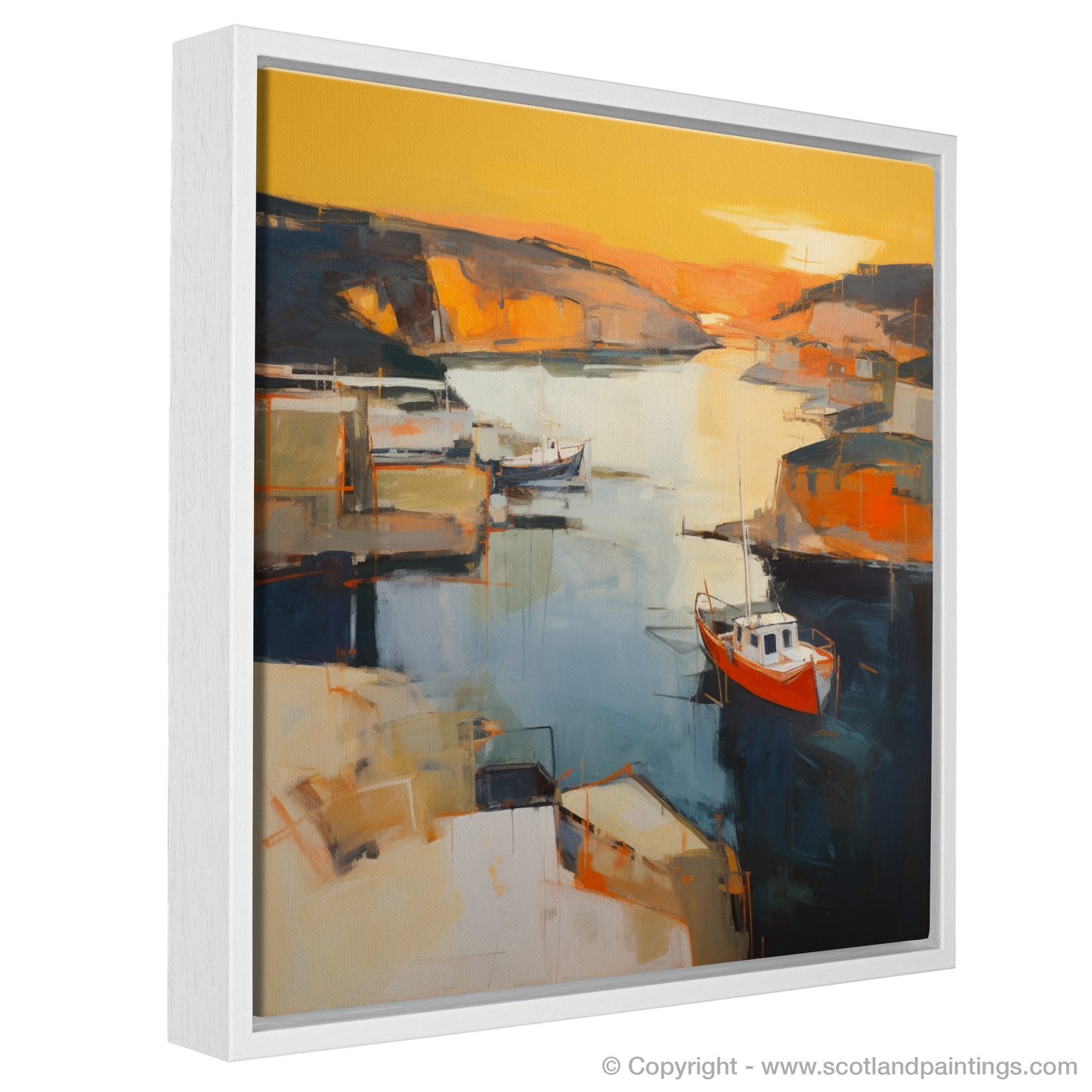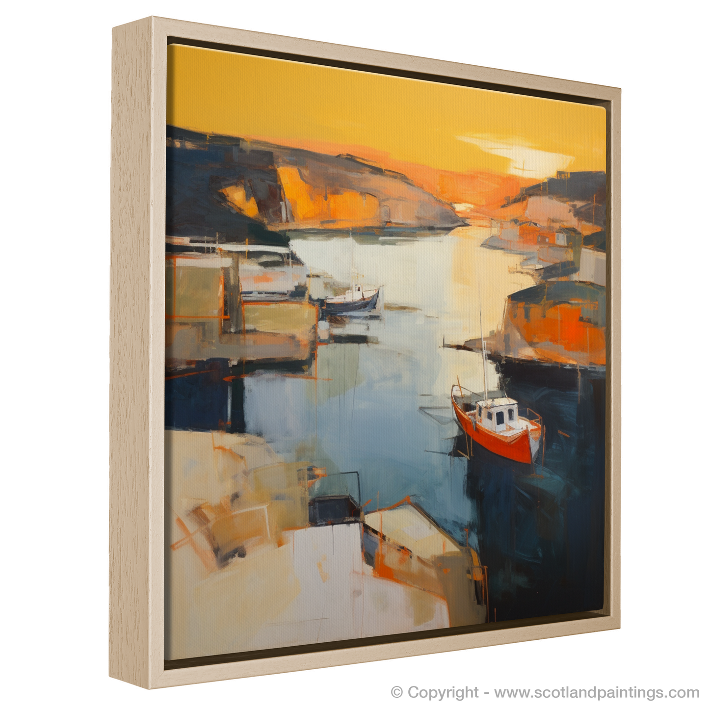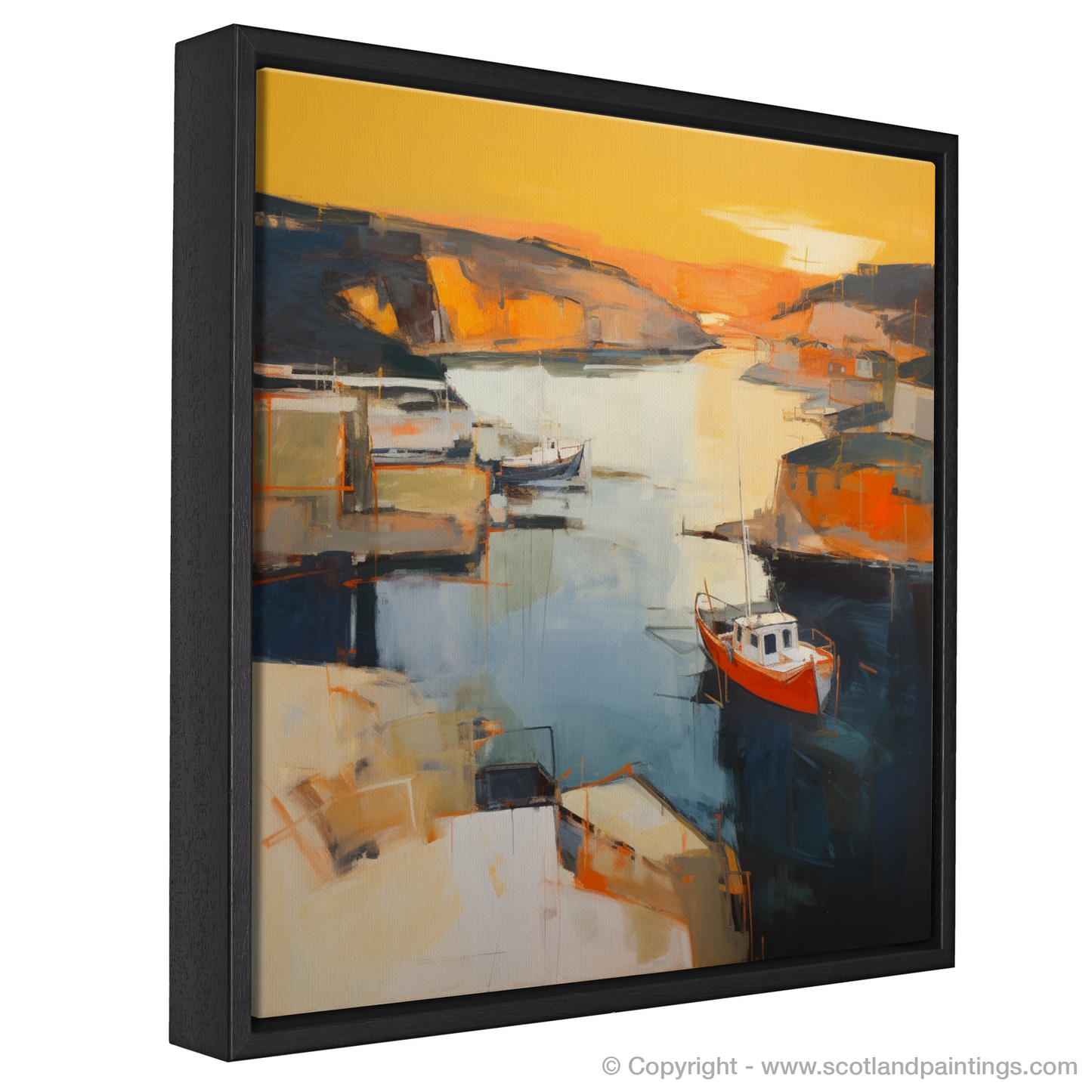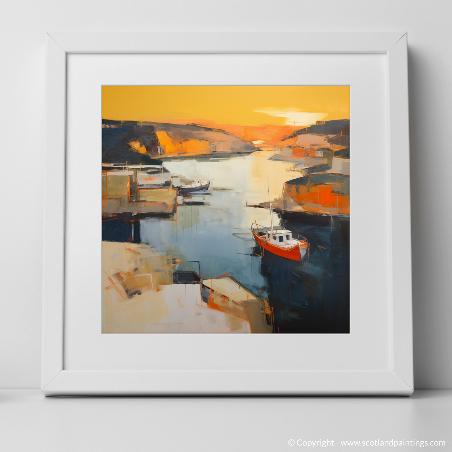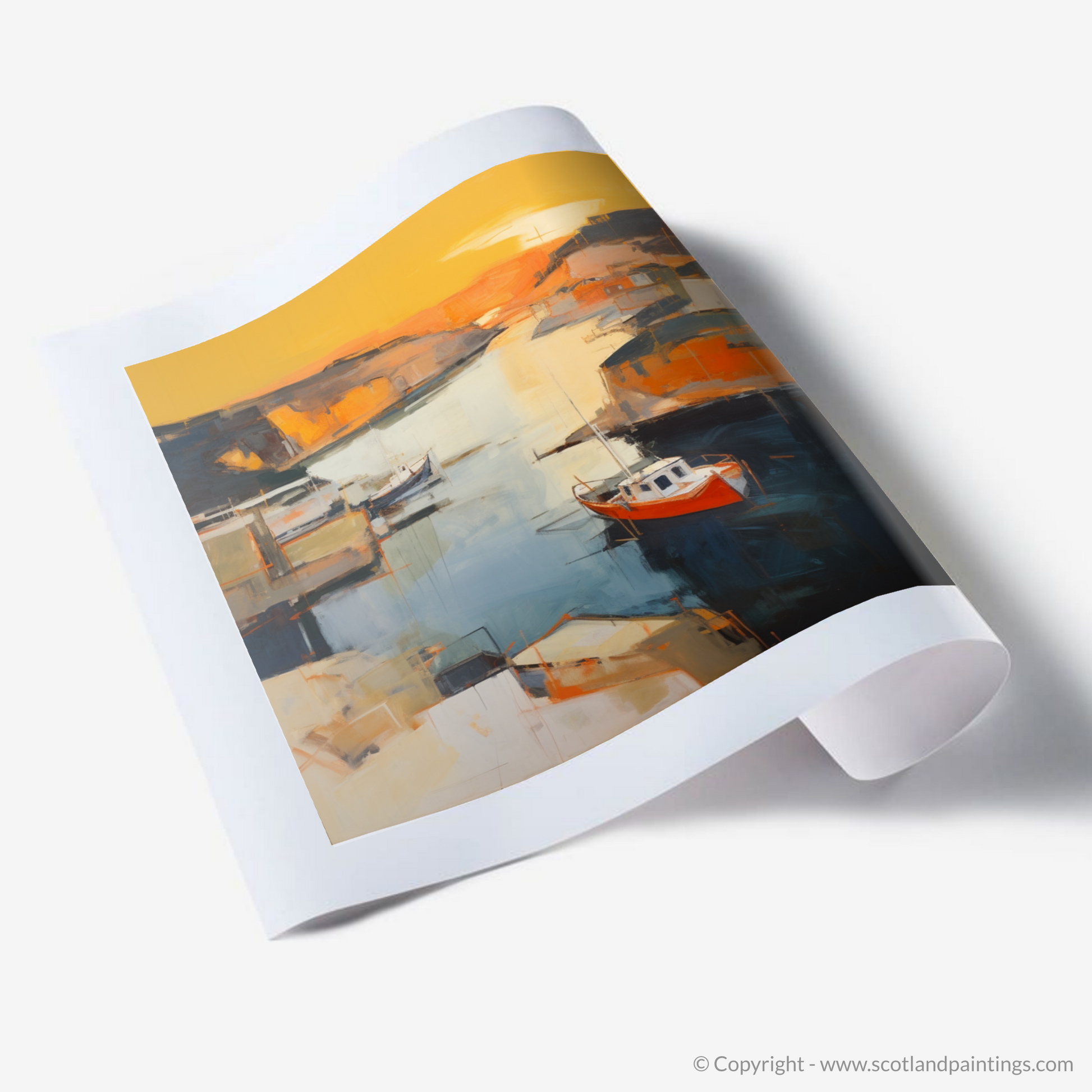 Immerse yourself in the tranquillity of a serene Scottish harbour bathed in the golden embrace of the setting sun. This exquisite piece captures the enchanting atmosphere of St Abba's Harbour during the magical golden hour, brought to life in rich, abstract brushstrokes.