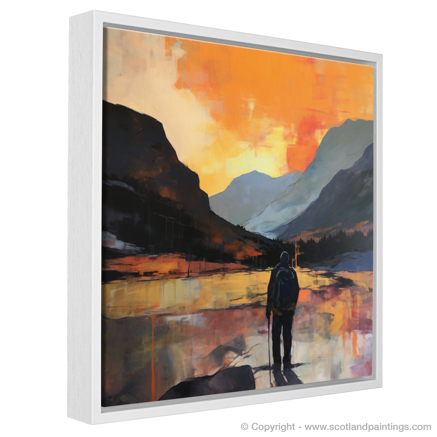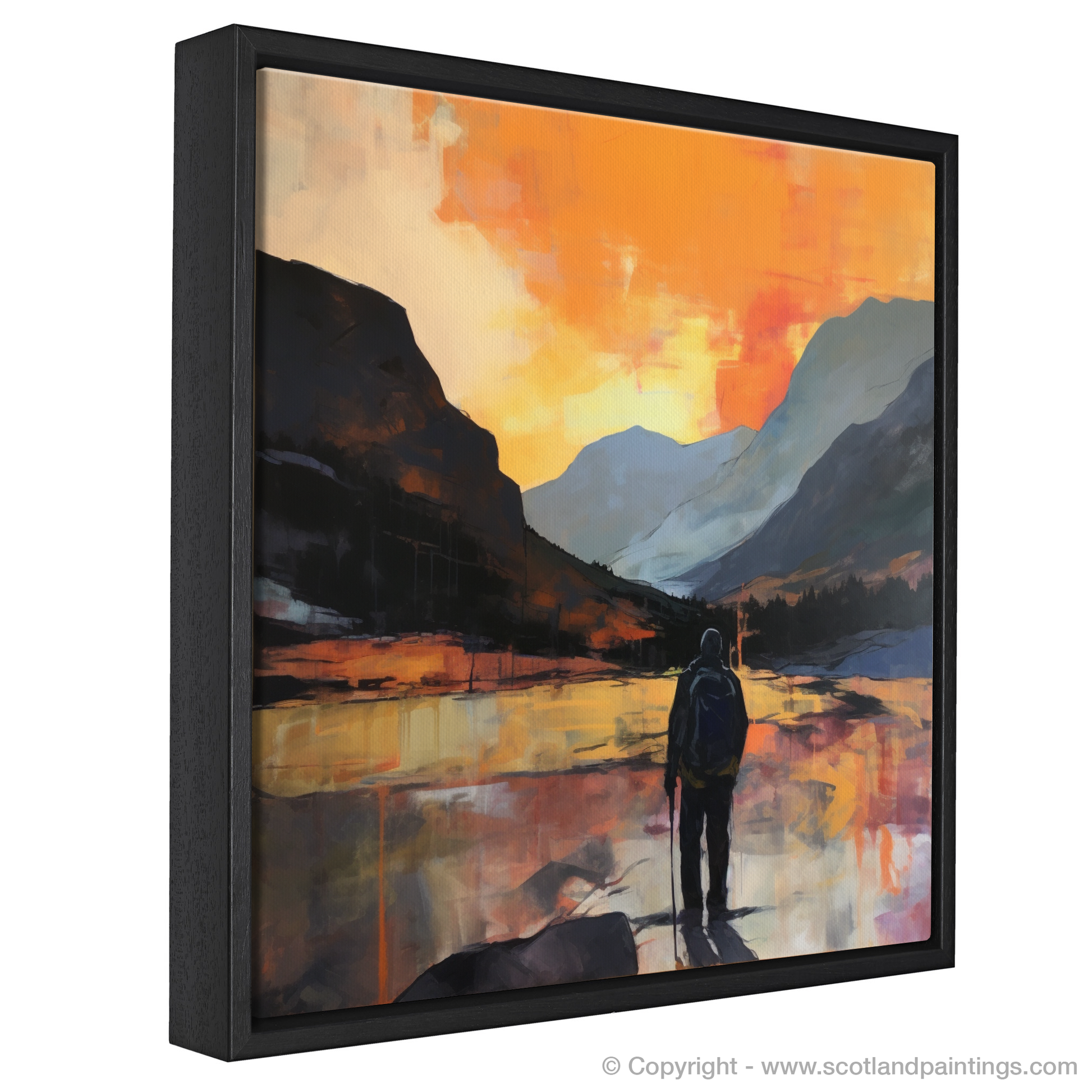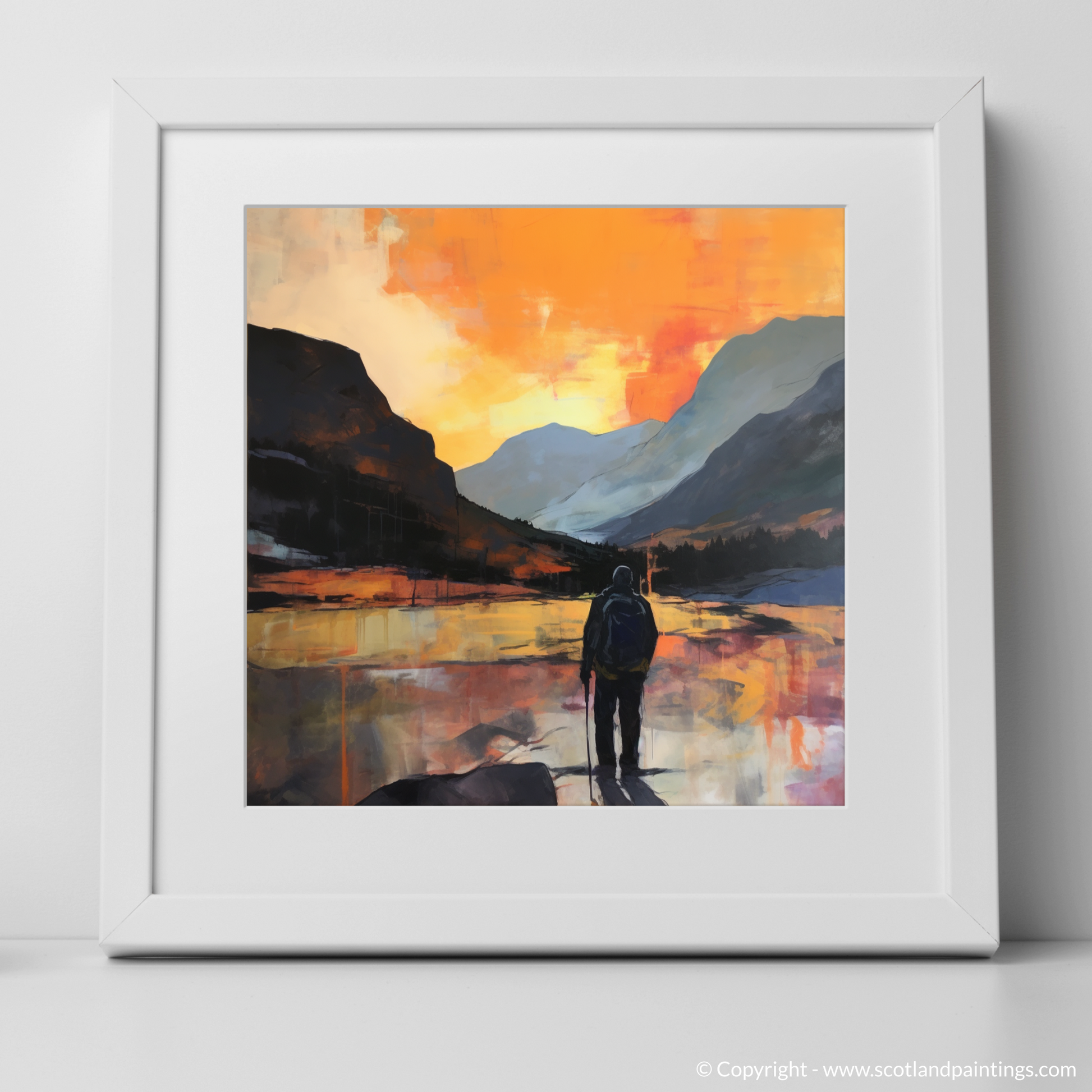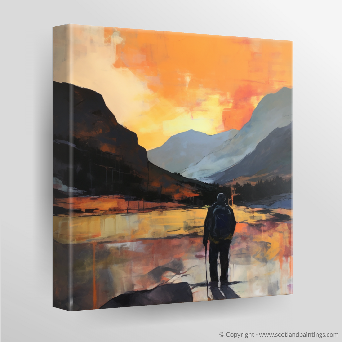 Embrace the allure of nature's grandeur with this evocative print, a piece that encapsulates the essence of Abstract Impressionism, soulfully interpreted through the arresting visuals of a hiker witnessed amidst the serene splendour of a Glencoe sunset.