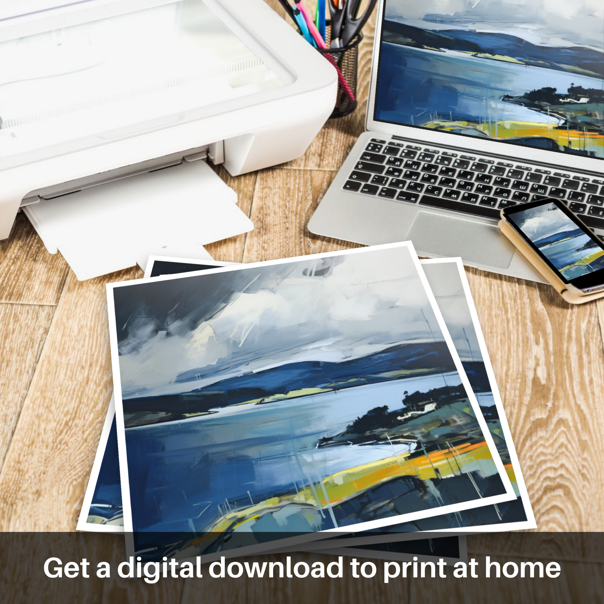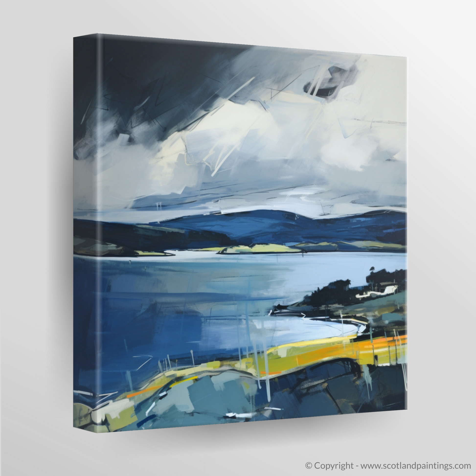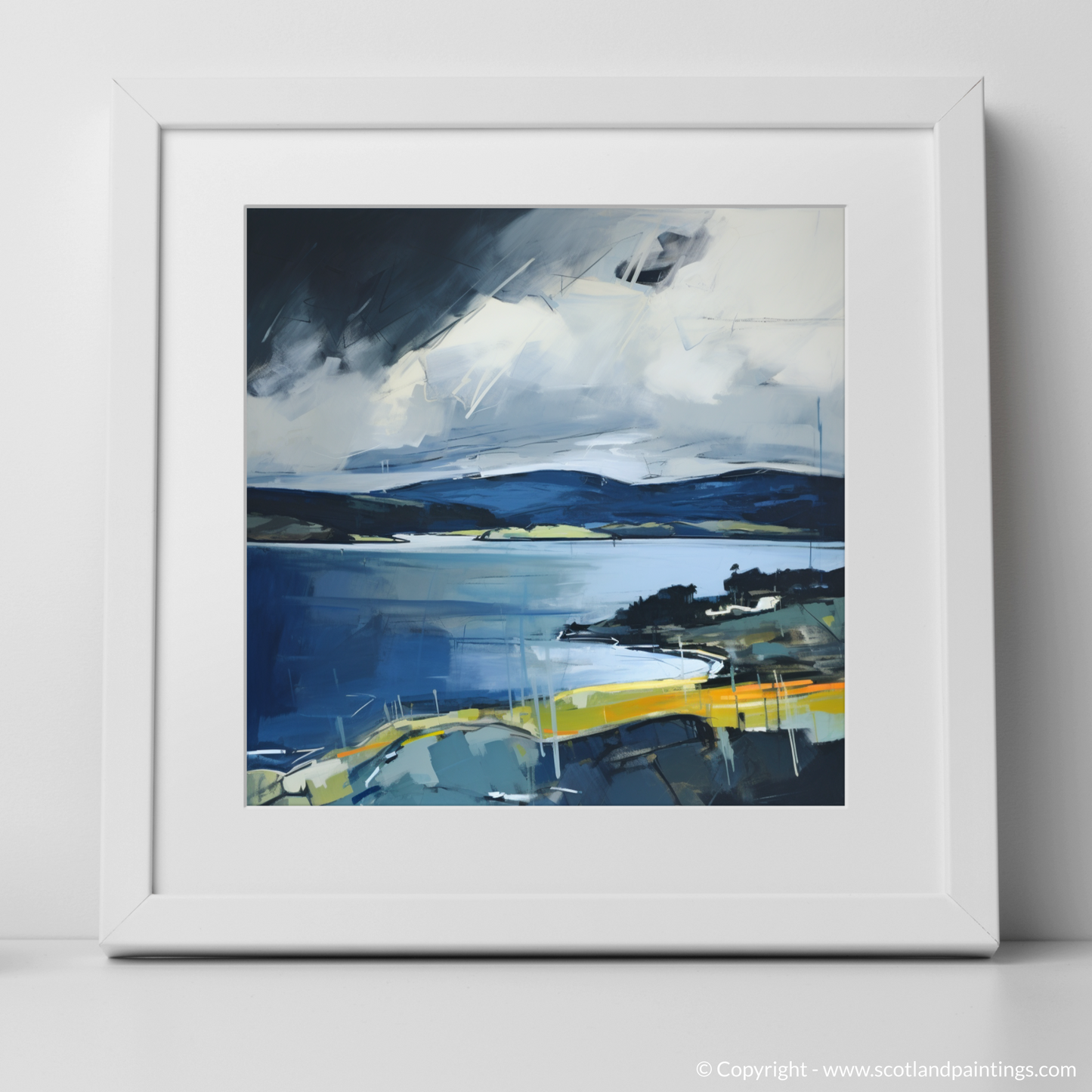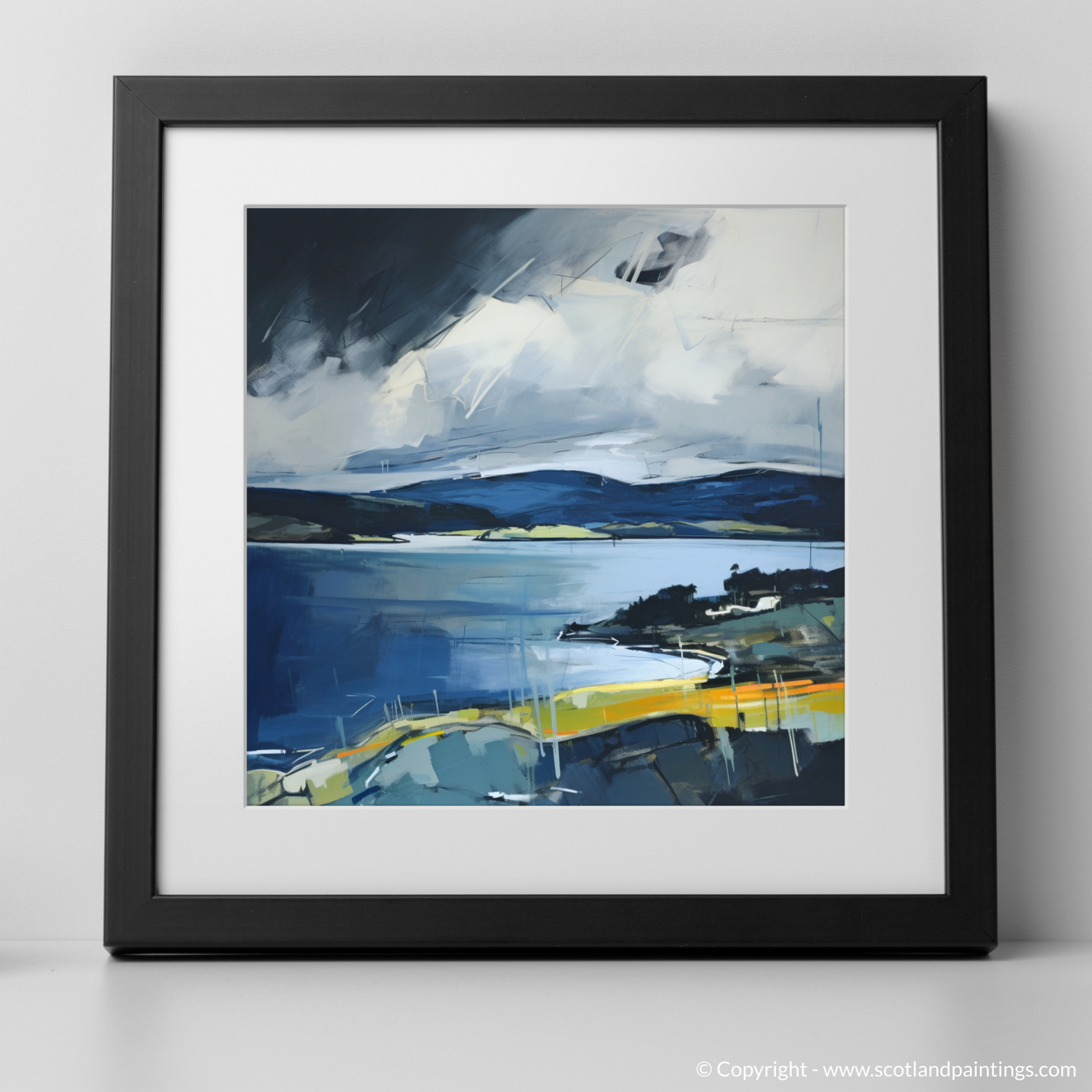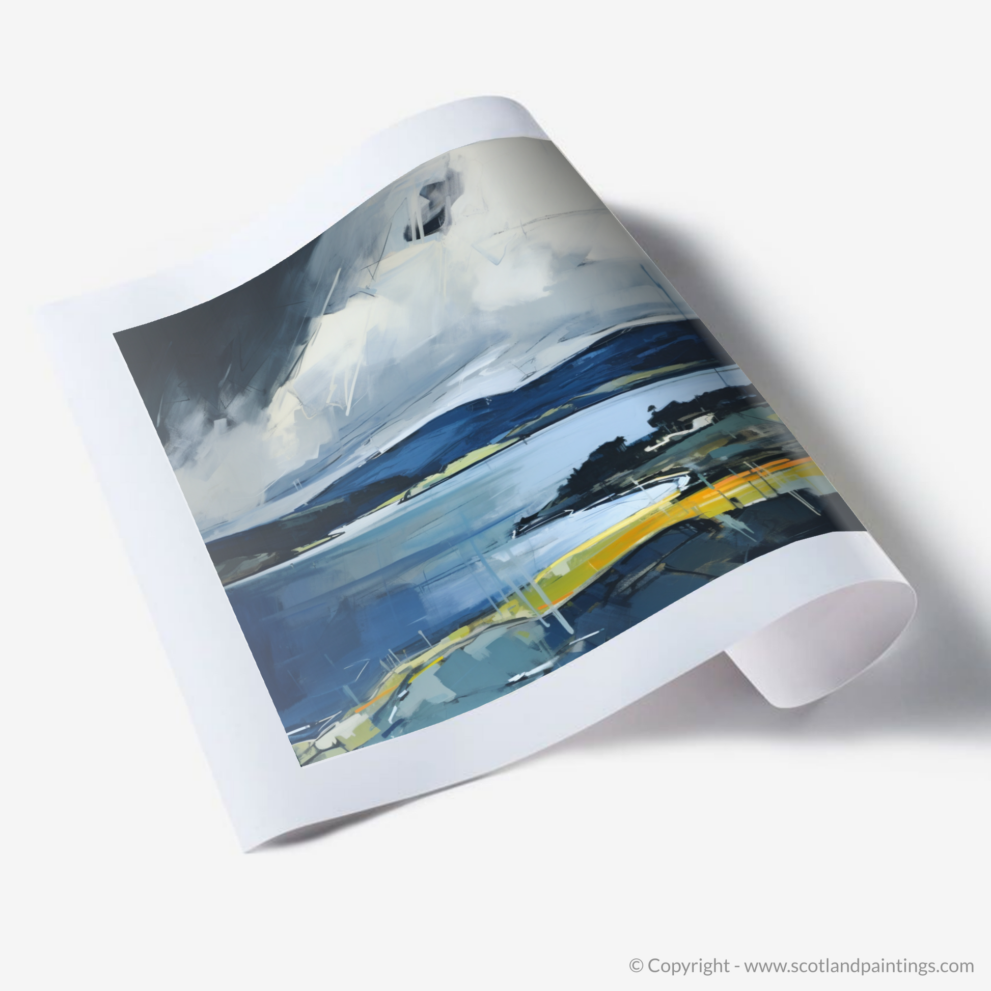 Capturing the untamed spirit of coastal tempests, this striking print beckons the viewer to immerse in the dramatic beauty of Scotland's rugged shorelines. The artwork, a masterful blend of abstraction and impressionist touches, evokes the wild essence of Langamull Bay under a storm-laden sky.