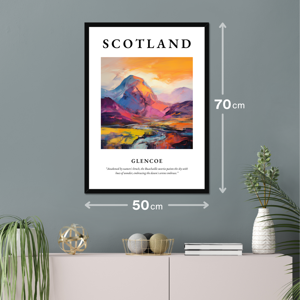 Experience the allure of Scotland with our striking framed poster print, designed to captivate your senses and transport you to the heart of the Highlands. This 50cm x 70cm masterpiece, part of our exclusive "Glencoe" collection, offers a vivid portrayal of one of the most awe-inspiring landscapes in the world.
