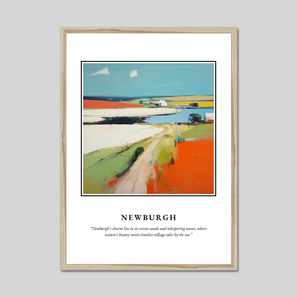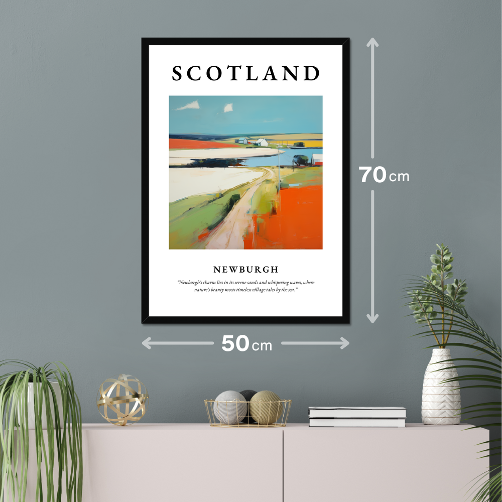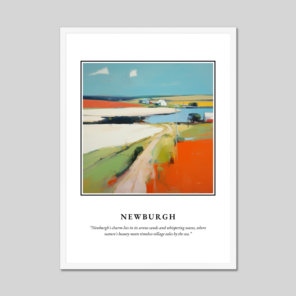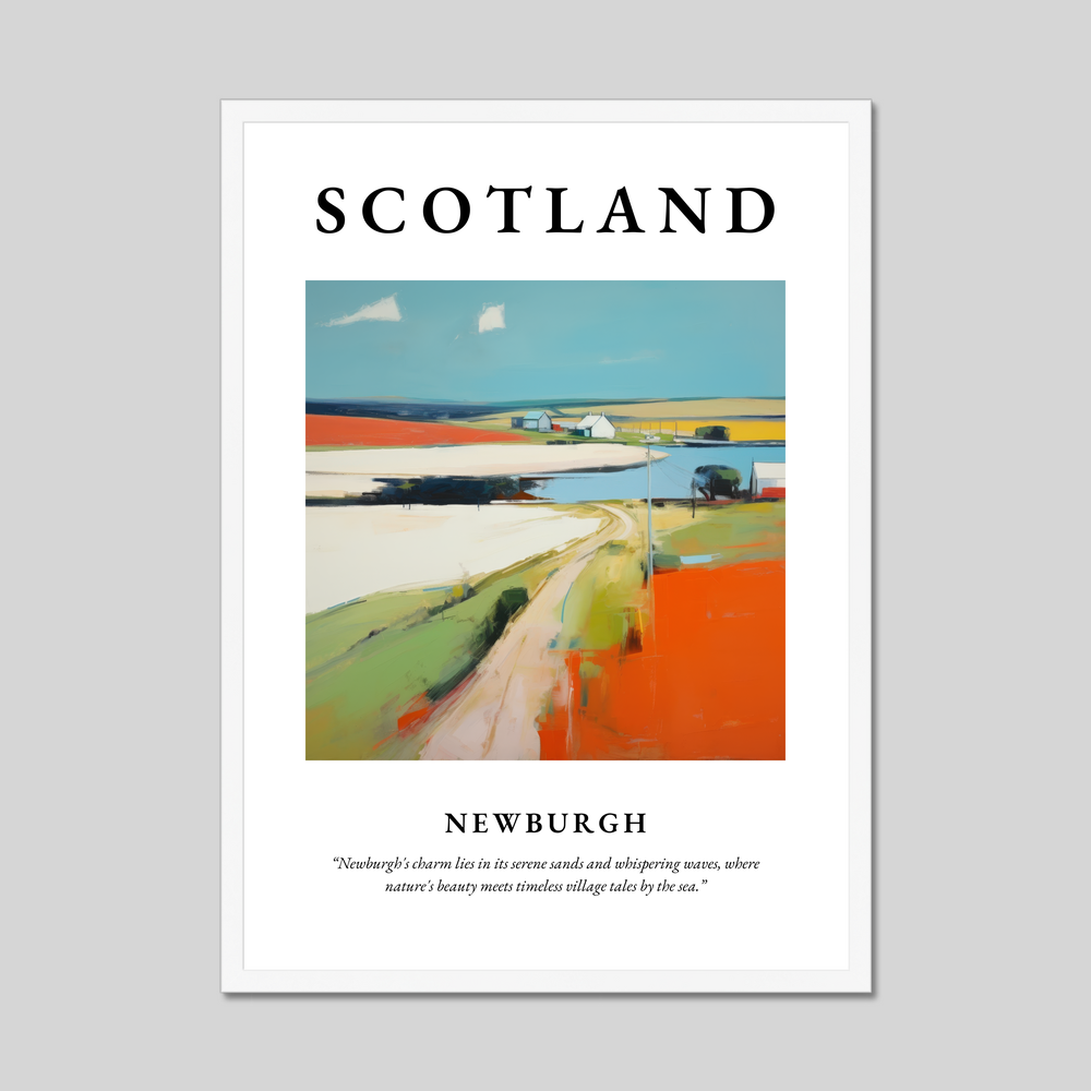 Bring a piece of Scotland’s enchanting beauty into your home with our striking 50cm x 70cm framed poster print, a proud addition to our "Scottish Villages" collection. At the top, "SCOTLAND" commands attention in bold lettering, setting the stage for an immersive visual journey. Beneath it, in a harmonious juxtaposition, rests a contemporary painting of Newburgh, celebrated in a style known for its fresh and invigorating appeal. Completing the composition is a gentle whisper of words: “Newburgh's charm lies in its serene sands and whispering waves, where nature's beauty meets timeless village tales by the sea.”