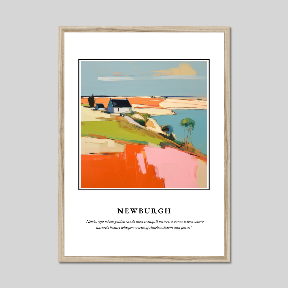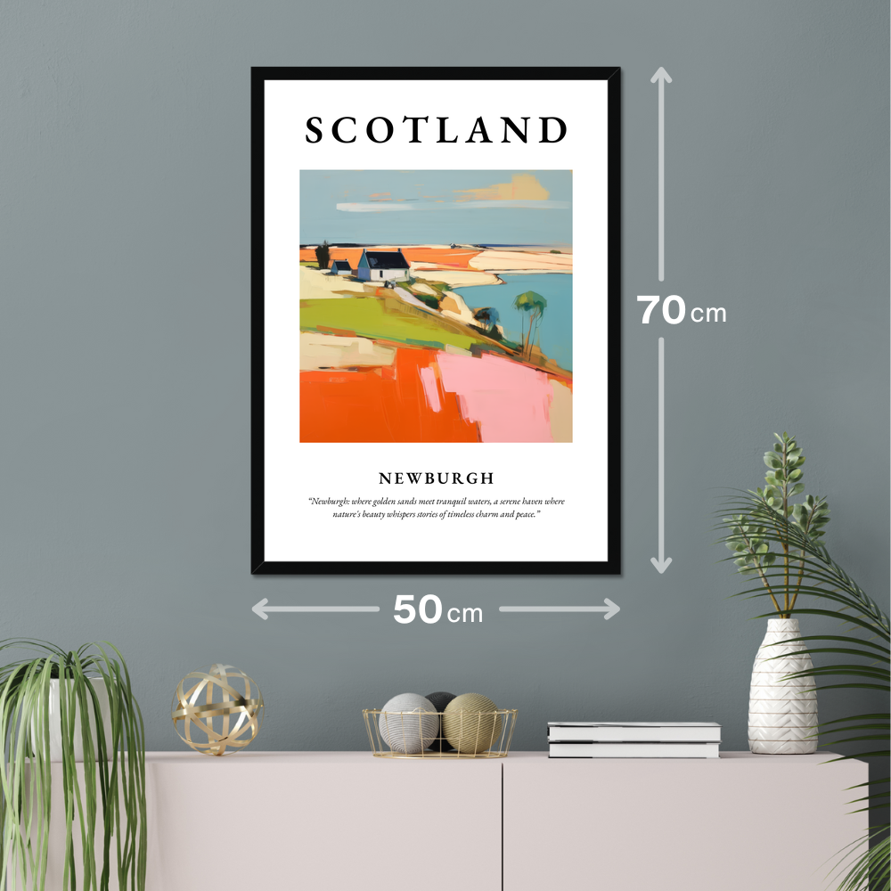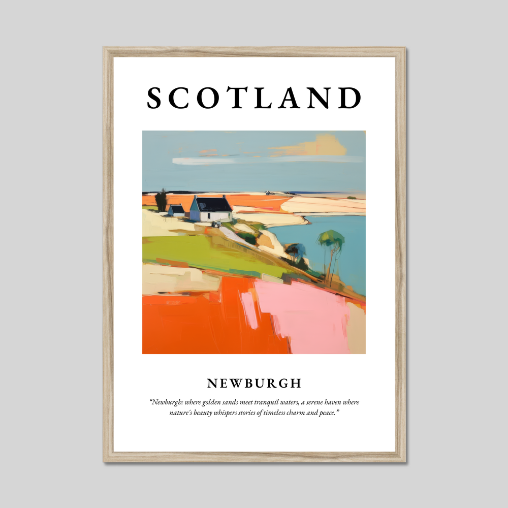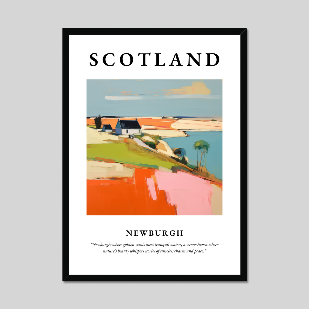 Immerse yourself in the serene beauty of Scotland with our exquisite framed poster print, a stunning homage to the picturesque village of Newburgh. Measuring a generous 50cm x 70cm, this piece triumphantly dominates any wall space, offering an expansive window into the tranquil charms of the Scottish countryside without breaking the bank. The poster can be elegantly framed in your choice of black, white, or natural wood-effect to seamlessly complement your decor.
