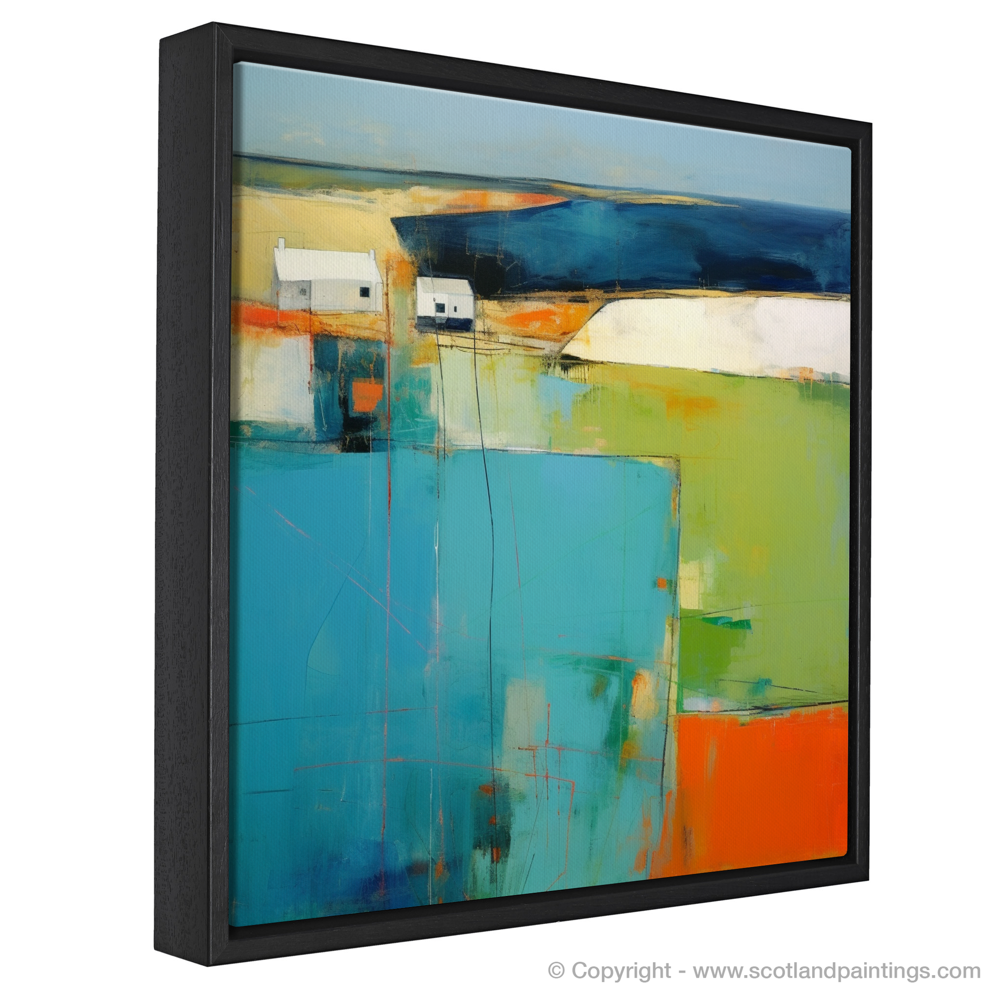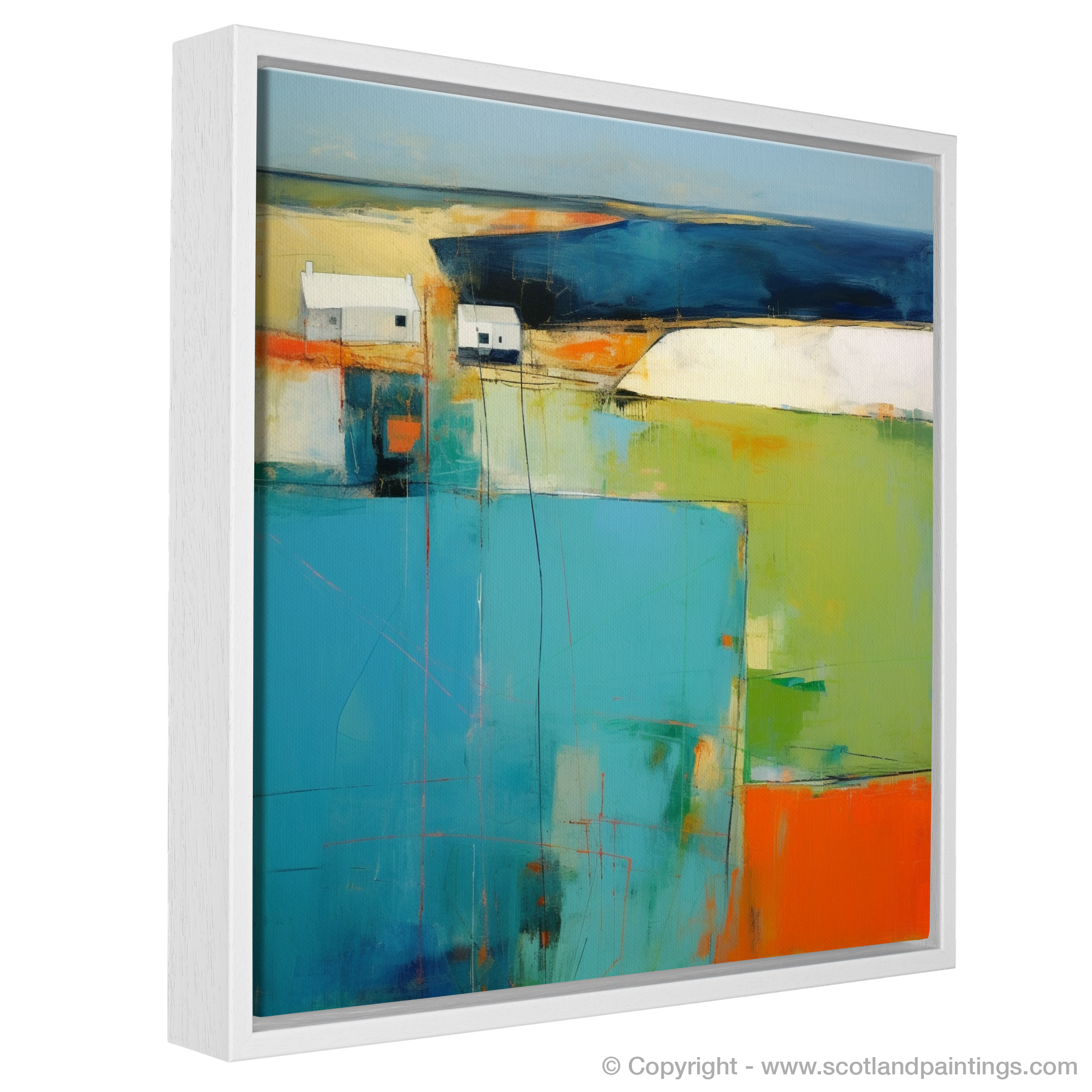 Touches of warm oranges and cool whites lend a sun-kissed contrast, reminiscent of the delicate interplay between light and shadow that graces the Scottish isles. Delicately layered textures evoke the rugged beauty of Lismore's natural terrain, while the strategic use of lines infuses the image with a sense of structure and depth, mirroring the contours of the land.