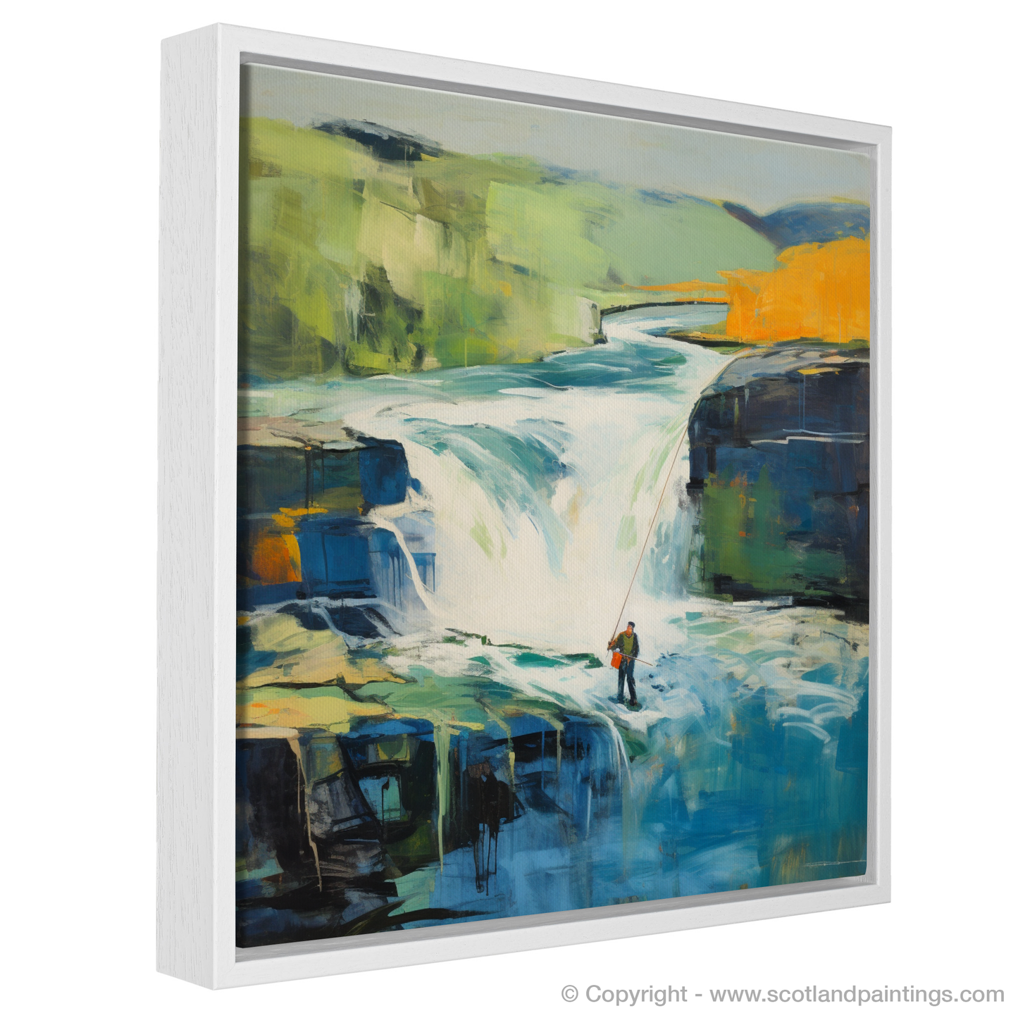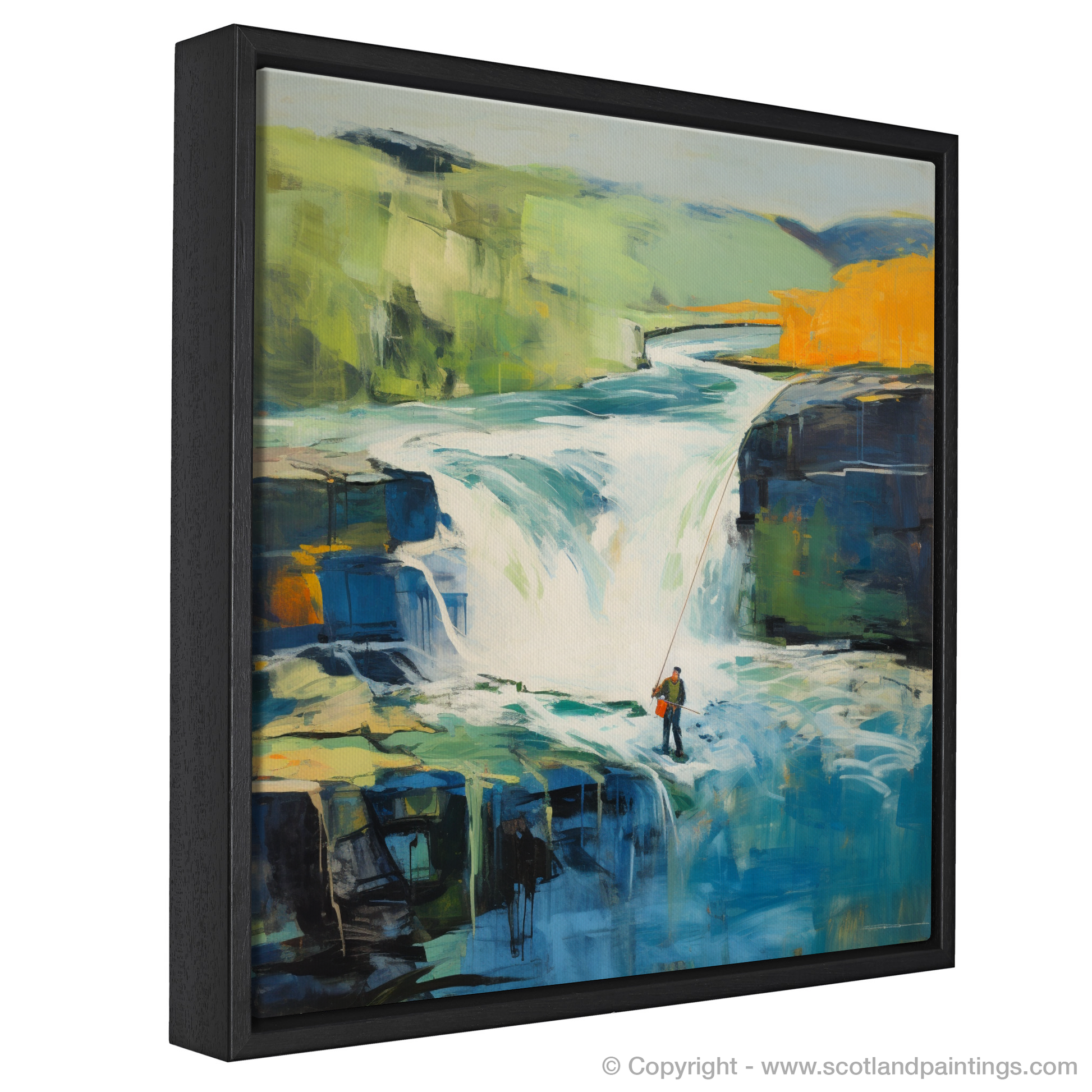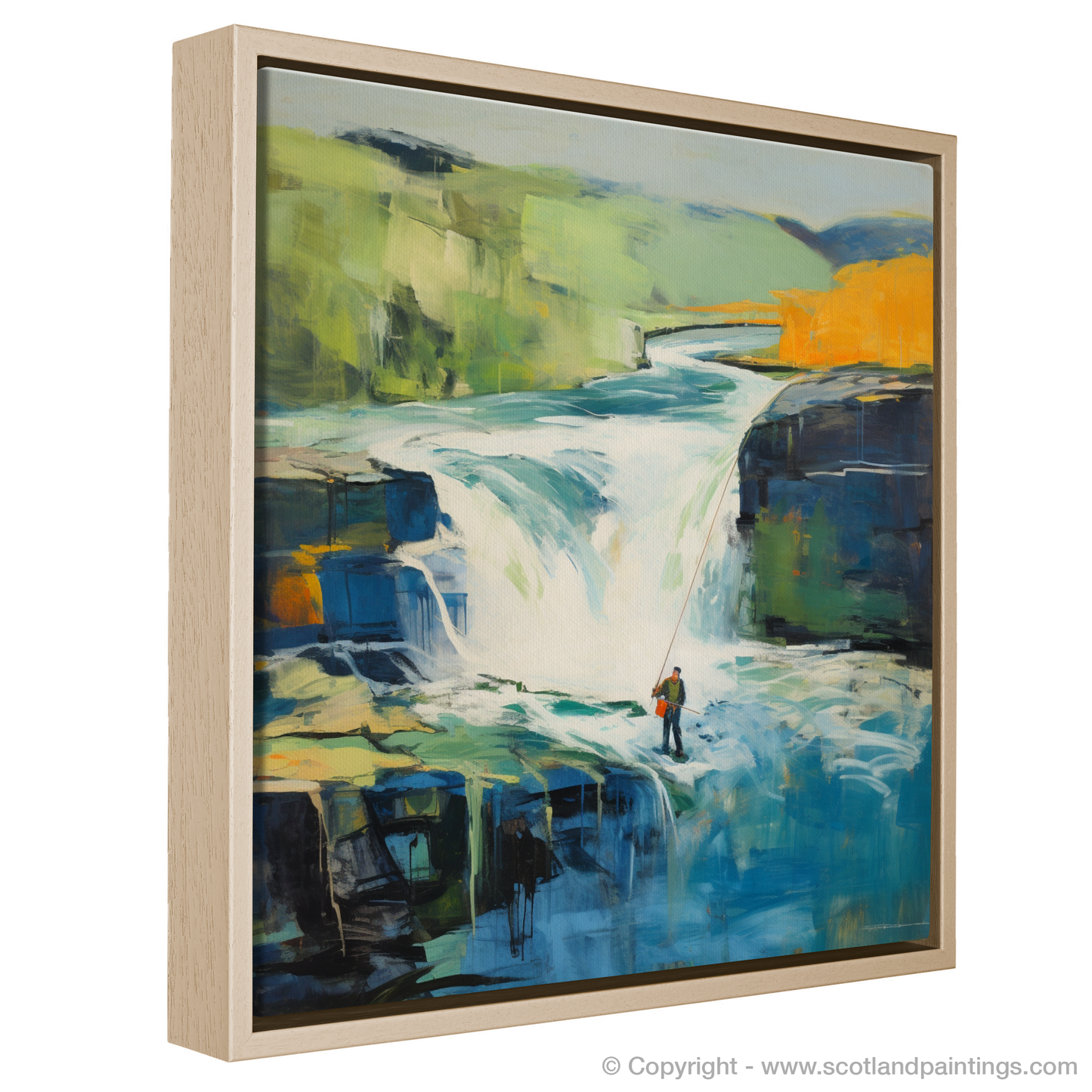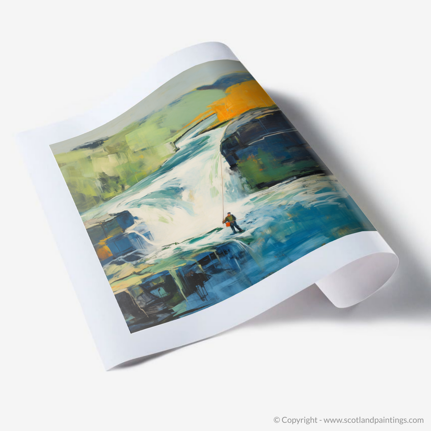 Immerse yourself in the rugged beauty of Scotland with this captivating abstract impressionist piece from our exclusive 'Scotland Fly Fishing' collection. A solitary figure stands amidst the wild serenity of the River Tummel, rod in hand and immersed in the tranquil pursuit of fly fishing. Bold, sweeping brushstrokes evoke the dynamic rush of cascading waterfalls, creating an interplay of light and shadow that seems to dance across the canvas.