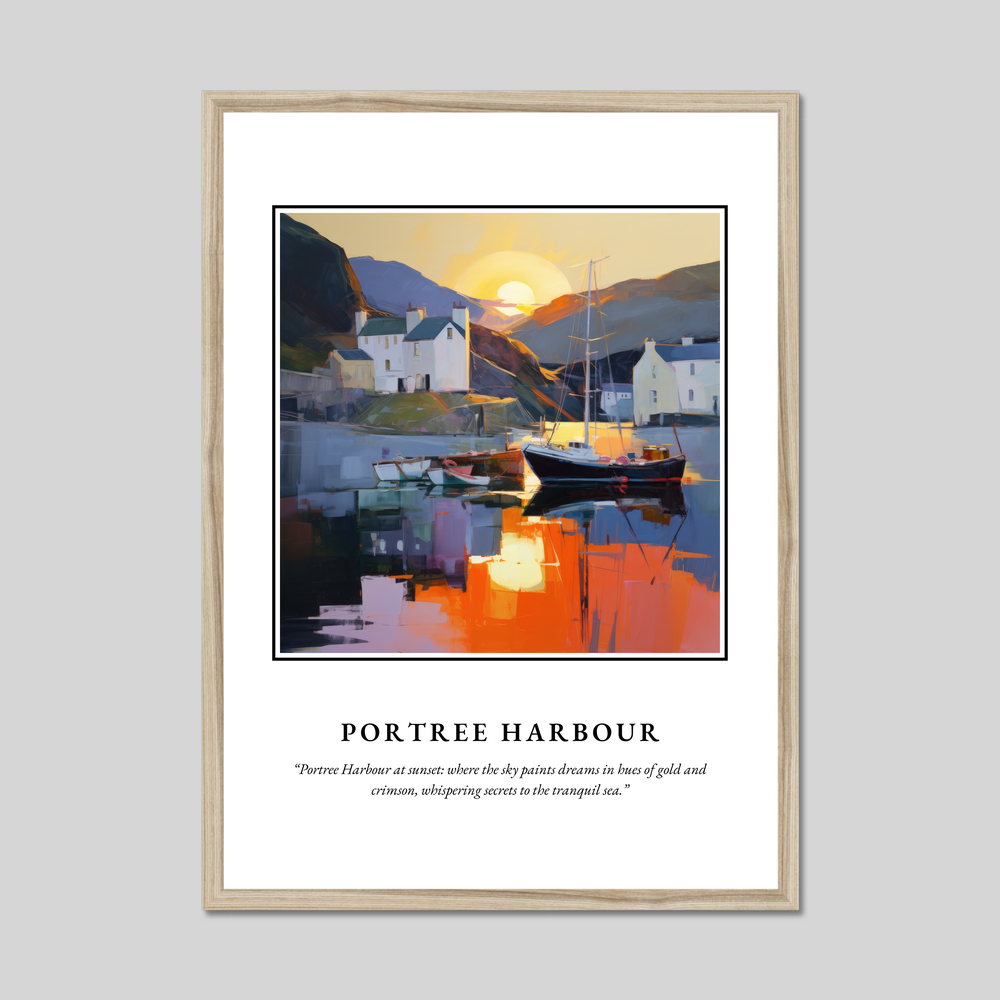 Transform your space with our stunning framed poster print, a grand 50cm x 70cm homage to the mesmerising beauty of Scotland’s landscape. Perfectly capturing the serene elegance of Portree Harbour, this piece invites you to experience the tranquil golden and crimson hues of a sunset on the Isle of Skye. Available in black, white, or a natural wood-effect frame, it effortlessly compliments any decor with its contemporary flair.