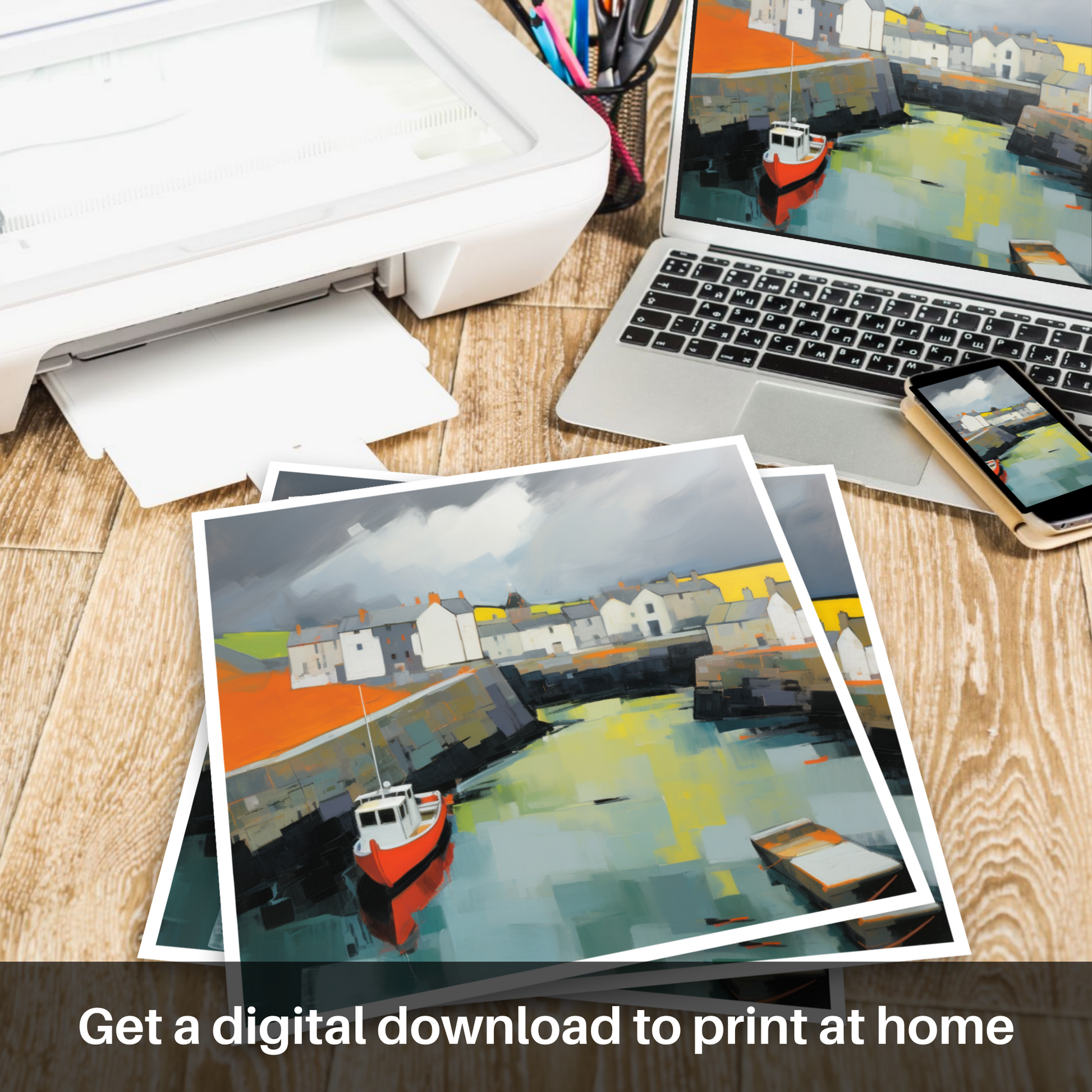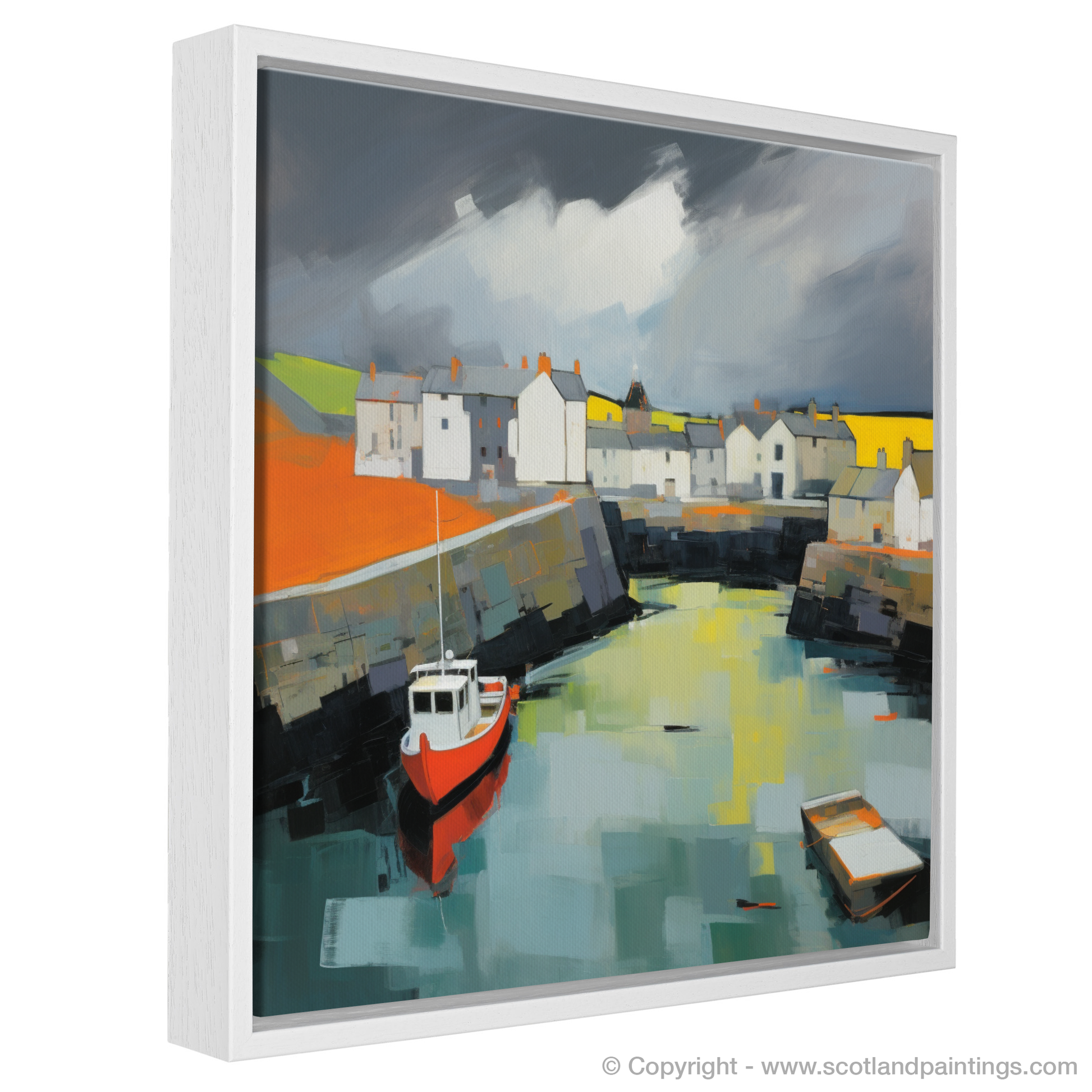 Executed with a distinctly contemporary flair, bold brushstrokes and a dynamic palette come together to create a print that is both lively and contemplative, encapsulating the essence of Scottish Harbours with a refreshing and modern twist. This stirring representation of Portsoy Harbour will not only serve as a magnificent focal point in any space but also as a lasting reminder of the rugged beauty found along Scotland's coast.