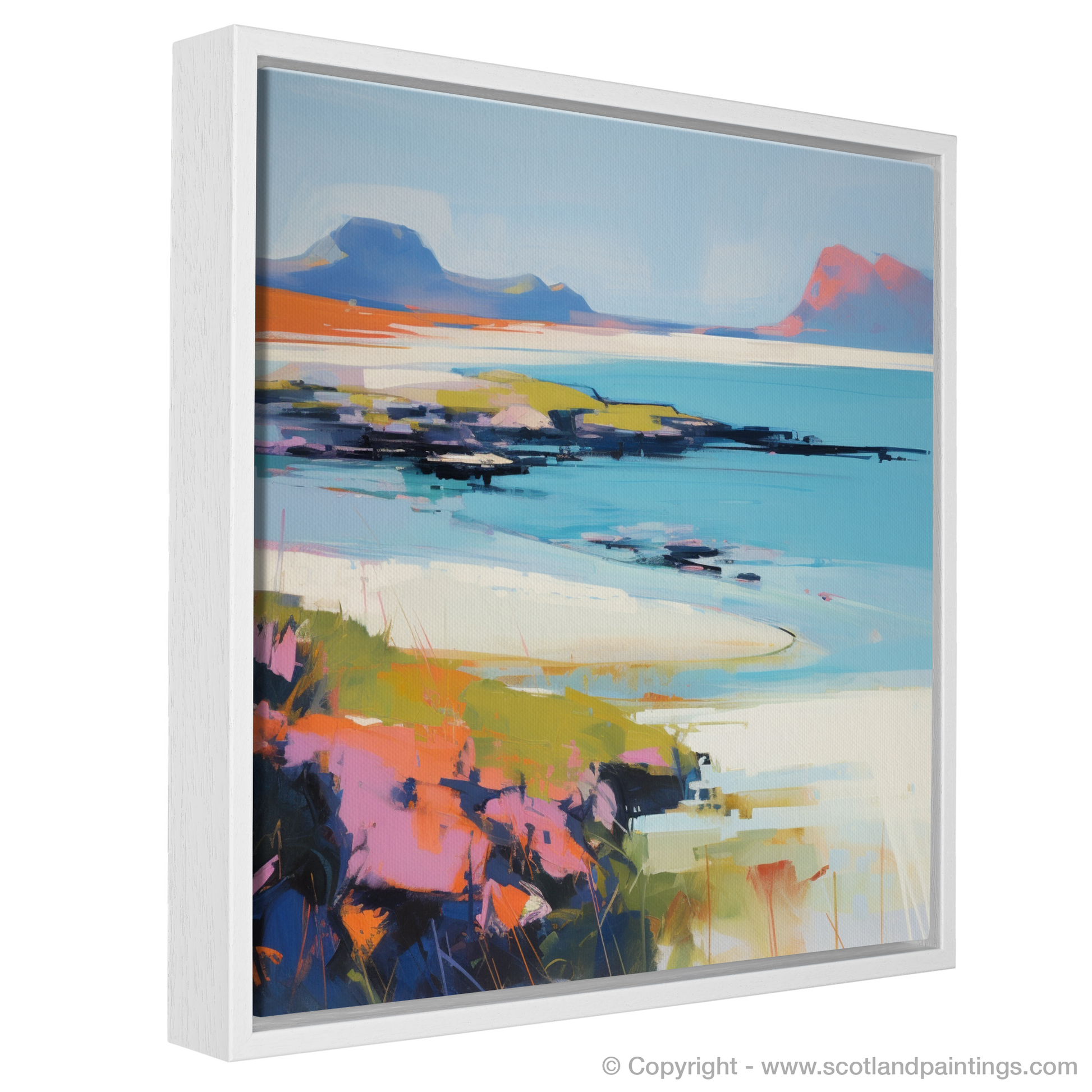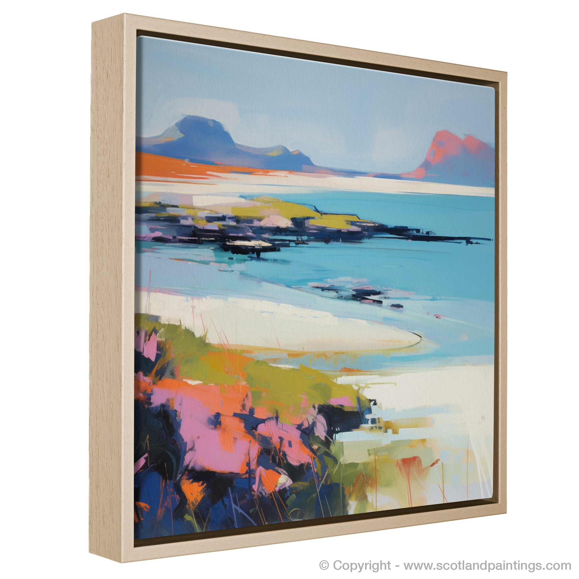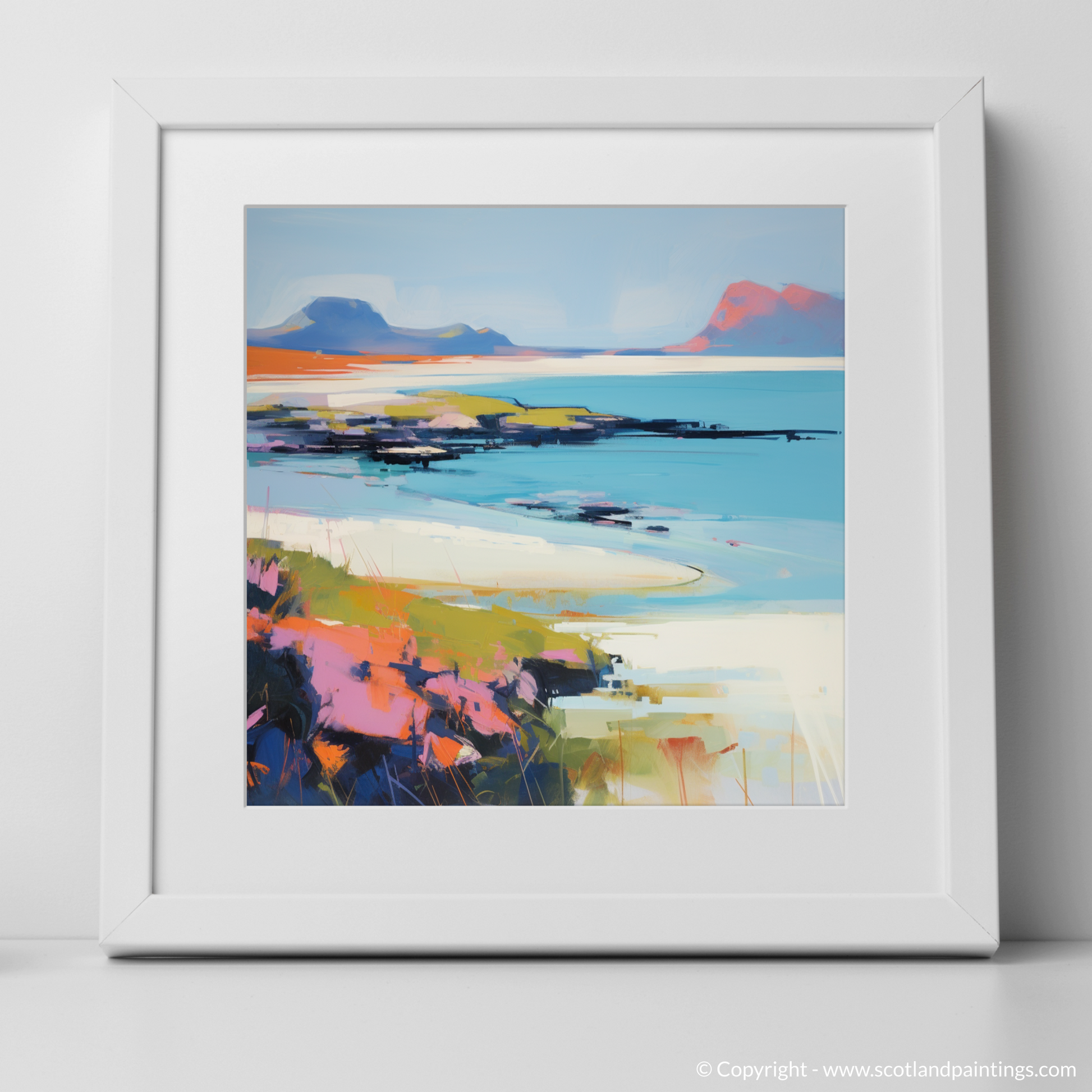 As summer unfurls its vibrant palette, the essence of the Isle of Canna comes to life in this evocative contemporary print. Capturing the serene beauty of the Inner Hebrides, the image beckons with an array of colours that blend harmoniously, depicting a landscape at the height of summer’s embrace.
