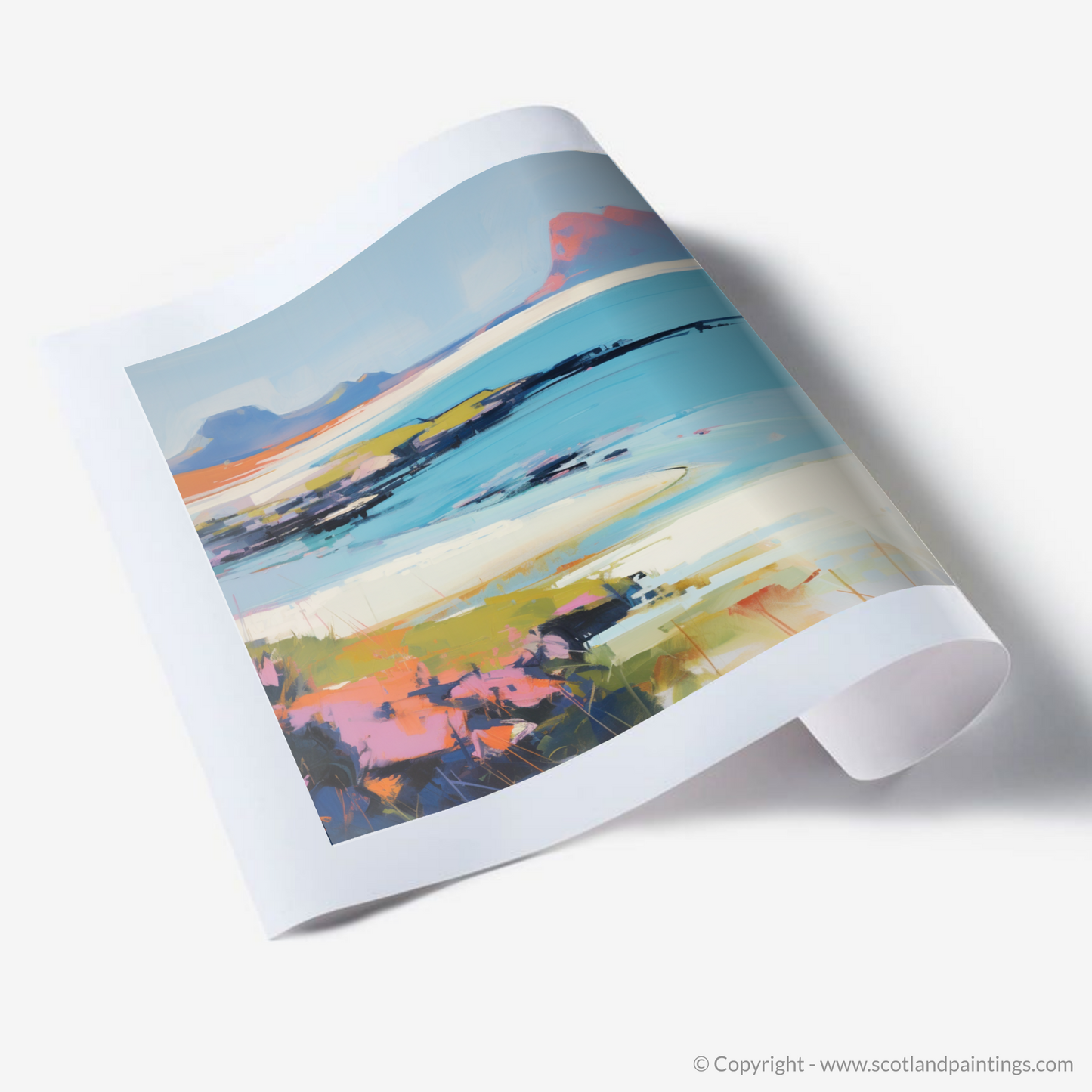 This piece is a celebration of the Scottish summertime, encapsulating both the tranquillity of Canna's seascapes and the exuberant life of its land. A tribute to contemporary style, the abstract yet discernible forms within this print make it a captivating addition to any collection, sure to ignite the imagination and transport one to the idyllic isles with every view.
