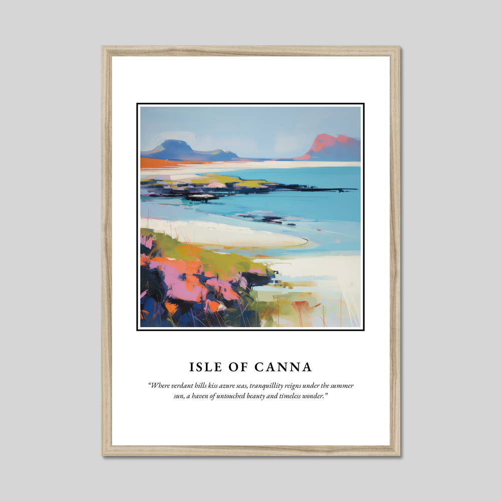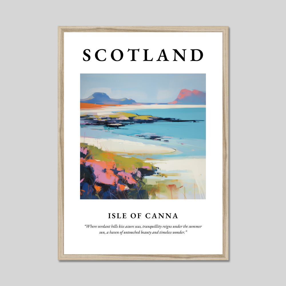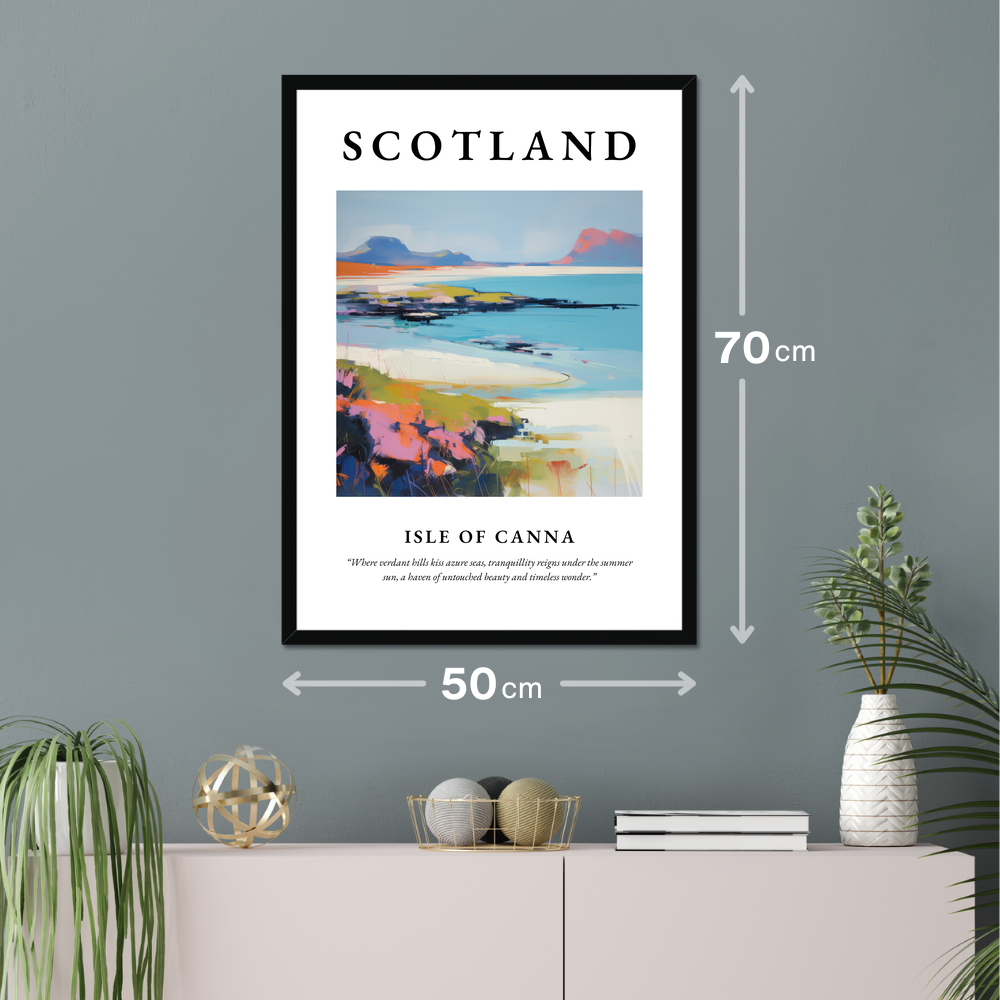 Step into the serene beauty of Scotland with our striking framed poster print, a perfect tribute to the captivating Isle of Canna. Measuring an impressive 50cm x 70cm, this large artwork will effortlessly transform any room, making it a focal point of admiration without breaking the bank. Choose from a sleek black, pristine white, or warm natural wood-effect frame to complement your personal style and decor.