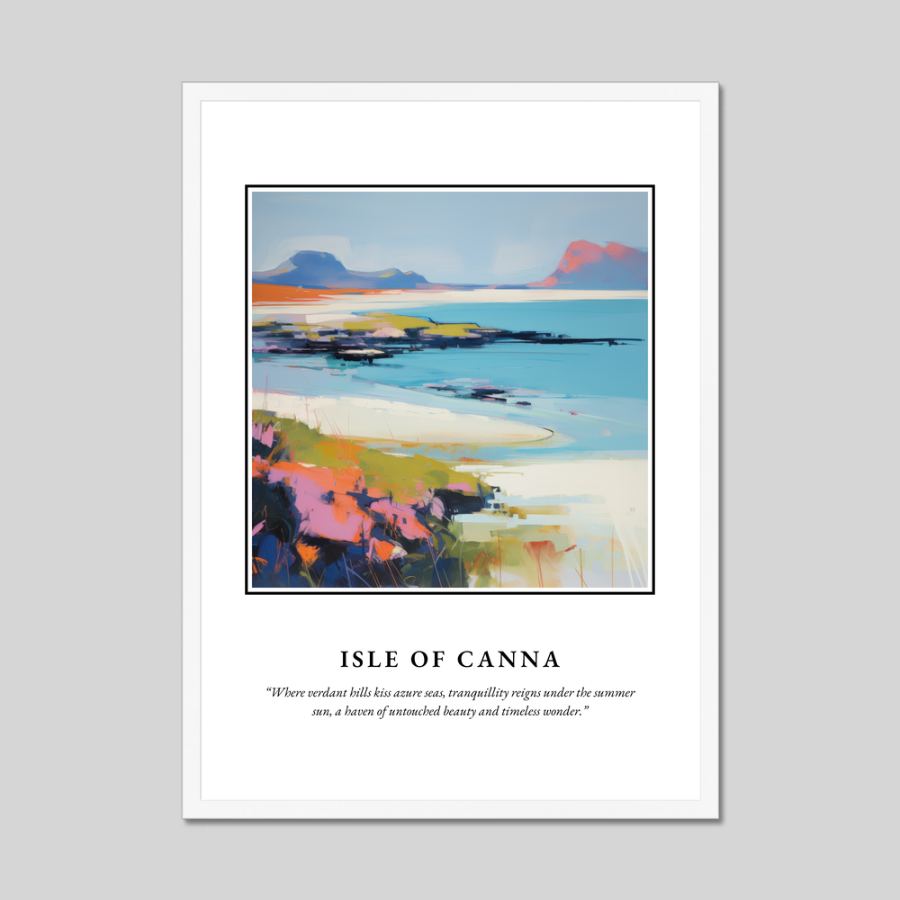 This stunning print is more than just a piece of decor; it's a celebration of the Isle of Canna's untouched splendour. Perfect for art lovers, Scotland enthusiasts, or anyone captivated by contemporary style, it brings the tranquil allure of Canna right into your home.