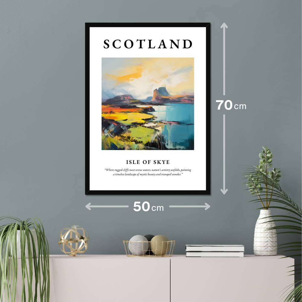 Immerse yourself in the enchanting allure of Scotland with our captivating framed poster print from the “Scottish Islands” collection. Measuring an impressive 50cm x 70cm, this large-scale masterpiece is designed to cover a substantial wall area, offering a cost-effective way to transform your space with the mystical beauty of the Isle of Skye.