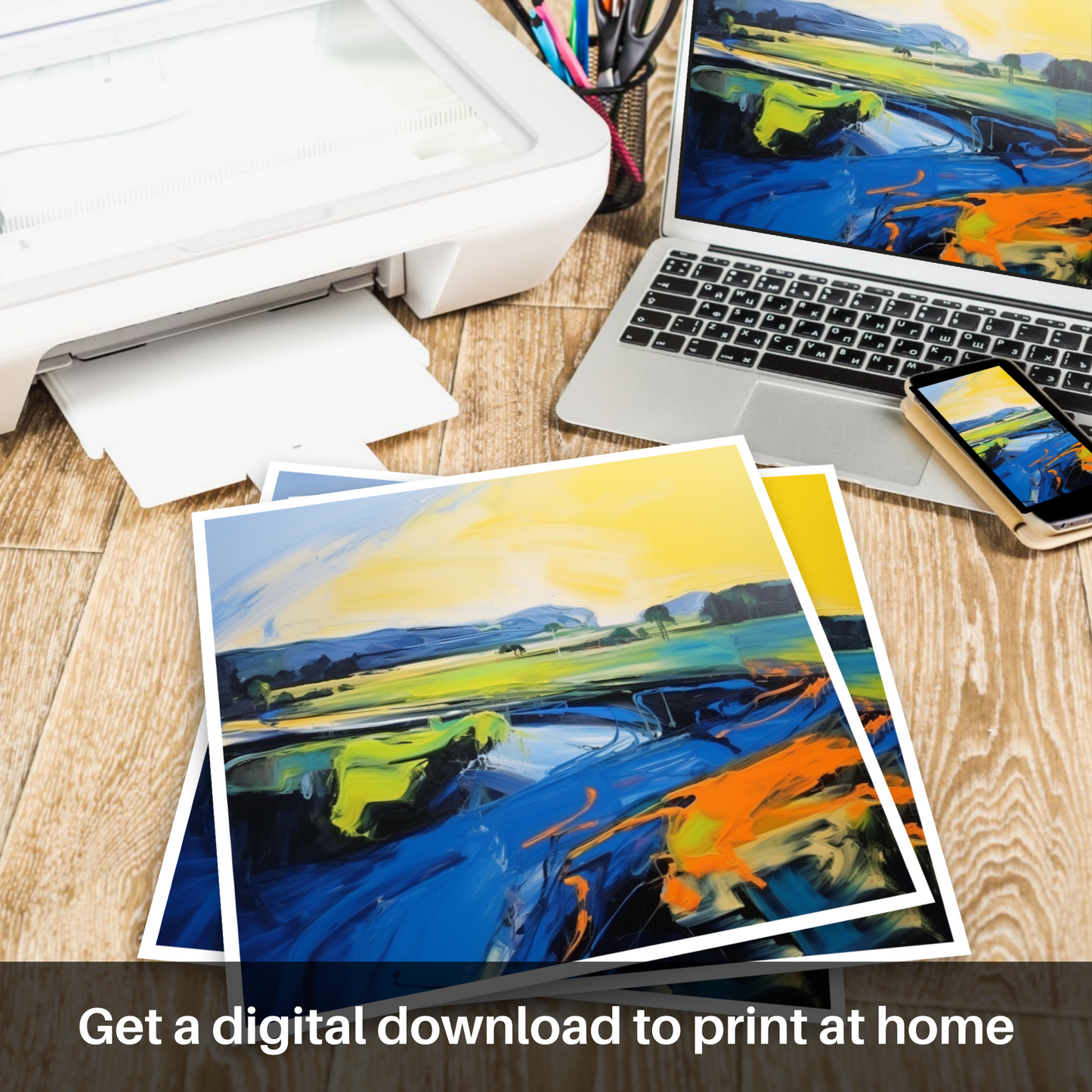 Immerse yourself in the swirling, vibrant currents of this abstract expressionist interpretation of River Forth, a jewel set amidst the lush landscape of Stirlingshire. This exquisite print captures the essence of the Scottish river as a vivid canvas of colour and energy.