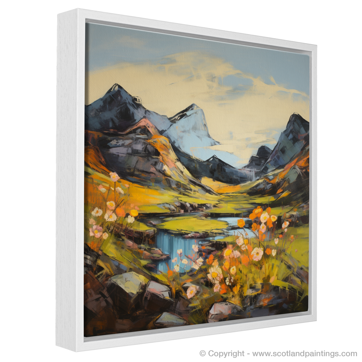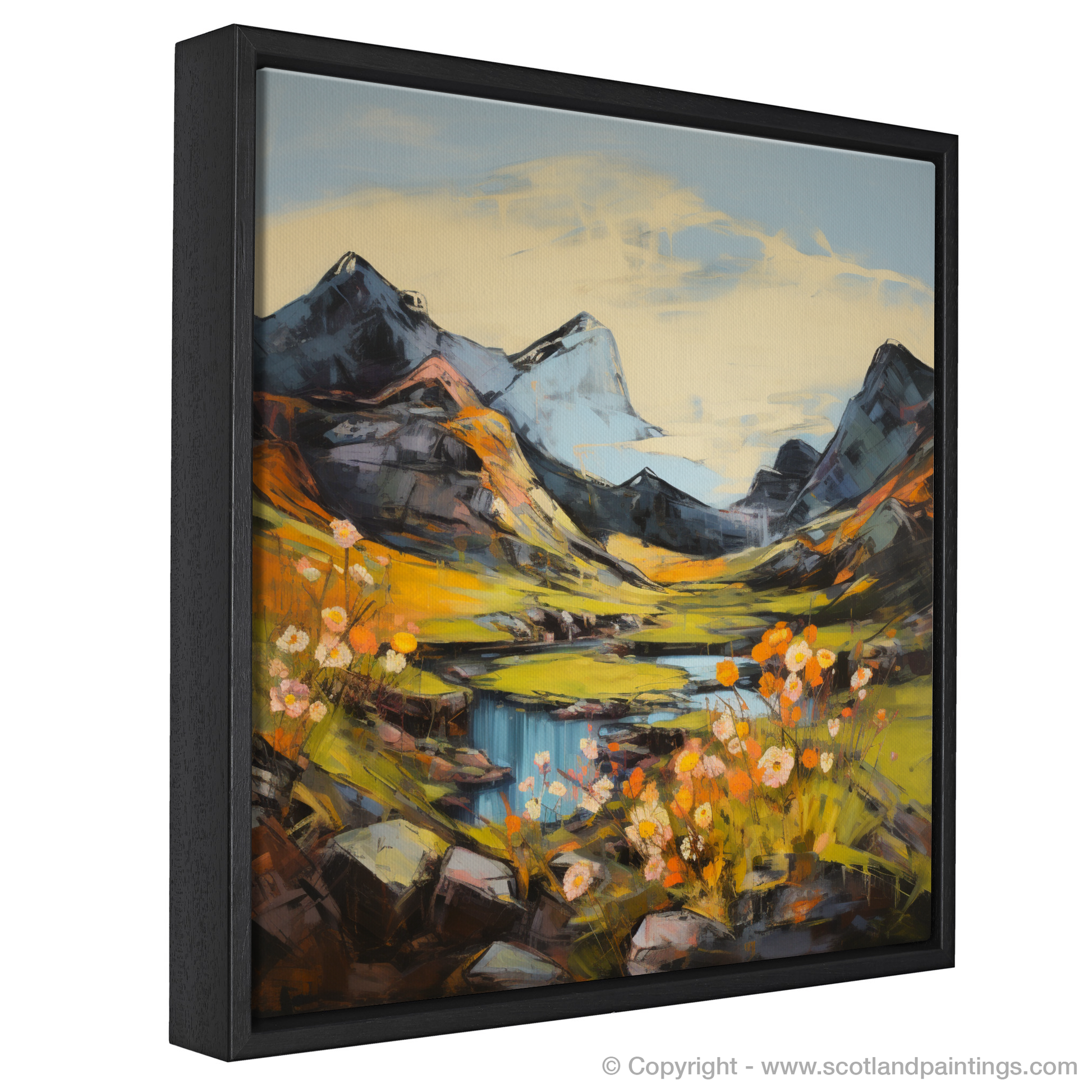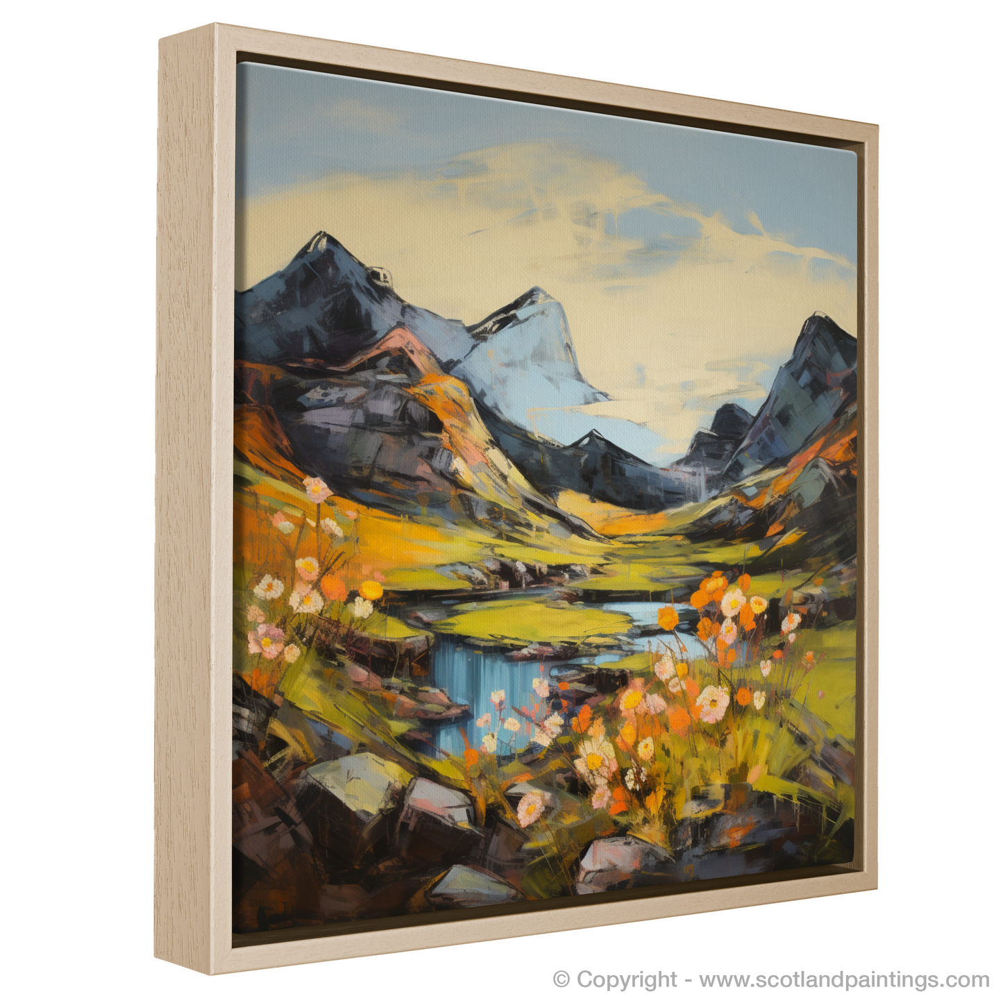 Around the lochan, expressive dabs of verdant green and golden yellow suggest the wild, open moorlands, rich with the stirring atmosphere of this natural paradise. As your eye travels across this vibrant scene, feel the sweeping winds and sense the quietude that pervades the valleys and peaks.