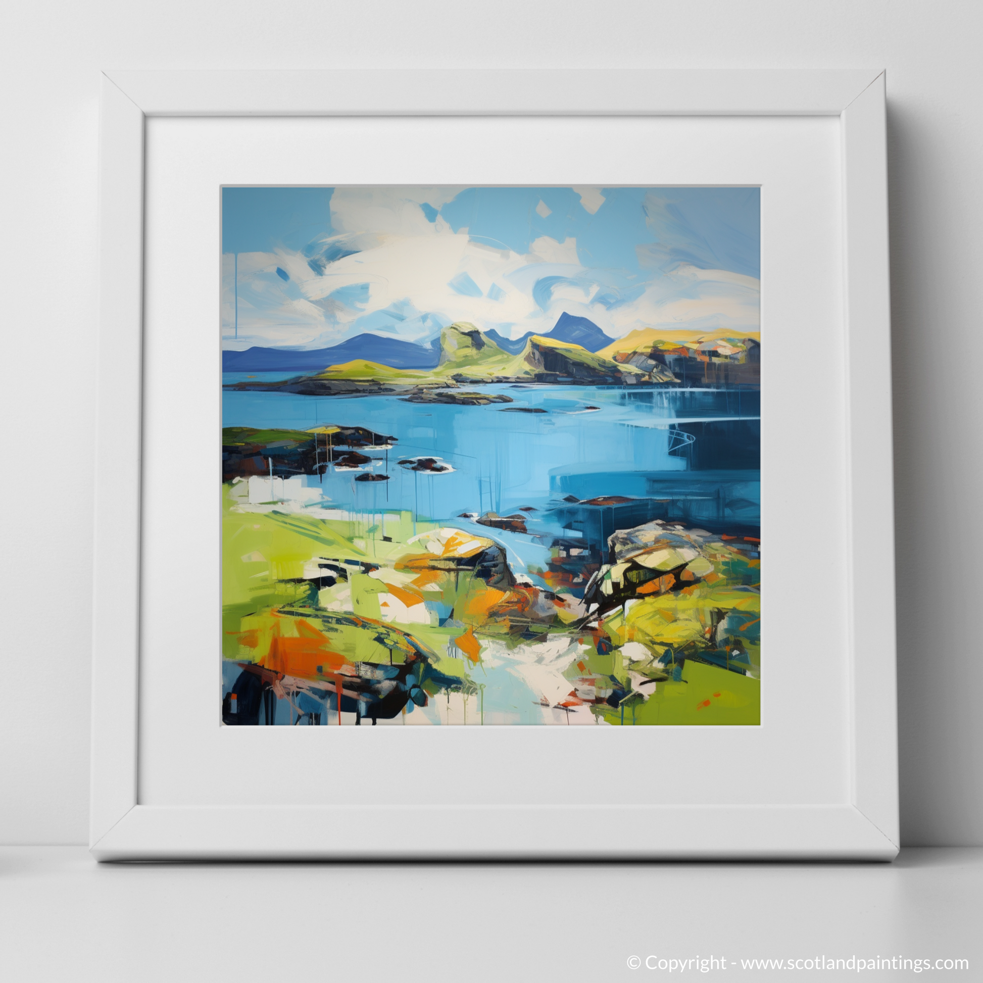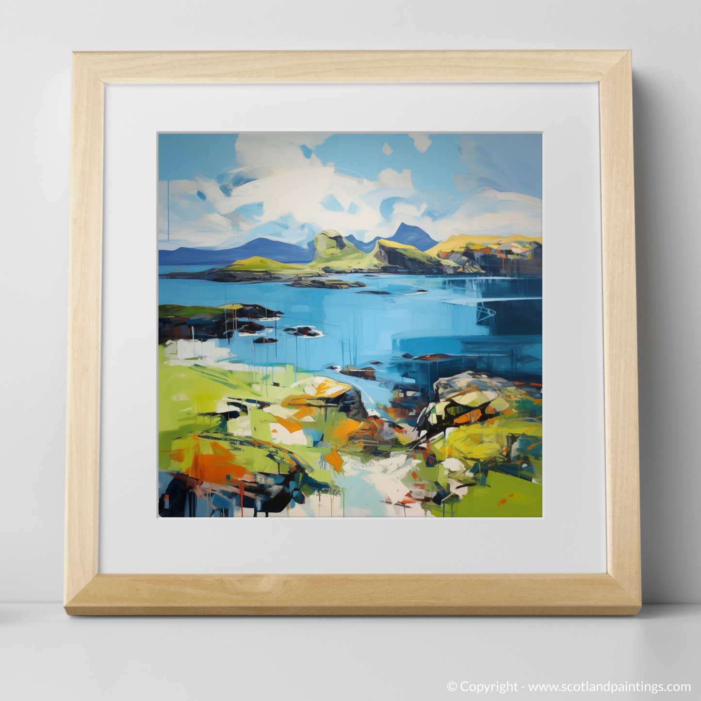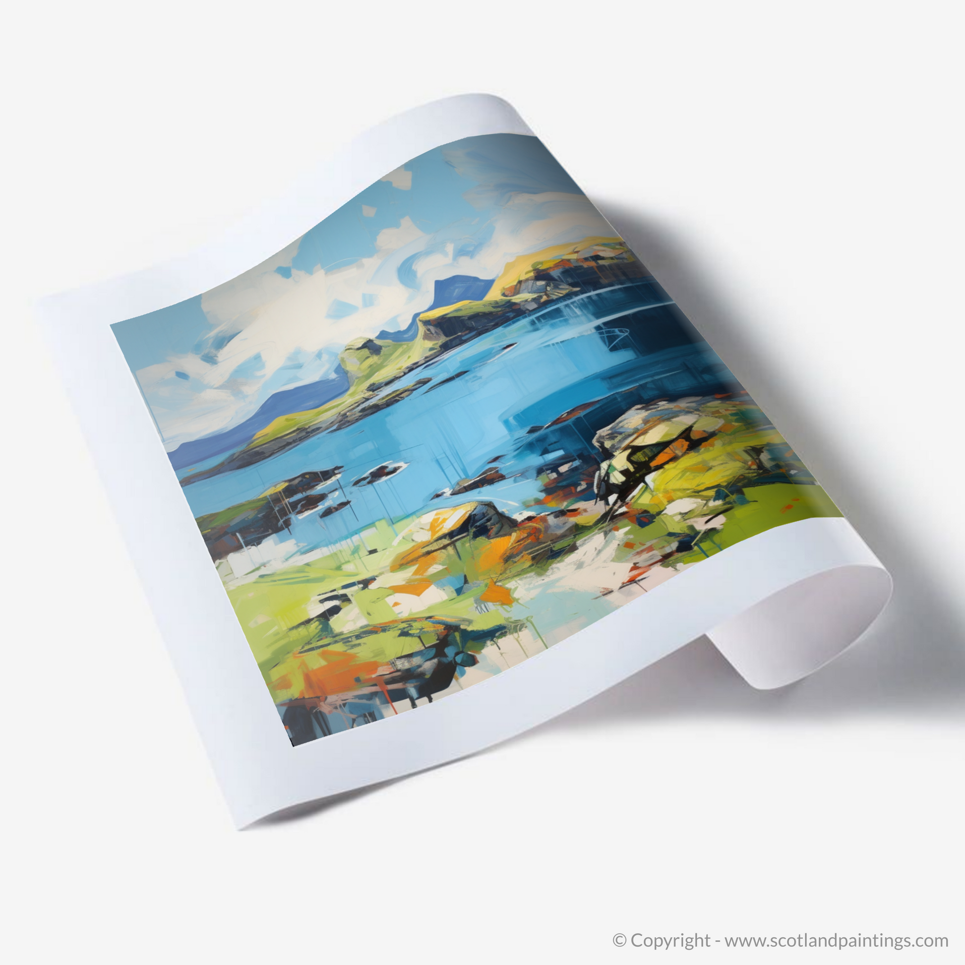 Capturing the rugged charm and vivid palette of the Isle of Ulva, this evocative piece, stylised in the mode of Expressionism, beckons the viewer to experience a fresh interpretation of the Scottish Islands' scenic beauty. The print showcases a dynamic, textured landscape where sweeping brush strokes and bold colours merge to form a tapestry of raw, natural splendour.
