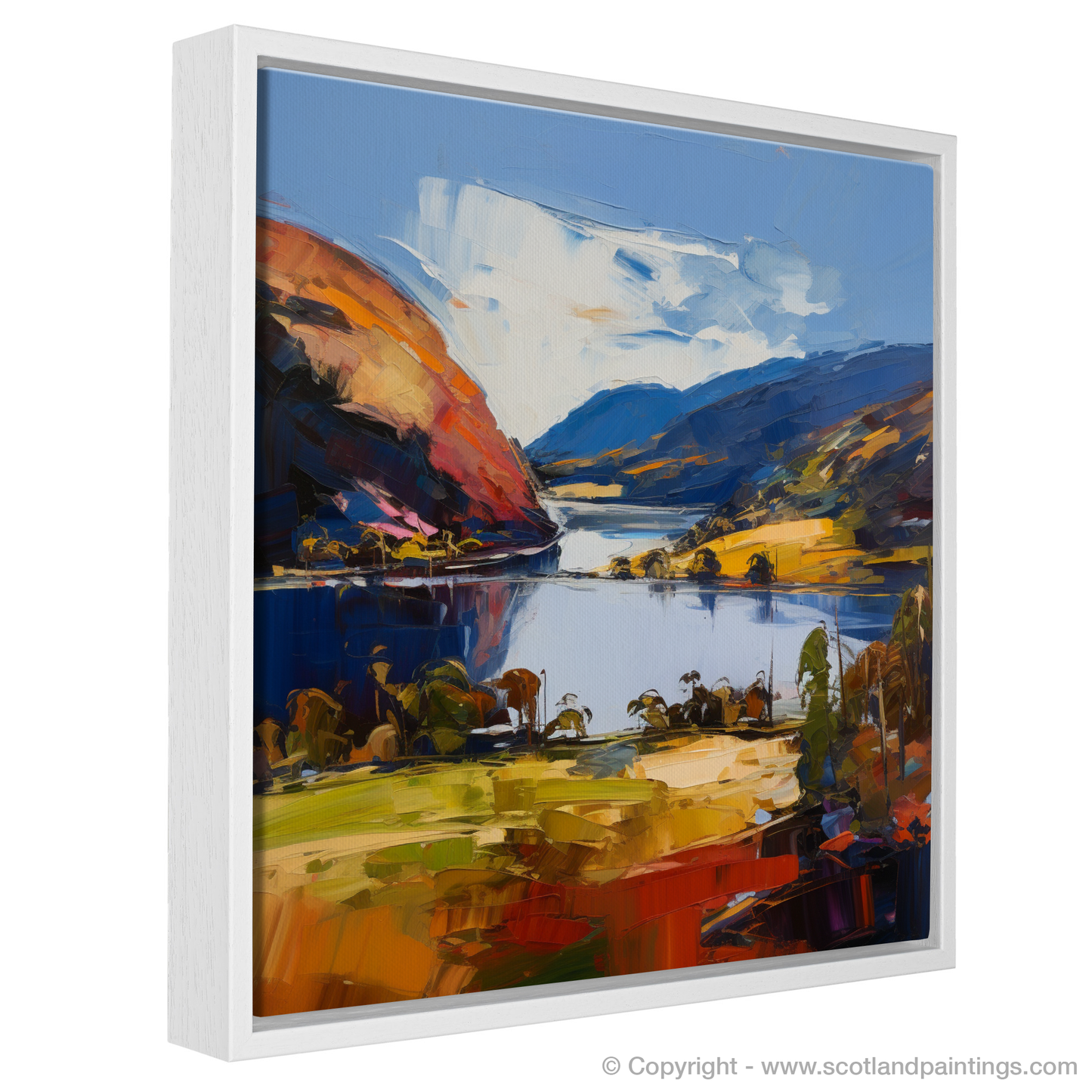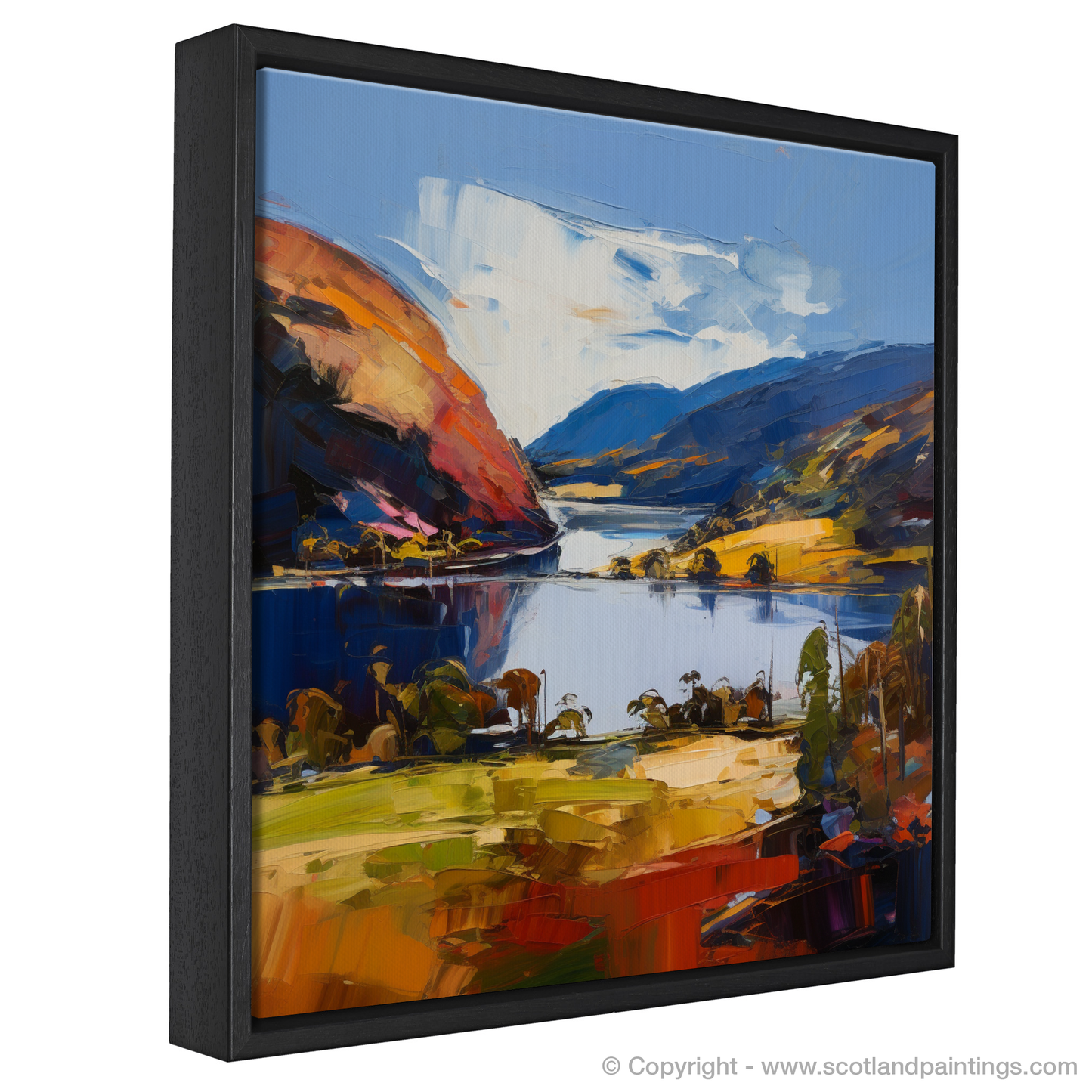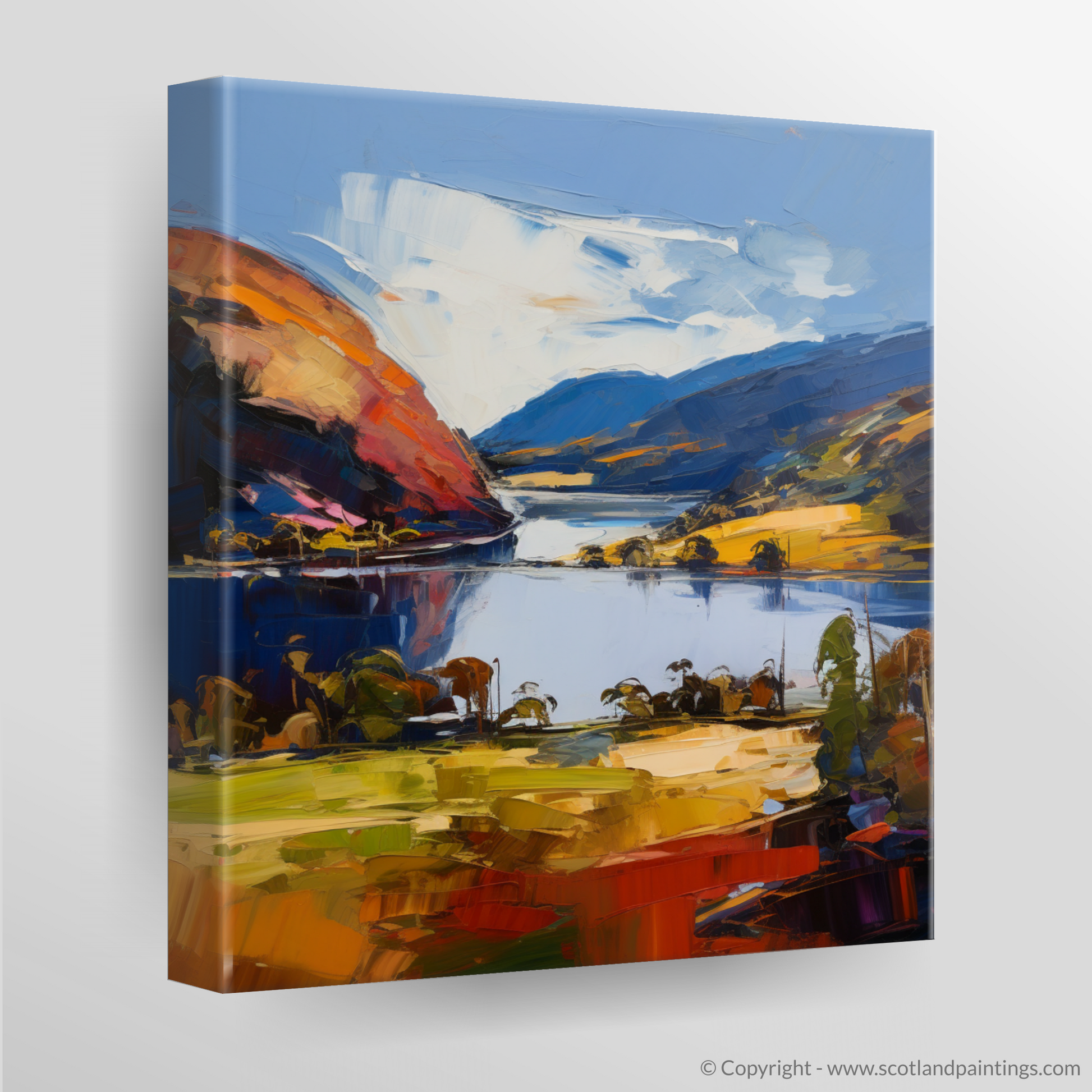 Capture the raw beauty and vibrant colours of Scotland with this expressive print inspired by the serene Loch Earn. Bold strokes, rich in colour and emotion, bring the rolling landscape to life, offering a dynamic perspective of this tranquil Scottish retreat. The artwork's emotional depth is palpable, as sweeping blues and cool hues mirror the loch’s surface, while fiery reds and warm yellows climb the encircling hills.